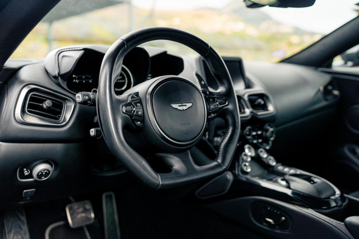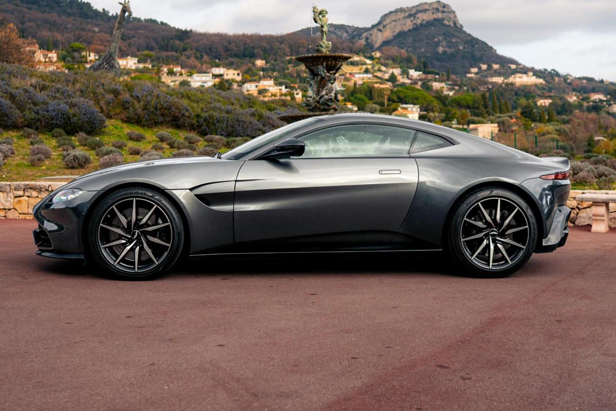 La Aston Martin V8 Vantage 4.0 510 ch (2021) est un coupé sportif emblématique combinant élégance britannique et performance pure. Cet exemplaire se présente avec un extérieur gris associé à un intérieur noir, affichant 23 000 km au compteur. Son moteur V8 de 510 chevaux offre une sonorité mécanique caractéristique de la marque.