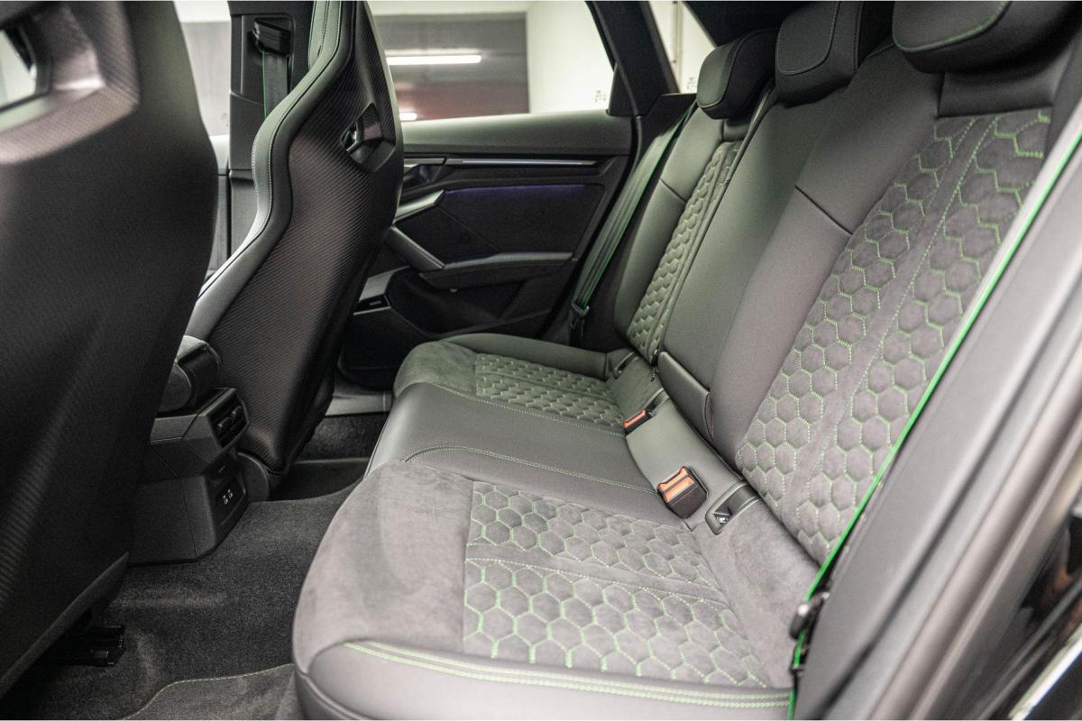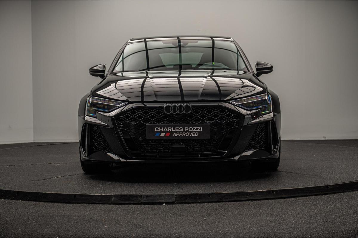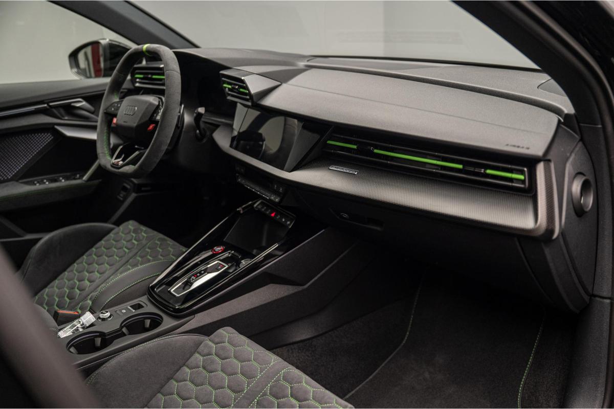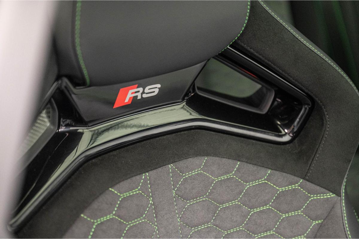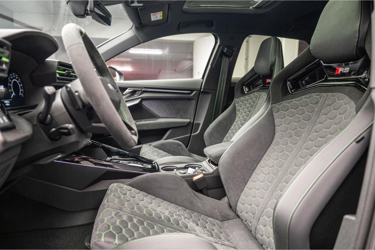 2.5 TFSI 400 S tronic 7 QUATTRO, essence, noir, 15/04/2025, Audi phone box, Augmentation de la vitesse maximale à 280 km/h Limitation éléctronique, Becquet AR en Carbone, Boitiers de rétrovseurs extérieurs dans la couleur de la carosserie, Eléments de l’habitacle intérieur en microfibre Dinamica composé de/ Accoudoir central AV en microfibre Dinamica, Accoudoir de porte en microfibre Dinamica, Equipement extérieur RS en Noir Brillant, Fixations pour sièges enfants ISOFIX AV, Freins en acier RS avec étriers de frein en rouge avec inscription RS à l’AV, Insert décoratif et surfaces accentuées en Carbone Atlas Mat (au tableau de bord), Jantes style à 10 branches en Y gris platine, tournées brillantes 9, 0Jx 19pneus 265/30 AV, 0, 0Jx 19pneus 245/35 AR, Pack assistance route Système de protectionproactive des occupants à l’AV, sur les cotés et à l’AR, Avertisseurs de changement de voie avec avertissement d’ouverture de porte et assistant de circulation transversale, Pack climatisation plus – Sièges AV chauffants- Climatisation confort automatique 3 zones, Pack Navigation Affichage tête haute, MMI Navigation plus avec MMI touch, Audi virtual cokpit plus, Système audio Sonos premium avec son 3D, Pare-brise en vitrage athermique, Projecteurs Matrix LED, blocs de feux AR à LED et lave-projecteurs, Sellerie en microfibre Dinamica/cuir avec surpiqûres en nid d’abeille et monogramme RS, Sièges baquets, Suspension avec Amortisseurs pilotés, Système d’échappement sport RS, Teintes métalisées, Toit ouvrant panoramique