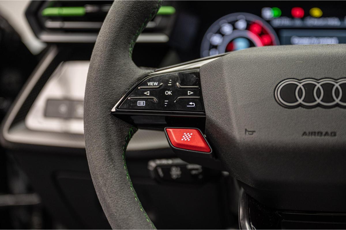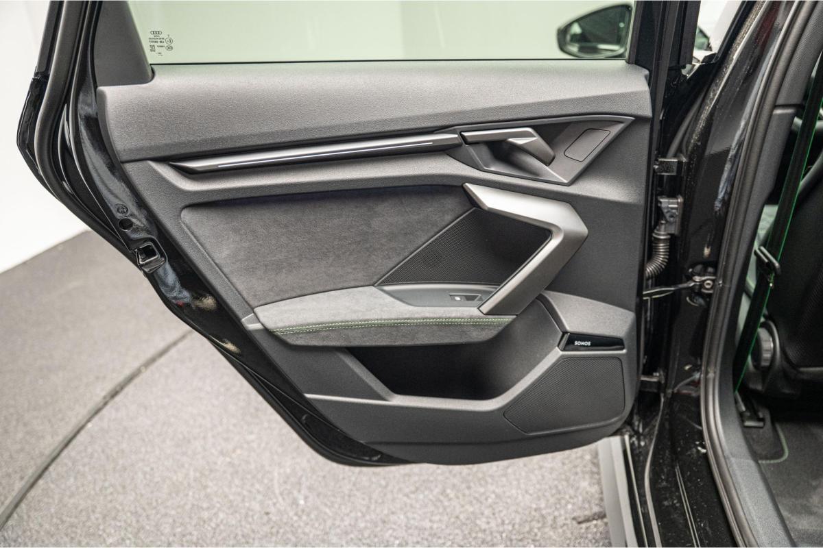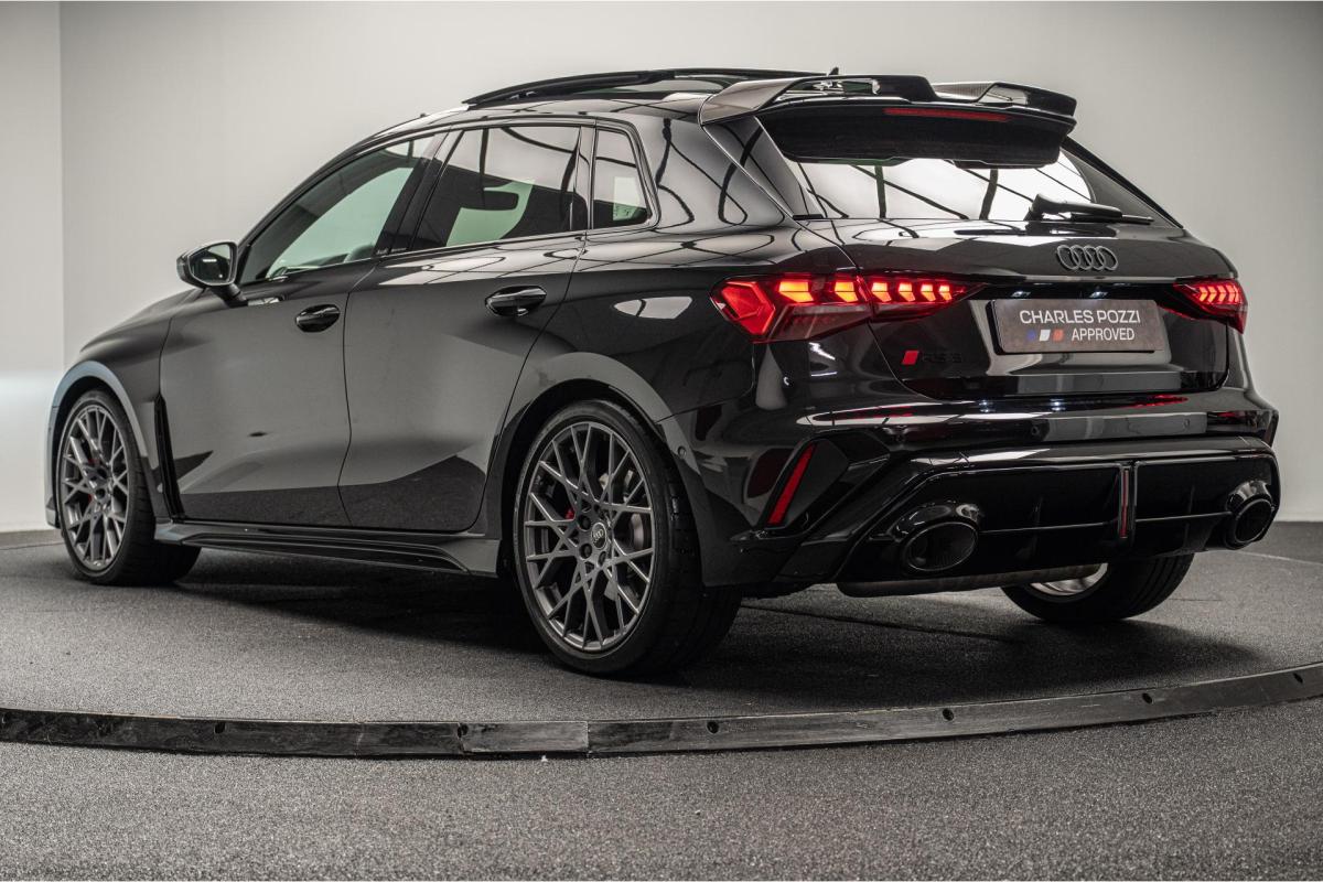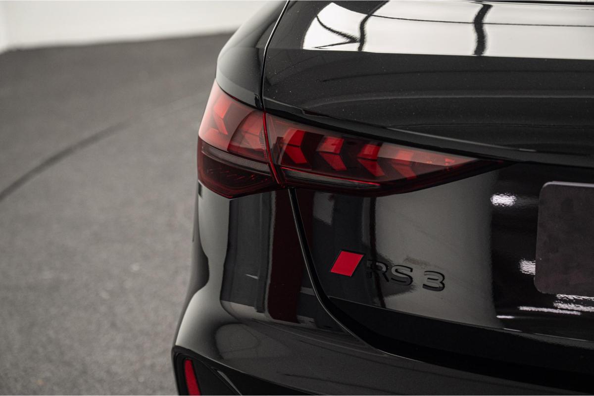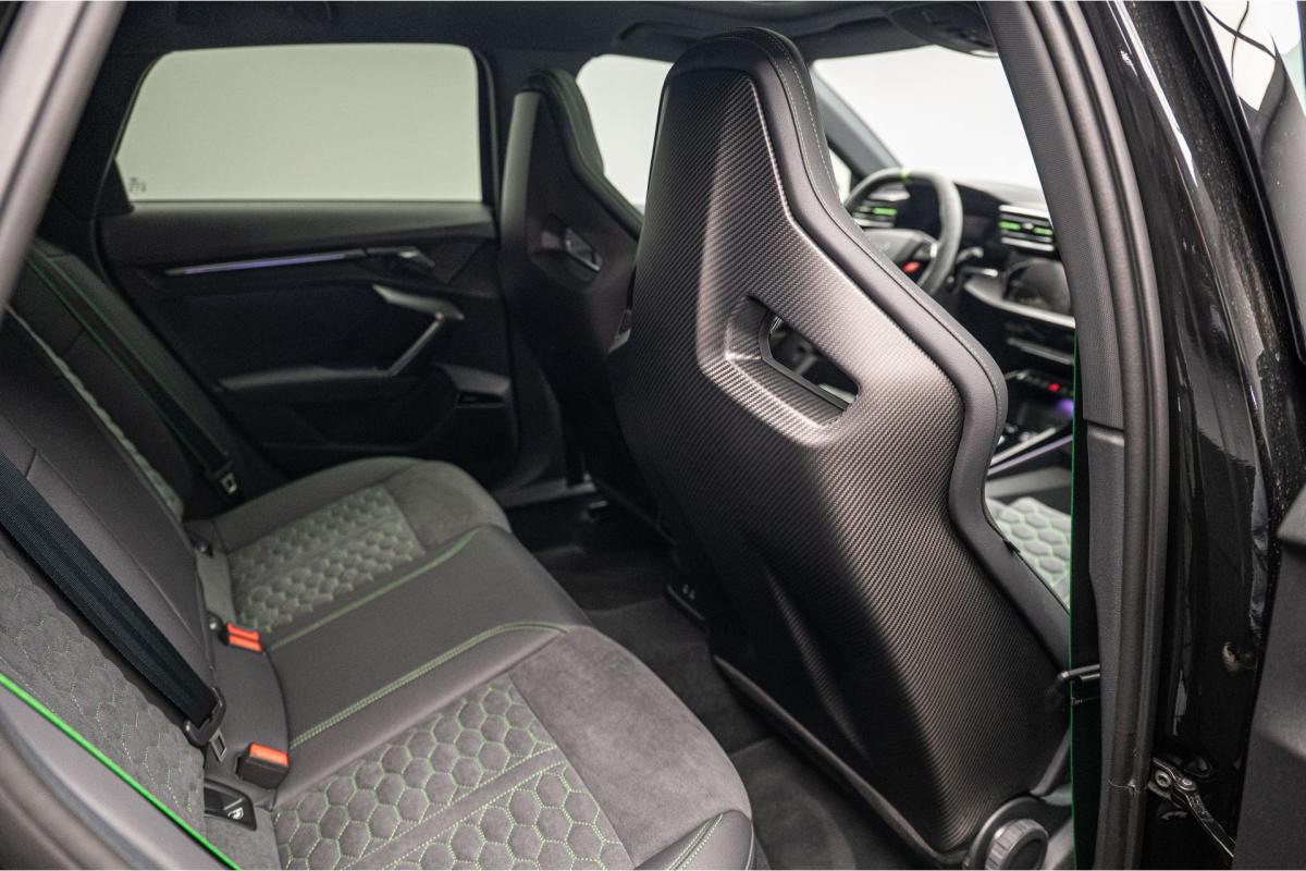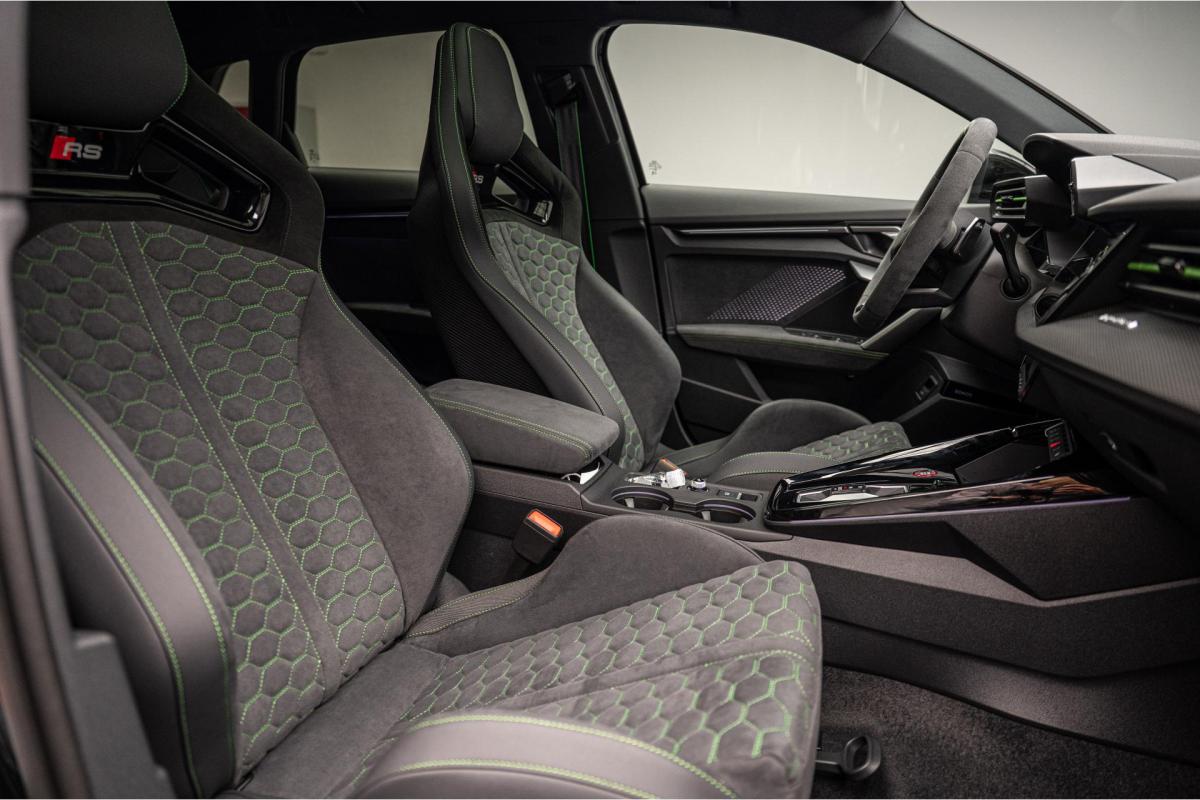 2.5 TFSI 400 S tronic 7 QUATTRO, essence, noir, 15/04/2025, Audi phone box, Augmentation de la vitesse maximale à 280 km/h Limitation éléctronique, Becquet AR en Carbone, Boitiers de rétrovseurs extérieurs dans la couleur de la carosserie, Eléments de l’habitacle intérieur en microfibre Dinamica composé de/ Accoudoir central AV en microfibre Dinamica, Accoudoir de porte en microfibre Dinamica, Equipement extérieur RS en Noir Brillant, Fixations pour sièges enfants ISOFIX AV, Freins en acier RS avec étriers de frein en rouge avec inscription RS à l’AV, Insert décoratif et surfaces accentuées en Carbone Atlas Mat (au tableau de bord), Jantes style à 10 branches en Y gris platine, tournées brillantes 9, 0Jx 19pneus 265/30 AV, 0, 0Jx 19pneus 245/35 AR, Pack assistance route Système de protectionproactive des occupants à l’AV, sur les cotés et à l’AR, Avertisseurs de changement de voie avec avertissement d’ouverture de porte et assistant de circulation transversale, Pack climatisation plus – Sièges AV chauffants- Climatisation confort automatique 3 zones, Pack Navigation Affichage tête haute, MMI Navigation plus avec MMI touch, Audi virtual cokpit plus, Système audio Sonos premium avec son 3D, Pare-brise en vitrage athermique, Projecteurs Matrix LED, blocs de feux AR à LED et lave-projecteurs, Sellerie en microfibre Dinamica/cuir avec surpiqûres en nid d’abeille et monogramme RS, Sièges baquets, Suspension avec Amortisseurs pilotés, Système d’échappement sport RS, Teintes métalisées, Toit ouvrant panoramique