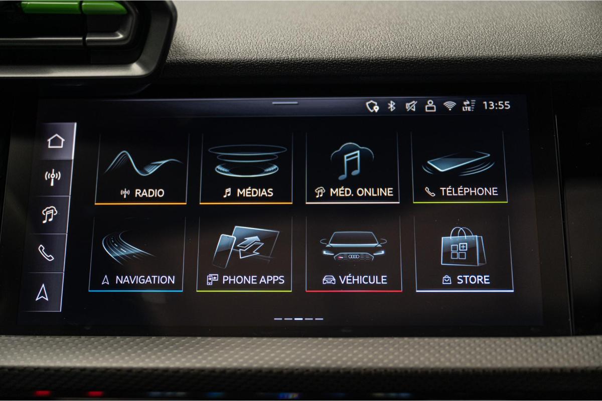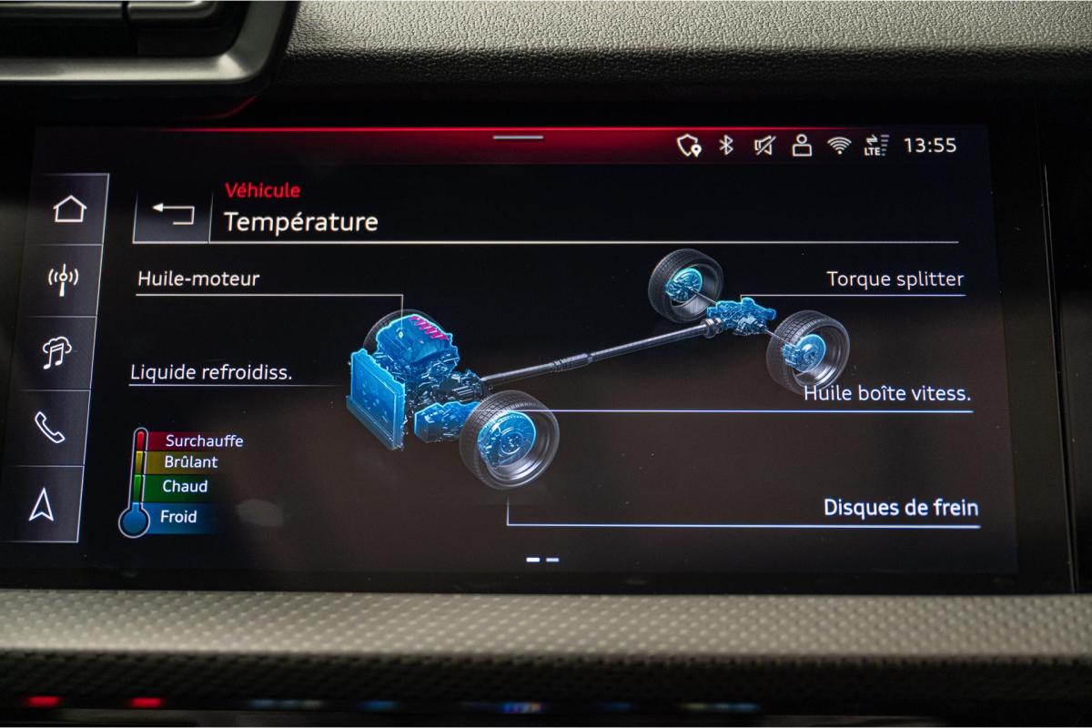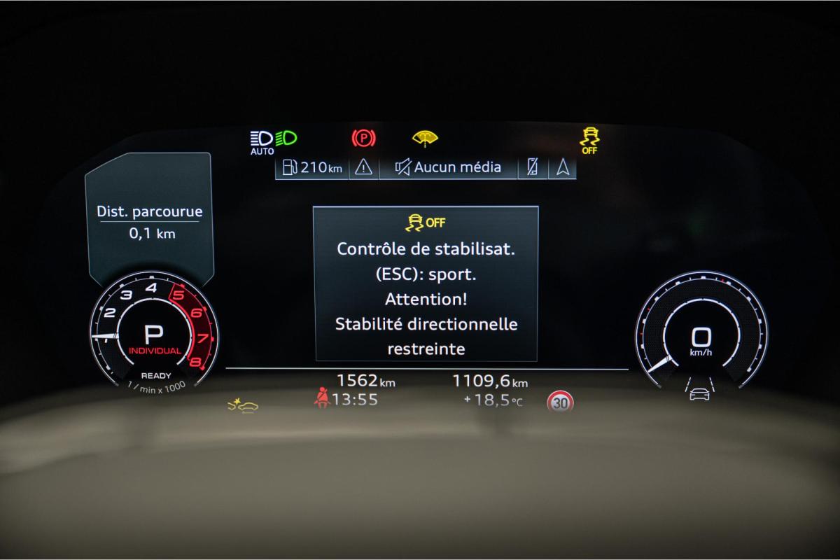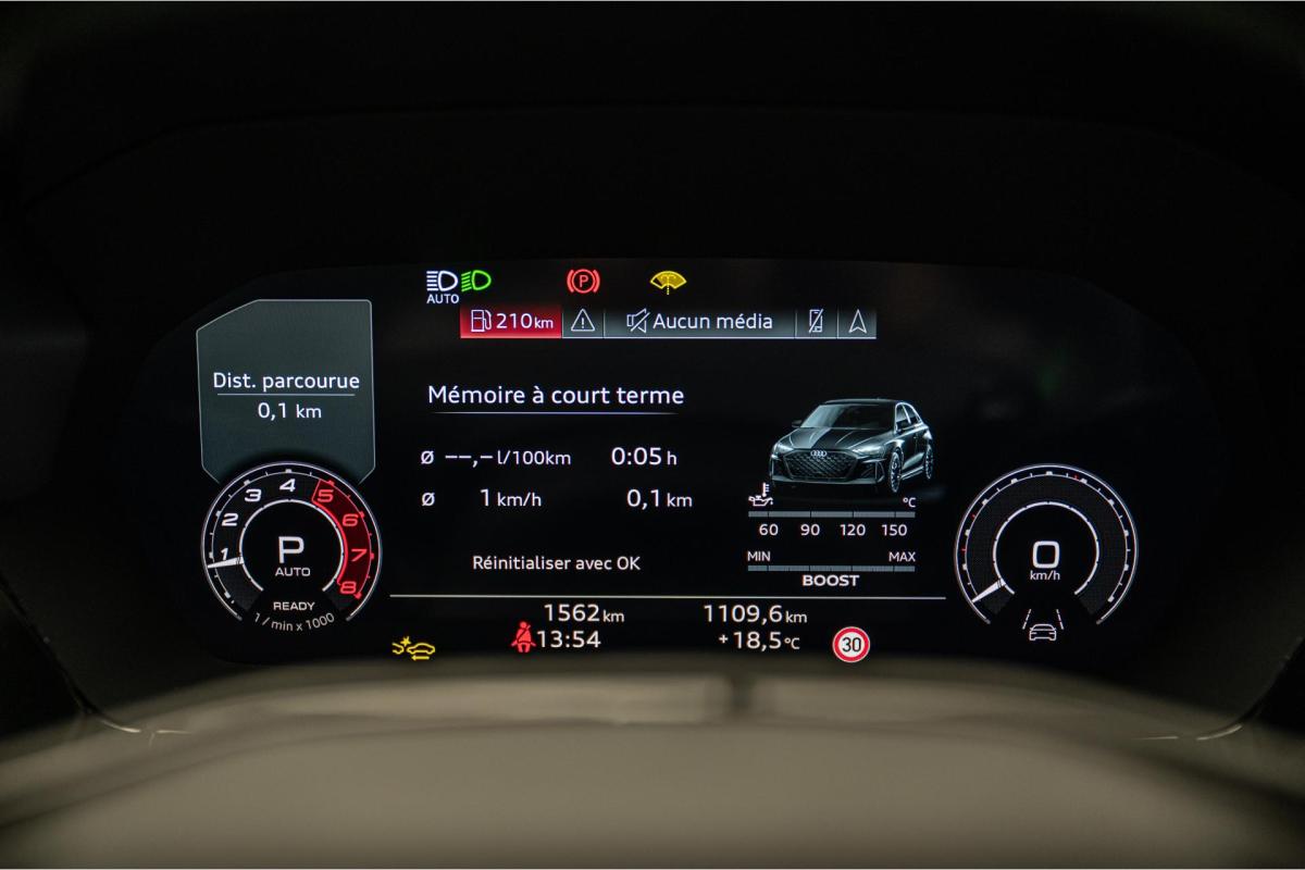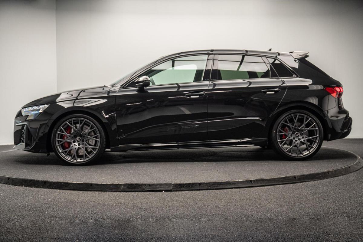 2.5 TFSI 400 S tronic 7 QUATTRO, essence, noir, 15/04/2025, Audi phone box, Augmentation de la vitesse maximale à 280 km/h Limitation éléctronique, Becquet AR en Carbone, Boitiers de rétrovseurs extérieurs dans la couleur de la carosserie, Eléments de l’habitacle intérieur en microfibre Dinamica composé de/ Accoudoir central AV en microfibre Dinamica, Accoudoir de porte en microfibre Dinamica, Equipement extérieur RS en Noir Brillant, Fixations pour sièges enfants ISOFIX AV, Freins en acier RS avec étriers de frein en rouge avec inscription RS à l’AV, Insert décoratif et surfaces accentuées en Carbone Atlas Mat (au tableau de bord), Jantes style à 10 branches en Y gris platine, tournées brillantes 9, 0Jx 19pneus 265/30 AV, 0, 0Jx 19pneus 245/35 AR, Pack assistance route Système de protectionproactive des occupants à l’AV, sur les cotés et à l’AR, Avertisseurs de changement de voie avec avertissement d’ouverture de porte et assistant de circulation transversale, Pack climatisation plus – Sièges AV chauffants- Climatisation confort automatique 3 zones, Pack Navigation Affichage tête haute, MMI Navigation plus avec MMI touch, Audi virtual cokpit plus, Système audio Sonos premium avec son 3D, Pare-brise en vitrage athermique, Projecteurs Matrix LED, blocs de feux AR à LED et lave-projecteurs, Sellerie en microfibre Dinamica/cuir avec surpiqûres en nid d’abeille et monogramme RS, Sièges baquets, Suspension avec Amortisseurs pilotés, Système d’échappement sport RS, Teintes métalisées, Toit ouvrant panoramique