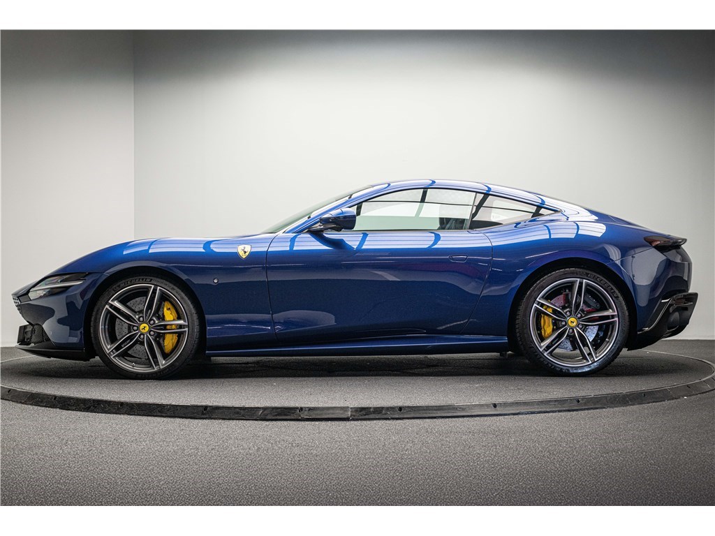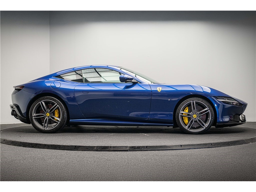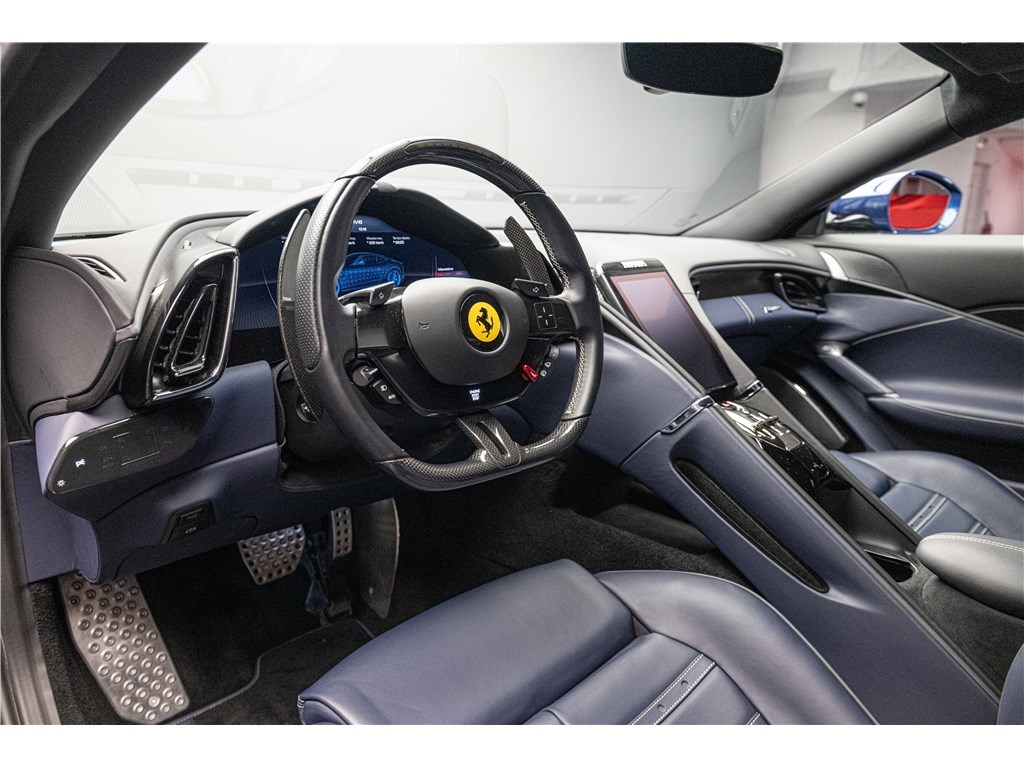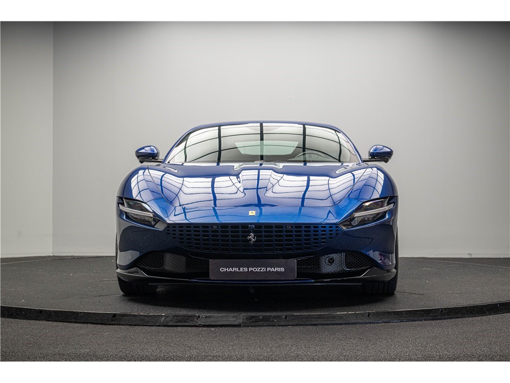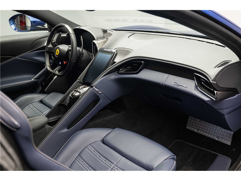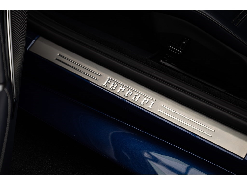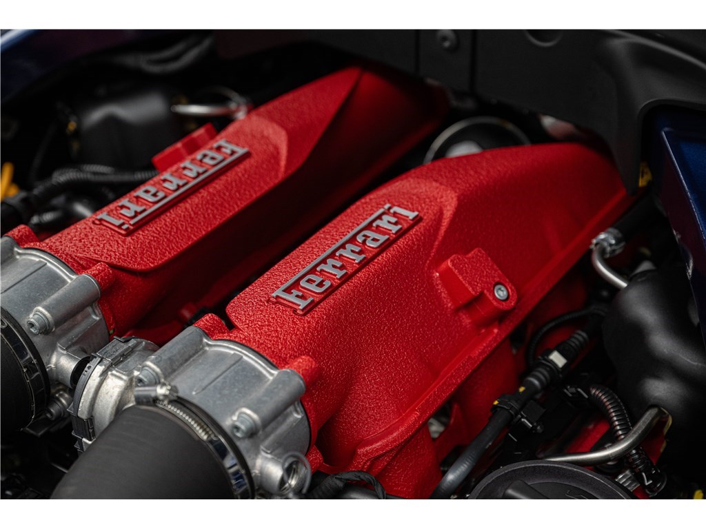 La Ferrari Roma est propulsée par un moteur V8 bi-turbo de 4,0 litres développant une puissance de 620 chevaux. Ce modèle présente son extérieur dans l’élégante teinte Bleu Tour de France, et propose deux plus deux places assises dans un habitacle luxueux dont l’intérieur est en cuir de couleur Bleu Sterling. La Roma est un modèle clé car elle incarne un retour à la « Dolce Vita », combinant le style élégant et minimaliste des GT classiques des années 50 et 60 à des performances de pointe, notamment l’introduction d’une nouvelle transmission à double embrayage à huit rapports.