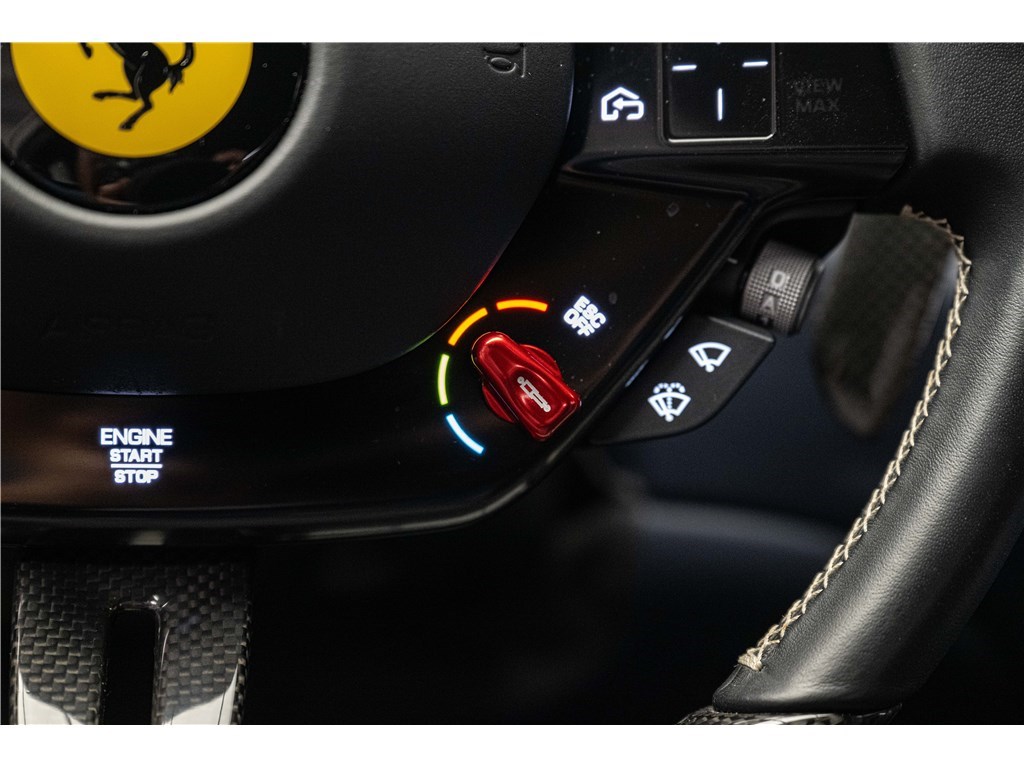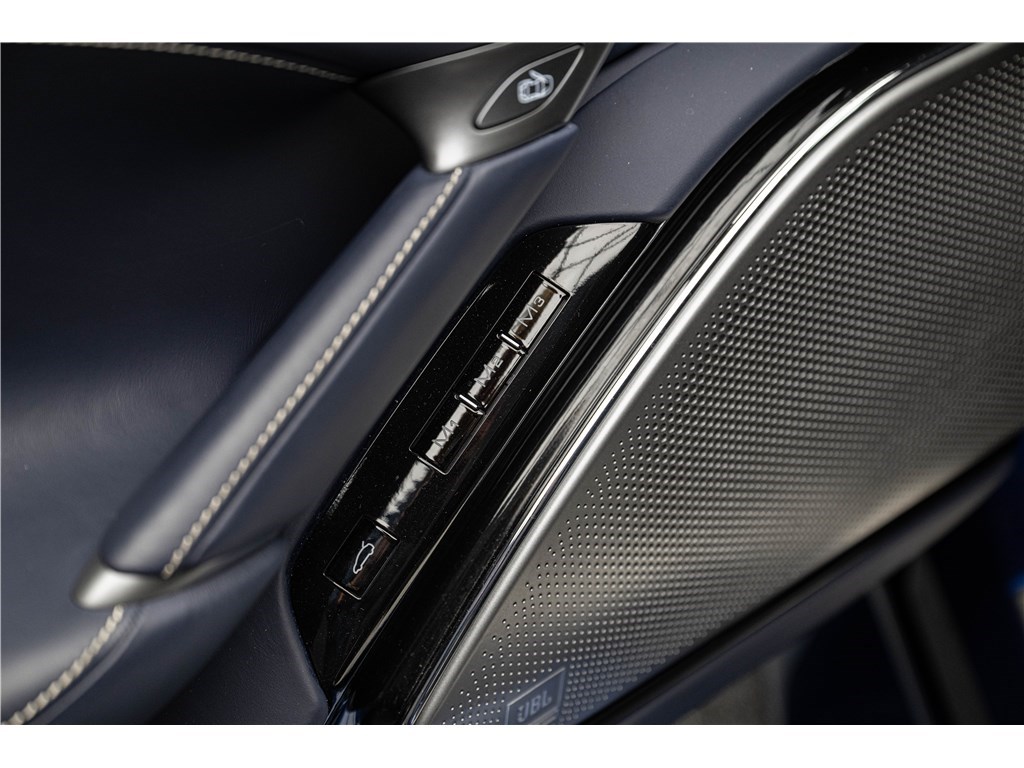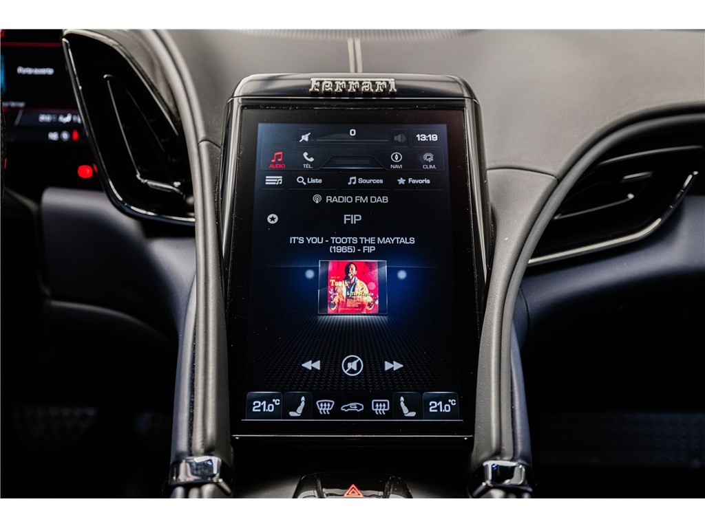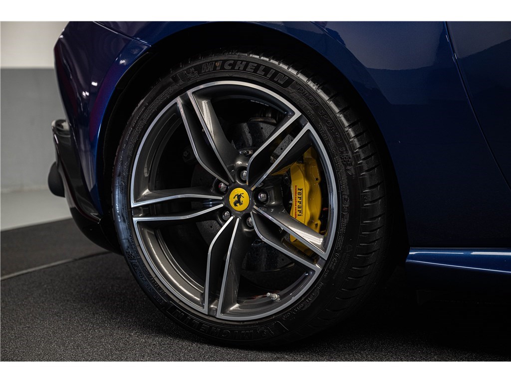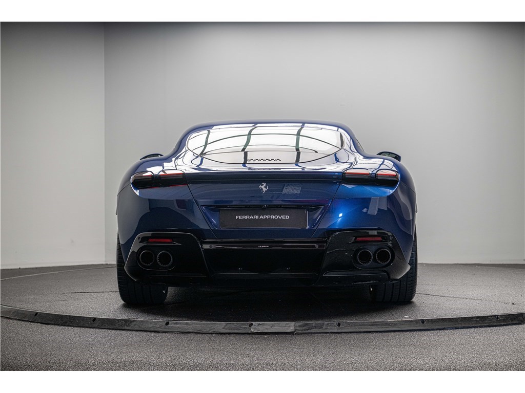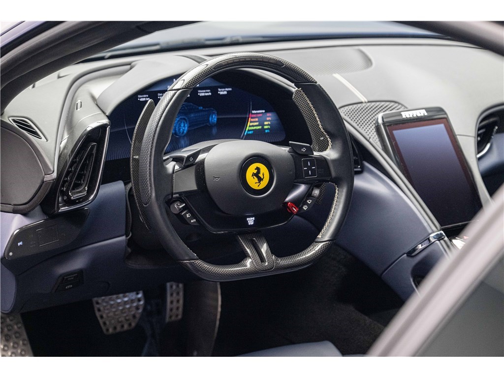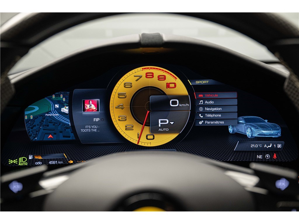 La Ferrari Roma est propulsée par un moteur V8 bi-turbo de 4,0 litres développant une puissance de 620 chevaux. Ce modèle présente son extérieur dans l’élégante teinte Bleu Tour de France, et propose deux plus deux places assises dans un habitacle luxueux dont l’intérieur est en cuir de couleur Bleu Sterling. La Roma est un modèle clé car elle incarne un retour à la « Dolce Vita », combinant le style élégant et minimaliste des GT classiques des années 50 et 60 à des performances de pointe, notamment l’introduction d’une nouvelle transmission à double embrayage à huit rapports.