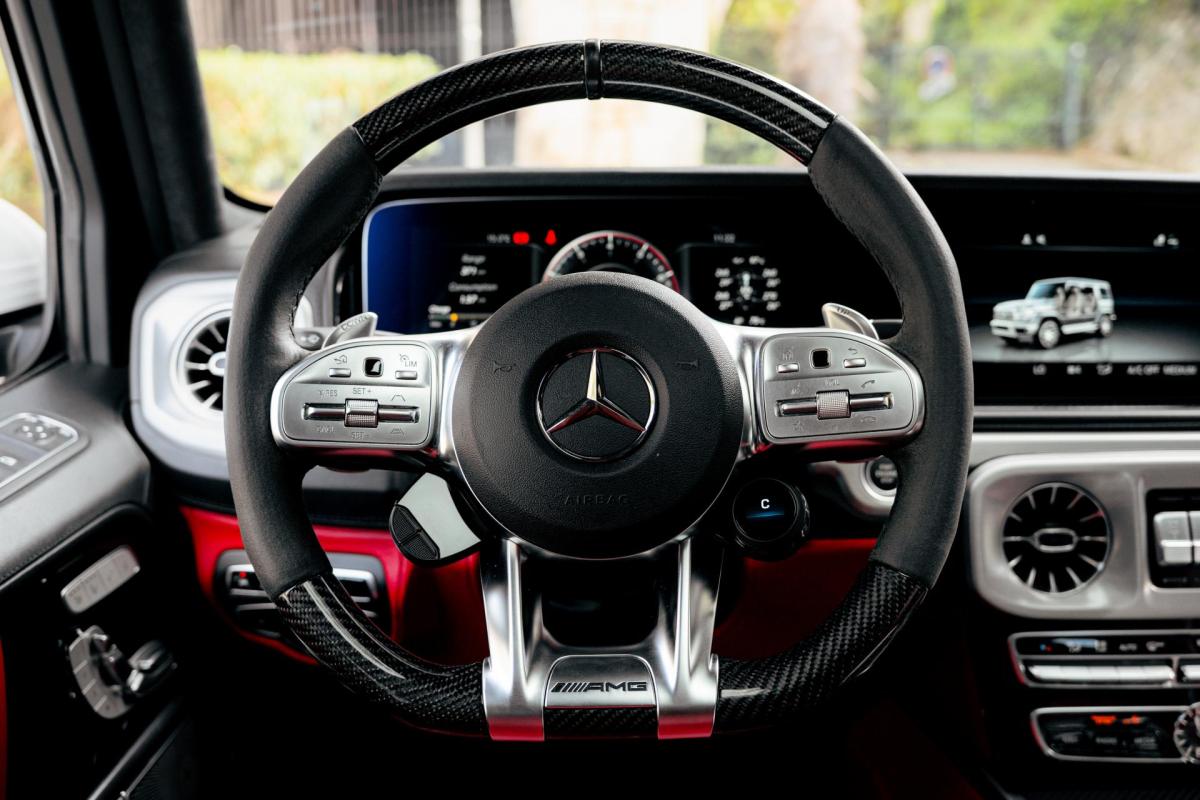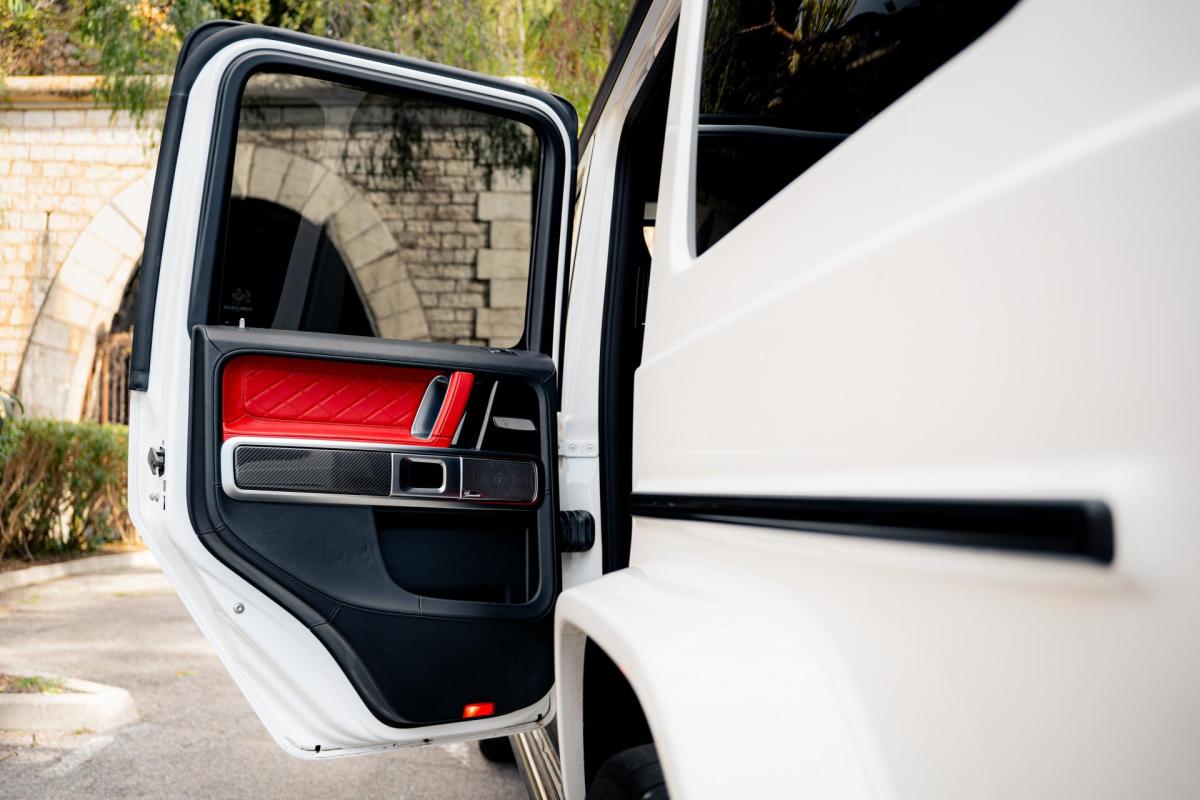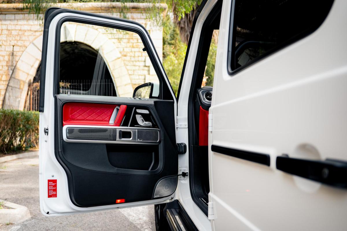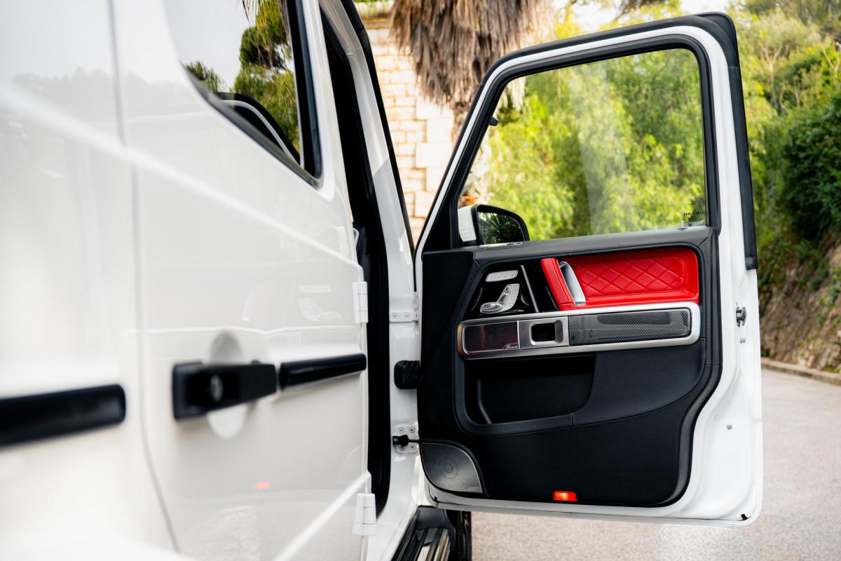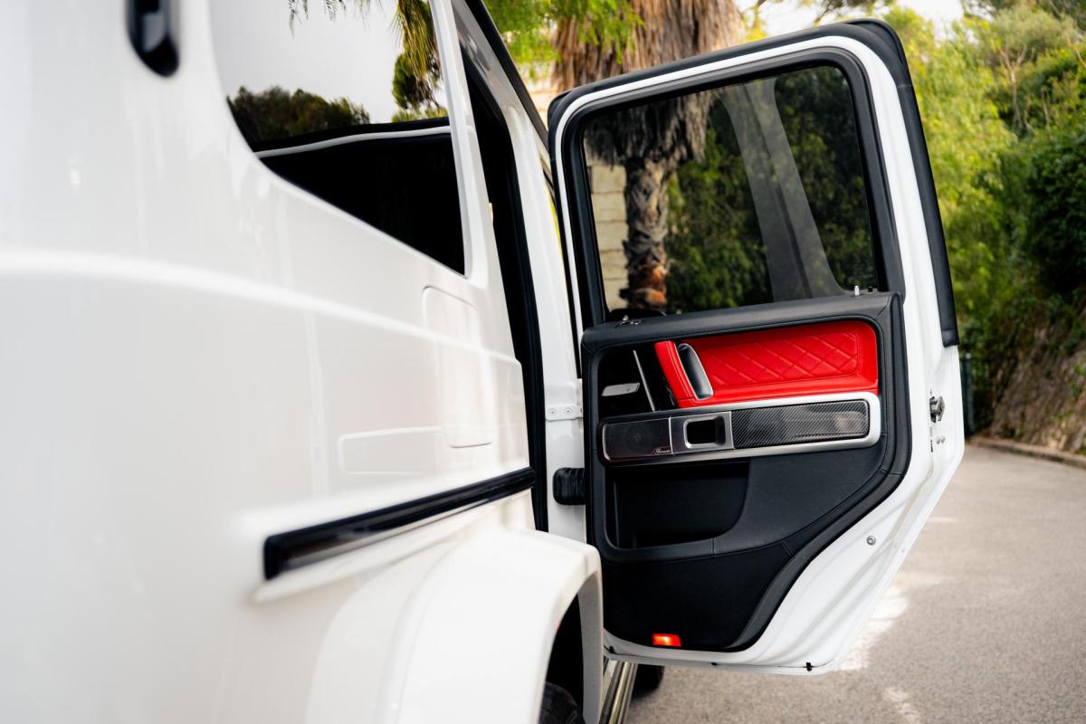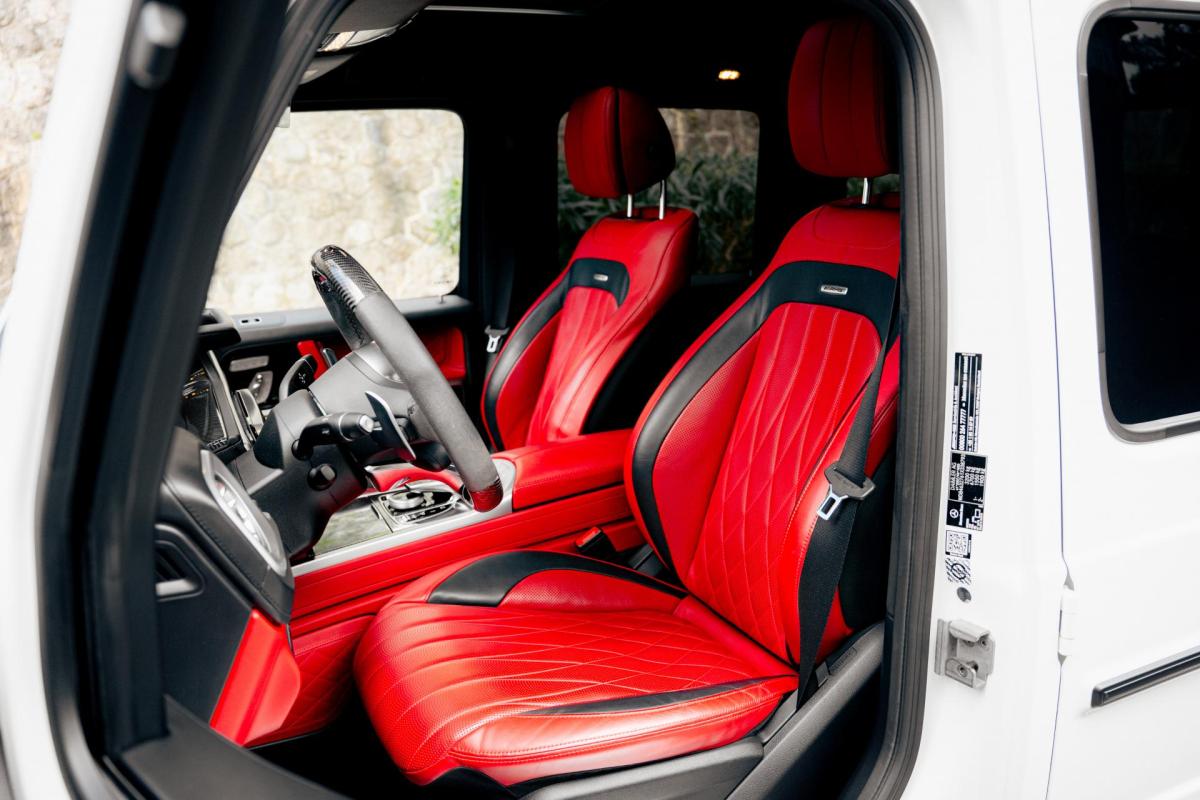 Le Mercedes Classe G 63 AMG (2019) est un 4×4 haute performance iconique, combinant le style du Classe G et la puissance sportive AMG. Cet exemplaire affiche un extérieur blanc avec un intérieur rouge, offrant un contraste très sportif et exclusif. Avec 47 000 km, il reste en très bon état général.