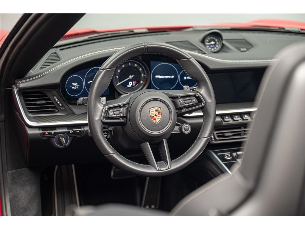This 2019 Porsche 911 Carrera S Cabriolet embodies Porsche's open-air lifestyle. With its 450 bhp flat-six engine, PDK gearbox and honed chassis, it promises driving sensations that are as pure as they are dynamic. With 41,500 km on the clock, its Carmine red colour and black leather interior with carbon accents make it a real eye-catcher. A refined sports car, ideal for combining performance and pleasure in all seasons.