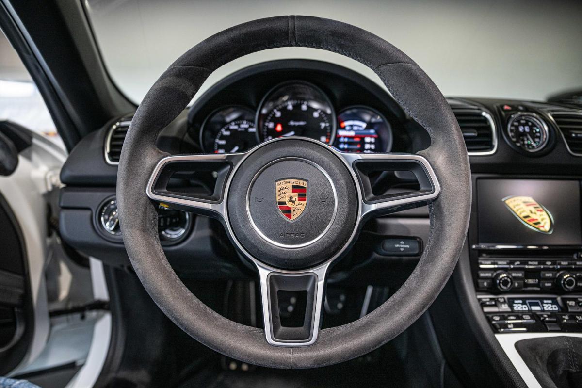 Cet exemplaire de 2016, affichant 26 000 km, se présente dans une élégante configuration blanc extérieur avec intérieur noir. Allégée et affûtée, la Boxster Spyder se distingue par son châssis sport, son tempérament moteur expressif et son caractère authentique, faisant d’elle une sportive de collection déjà très convoitée.