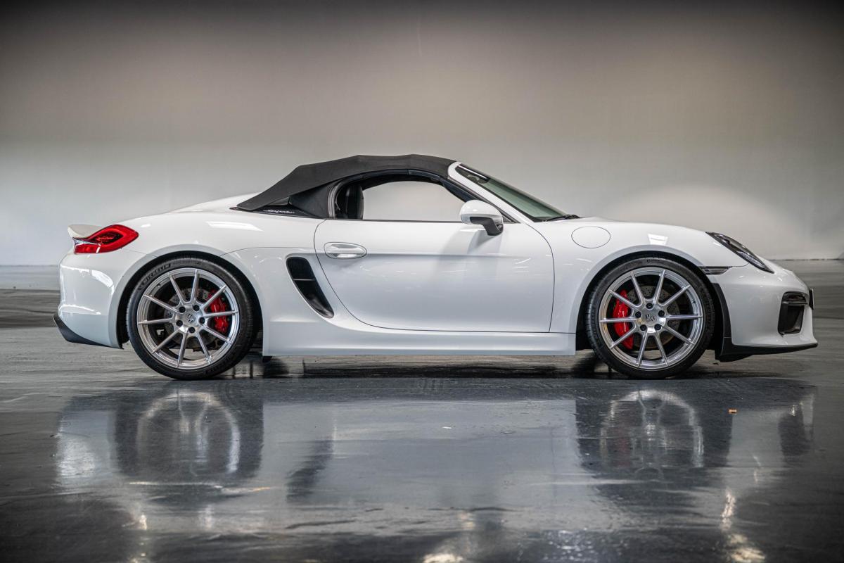 La Porsche Boxster Spyder Type 981 3.8 375 ch est l’une des versions les plus radicales et recherchées de la génération 981. Animée par le flat-six atmosphérique 3.8L de 375 ch, associé exclusivement à une boîte manuelle, elle offre une expérience de conduite pure, centrée sur le plaisir et la précision.
