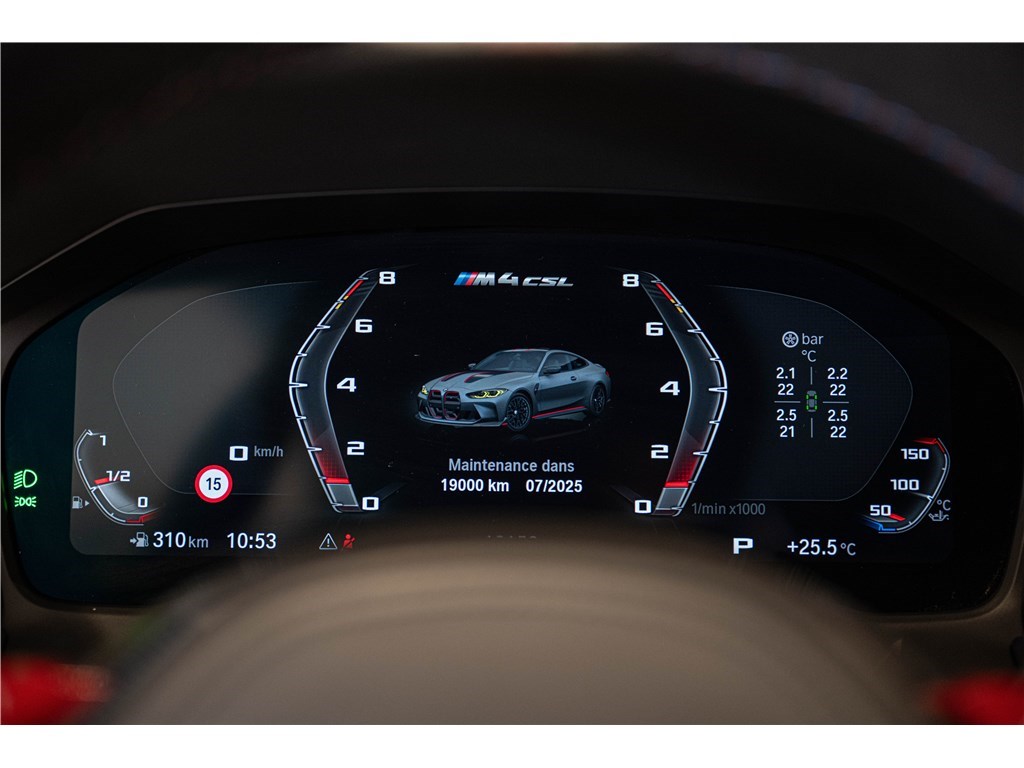 BMW M4 CSL – 3.0 550 ch – 2024 – 12 000 km. Alliance parfaite entre sportivité brute et élégance racée, cette édition limitée se distingue par sa teinte Gris Clair mat et ses projecteurs Laser M jaunes. À bord, l’ambiance est sobre et exclusive, sublimée par un affichage tête haute et une finition noire épurée. Véritable hommage aux 50 ans de BMW Motorsport, cette CSL incarne la performance à l’état pur. Garantie WTW 12 mois incluse. Disponible chez Charles Pozzi Lille. Livraison France entière.