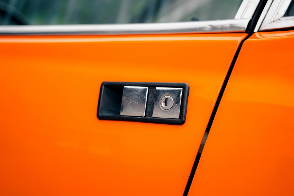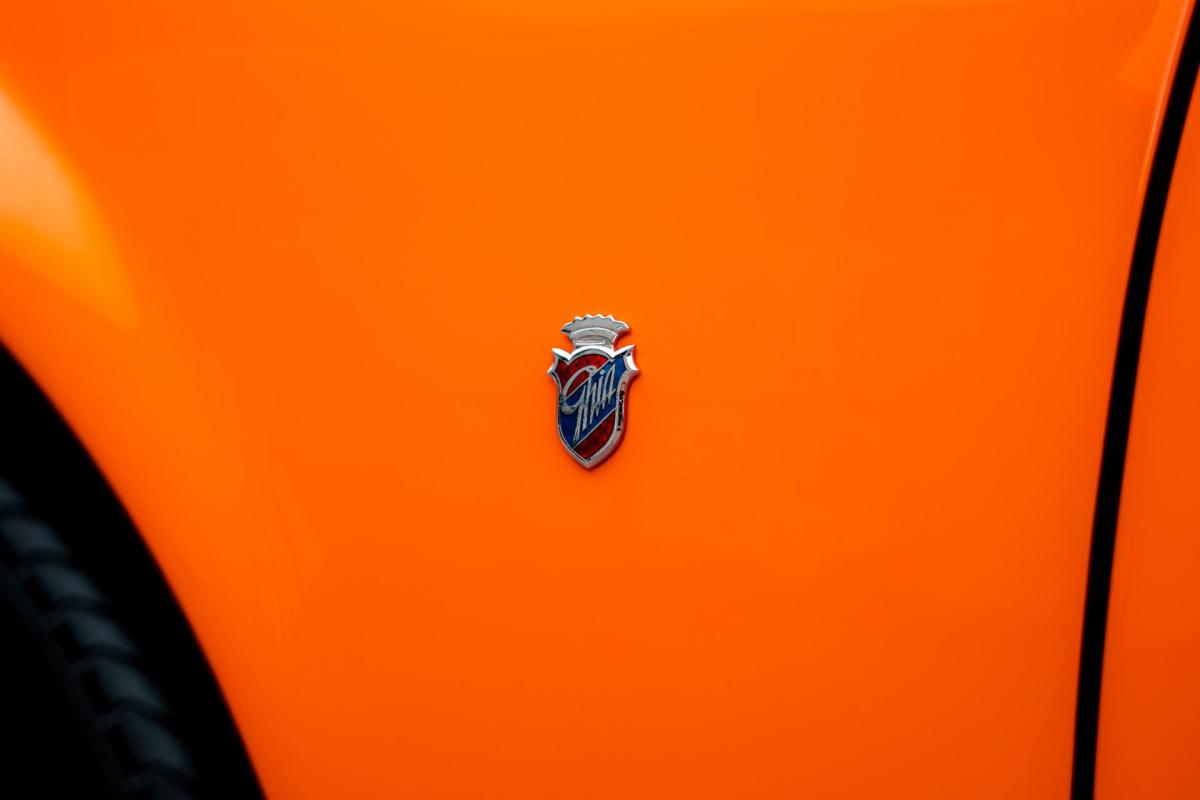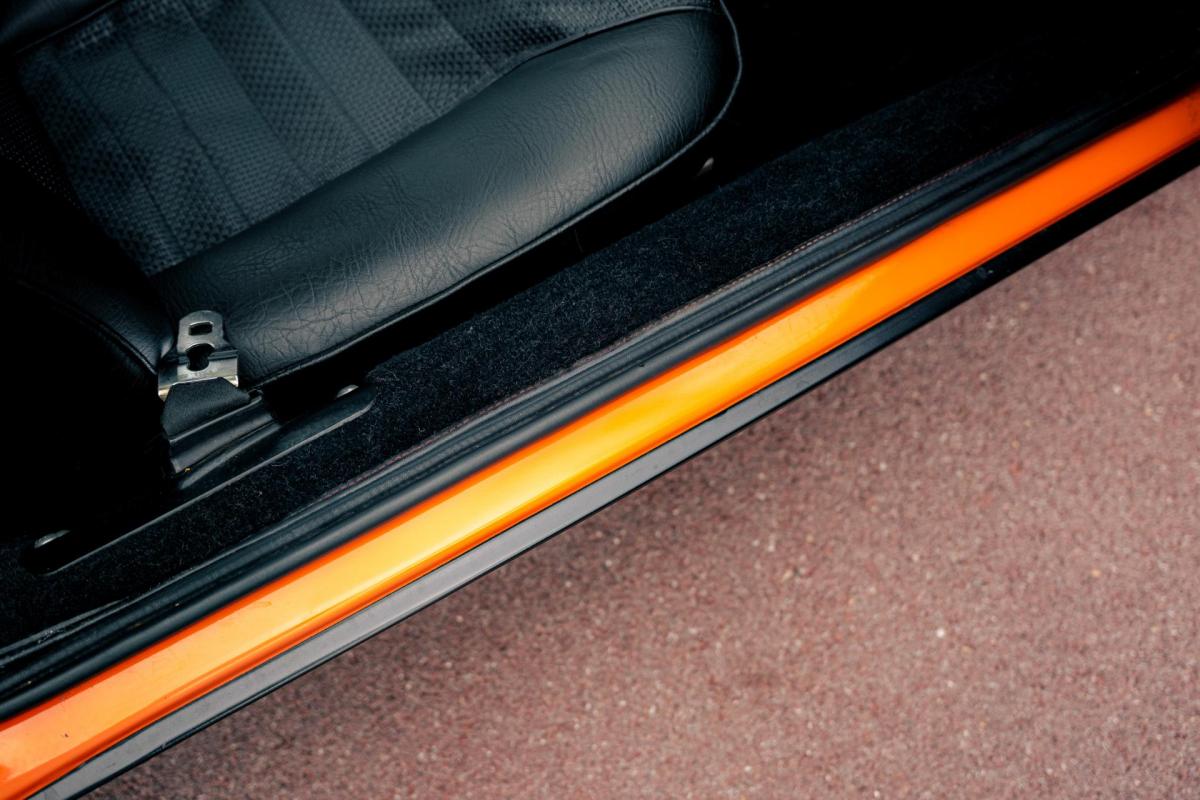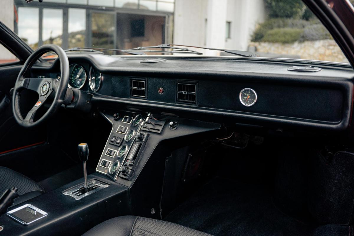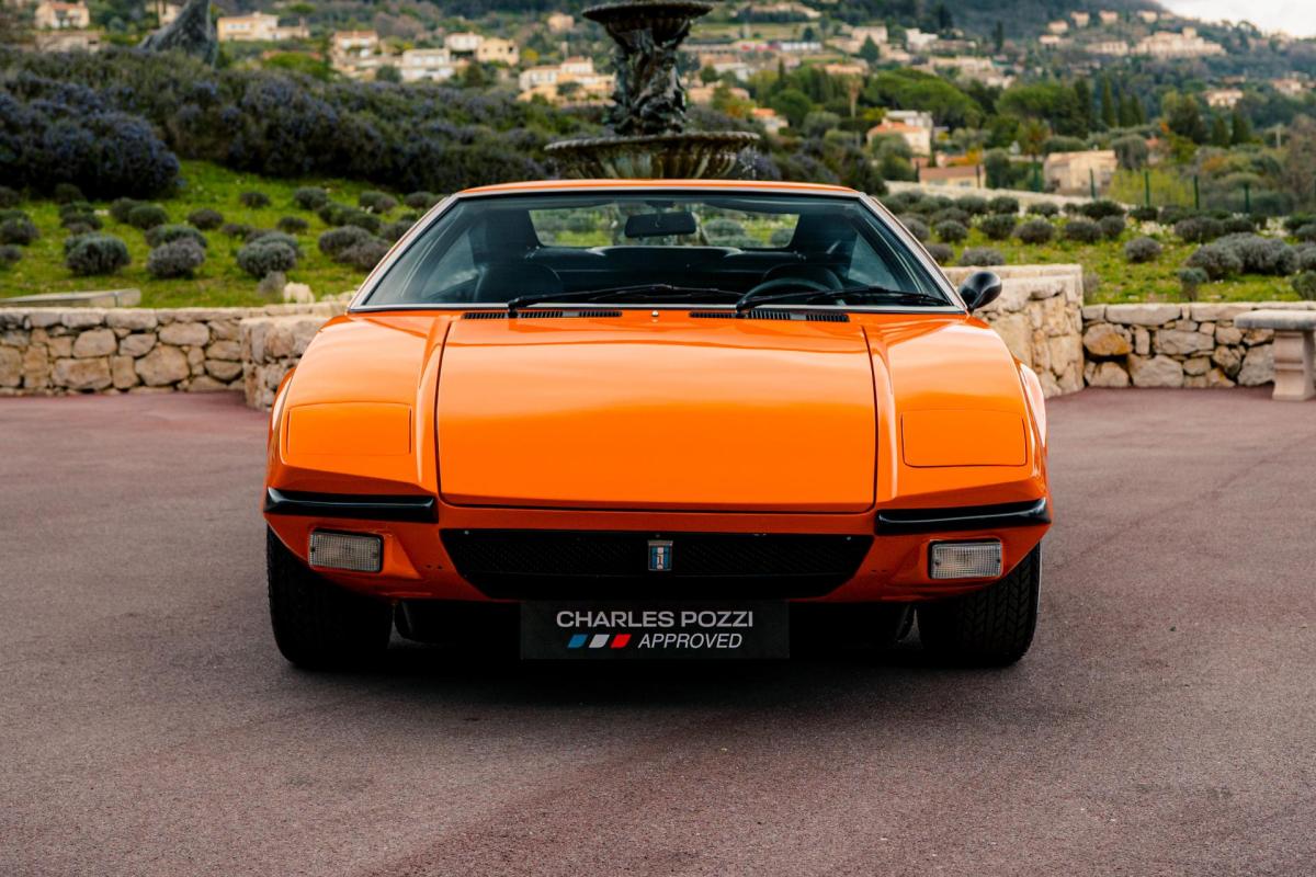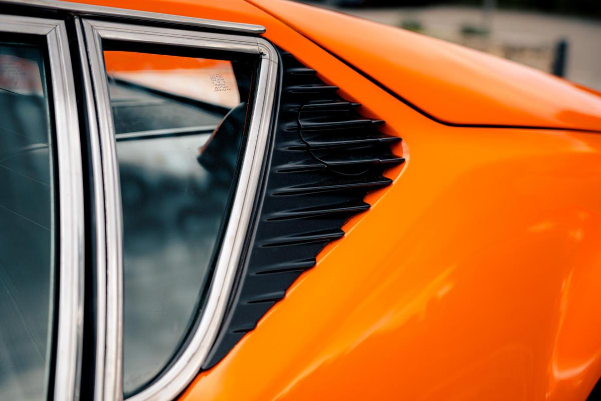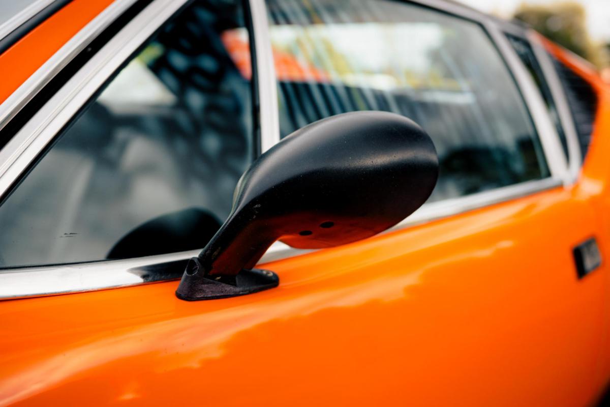 La De Tomaso Pantera est une sportive emblématique des années 70, associant design italien et mécanique américaine. Cet exemplaire de 1973 se distingue par sa teinte orange audacieuse et son intérieur noir, affichant un faible kilométrage de 13 100 km, rare pour un modèle de cette époque. Le V8 essence atmosphérique couplé à une boîte manuelle offre une expérience de conduite brute et authentique.