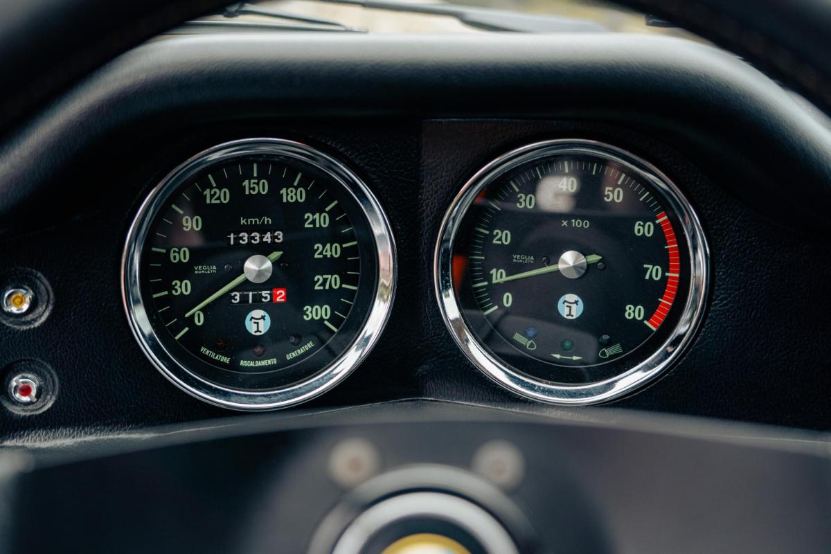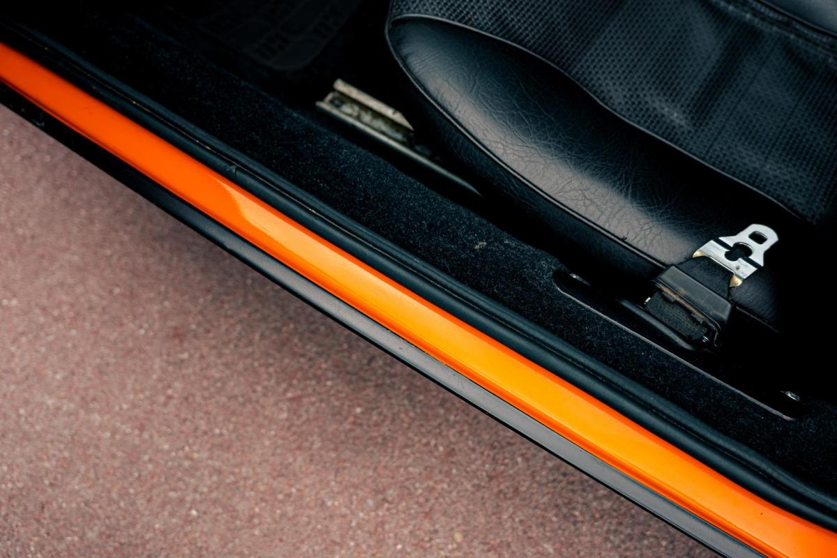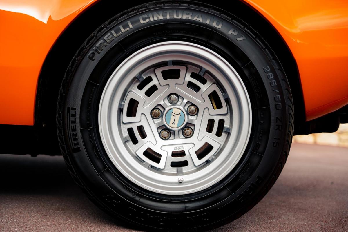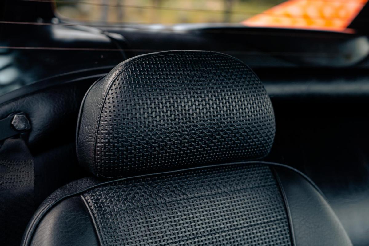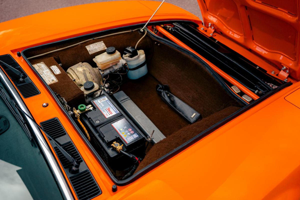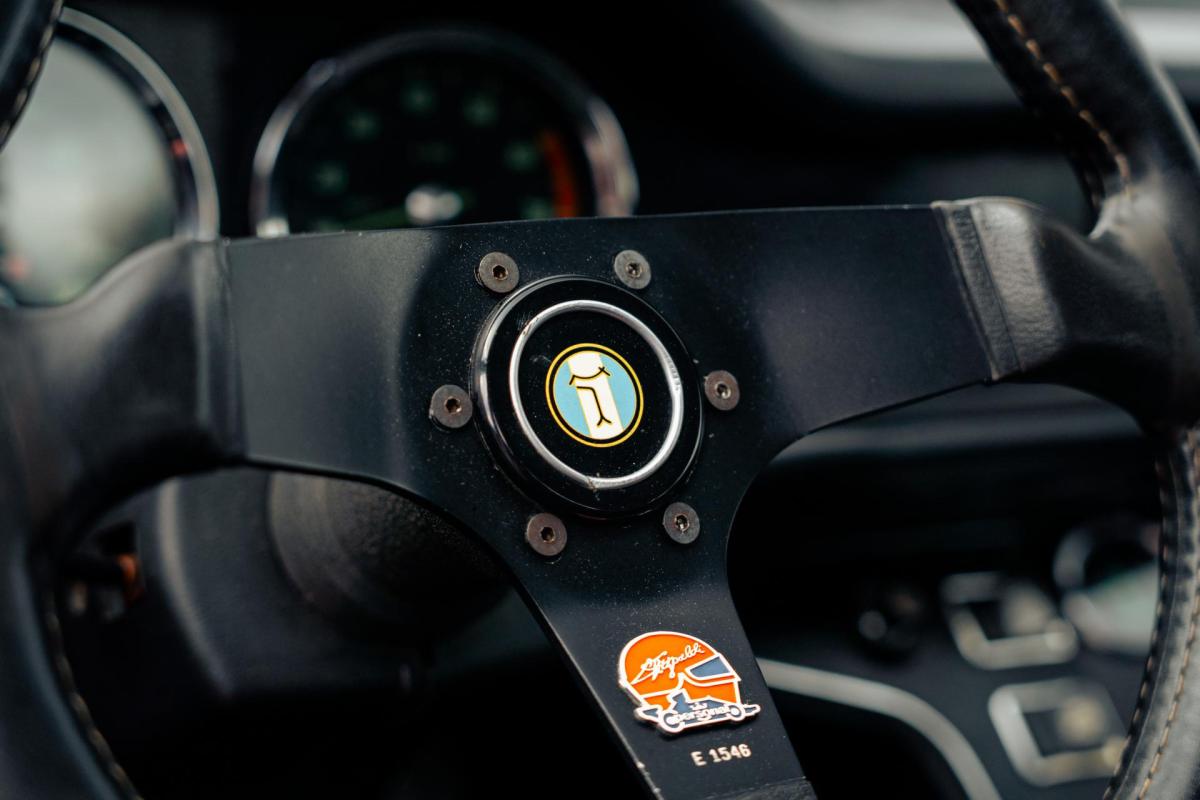 La De Tomaso Pantera est une sportive emblématique des années 70, associant design italien et mécanique américaine. Cet exemplaire de 1973 se distingue par sa teinte orange audacieuse et son intérieur noir, affichant un faible kilométrage de 13 100 km, rare pour un modèle de cette époque. Le V8 essence atmosphérique couplé à une boîte manuelle offre une expérience de conduite brute et authentique.
