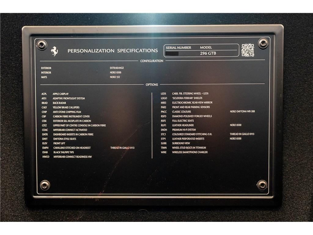 Cette 296 GTB fut livrée en France et est équipée d’un film de protection du capot et du parechoc avant. Son état est proche du neuf et son équipement complet.