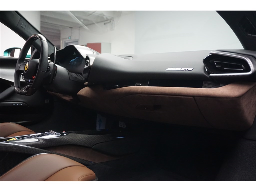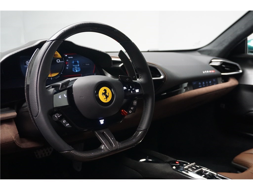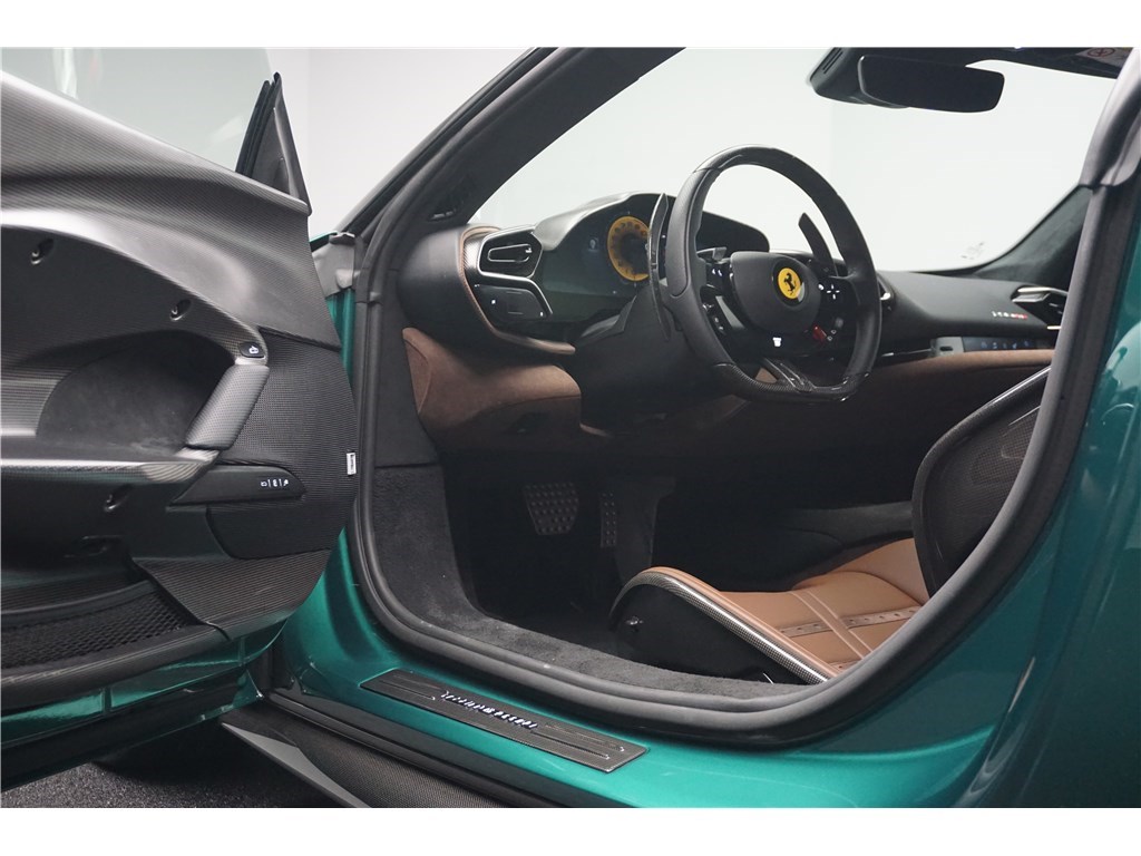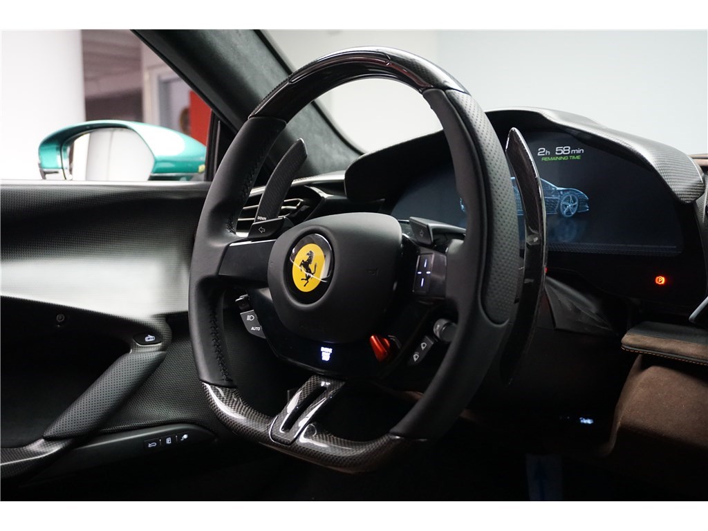 La Ferrari 296 GTB est animée par une motorisation V6 bi-turbo de 3,0 litres hybride rechargeable (PHEV) développant une puissance cumulée exceptionnelle de 830 chevaux. Ce modèle présente son extérieur dans l’élégante teinte Verde Pino, et propose deux places assises dans un habitacle luxueux dont l’intérieur est en cuir de couleur Cioccolato. La 296 GTB marque l’entrée du V6 dans l’ère moderne de Ferrari et inaugure une nouvelle ère pour la marque avec une performance de pointe combinée à l’électrification, redéfinissant le plaisir de conduite.
