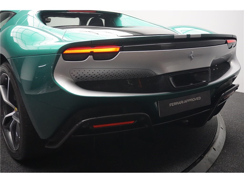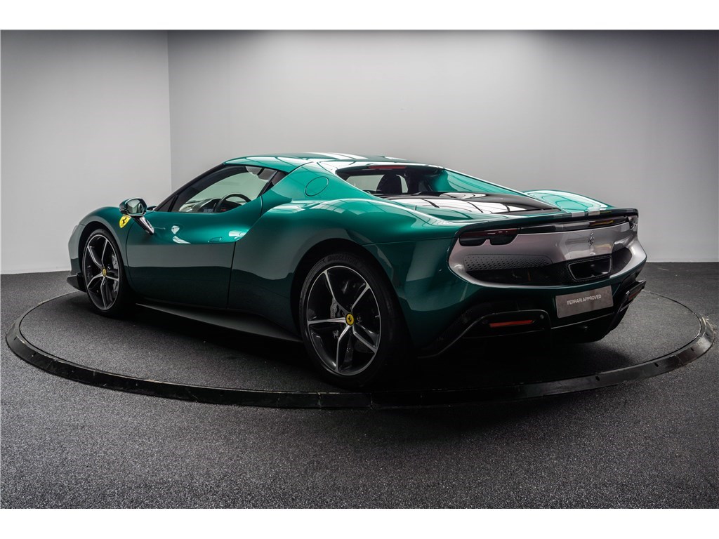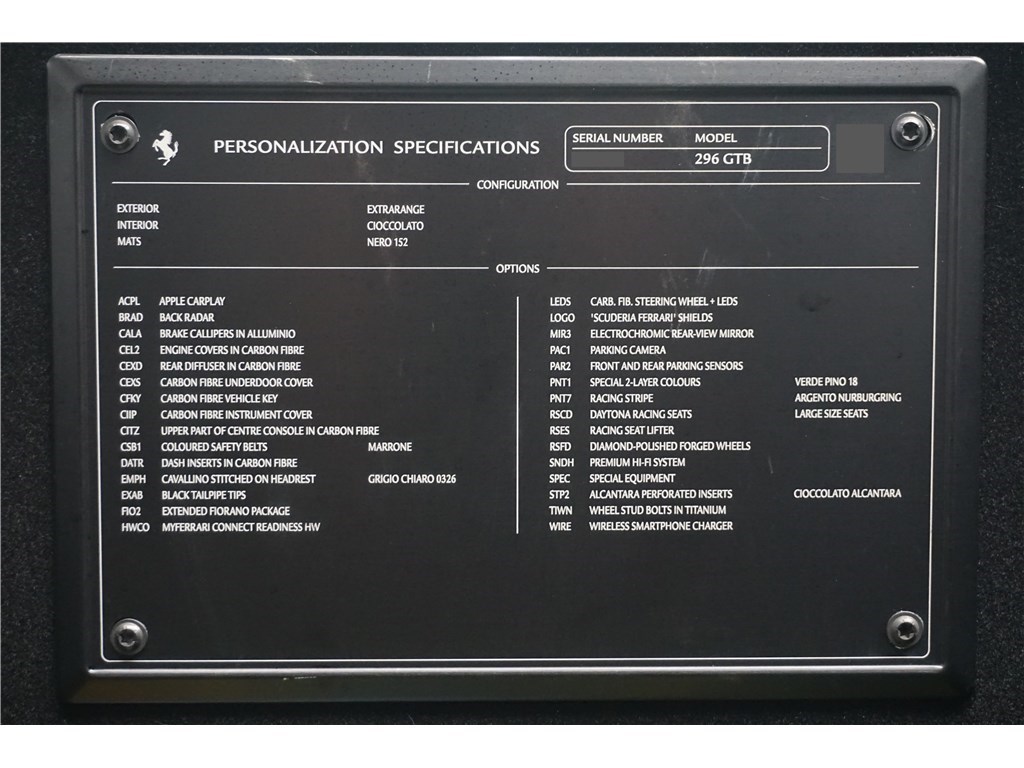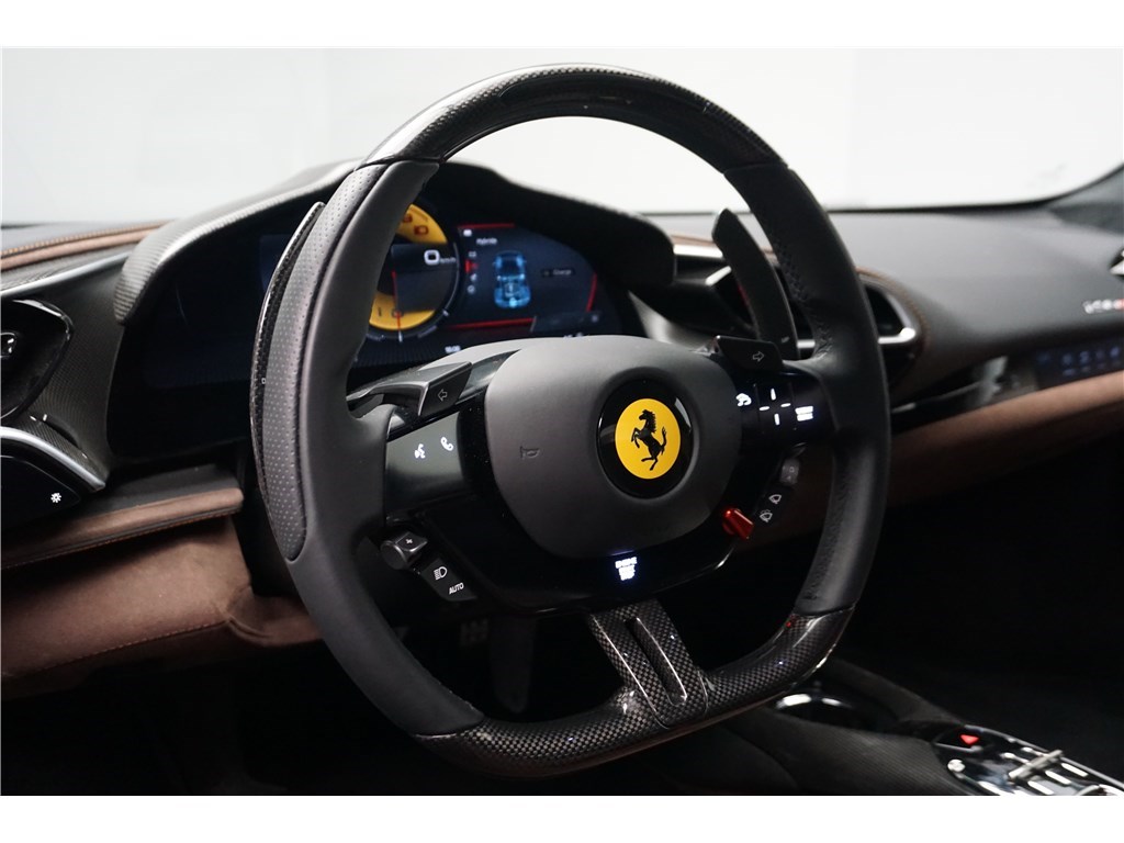 La Ferrari 296 GTB est animée par une motorisation V6 bi-turbo de 3,0 litres hybride rechargeable (PHEV) développant une puissance cumulée exceptionnelle de 830 chevaux. Ce modèle présente son extérieur dans l’élégante teinte Verde Pino, et propose deux places assises dans un habitacle luxueux dont l’intérieur est en cuir de couleur Cioccolato. La 296 GTB marque l’entrée du V6 dans l’ère moderne de Ferrari et inaugure une nouvelle ère pour la marque avec une performance de pointe combinée à l’électrification, redéfinissant le plaisir de conduite.