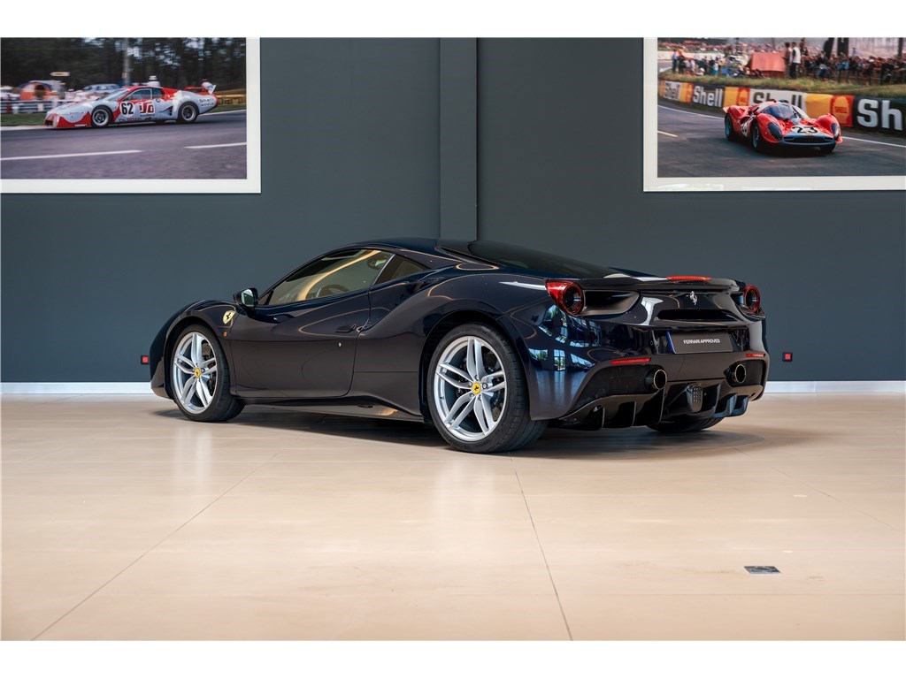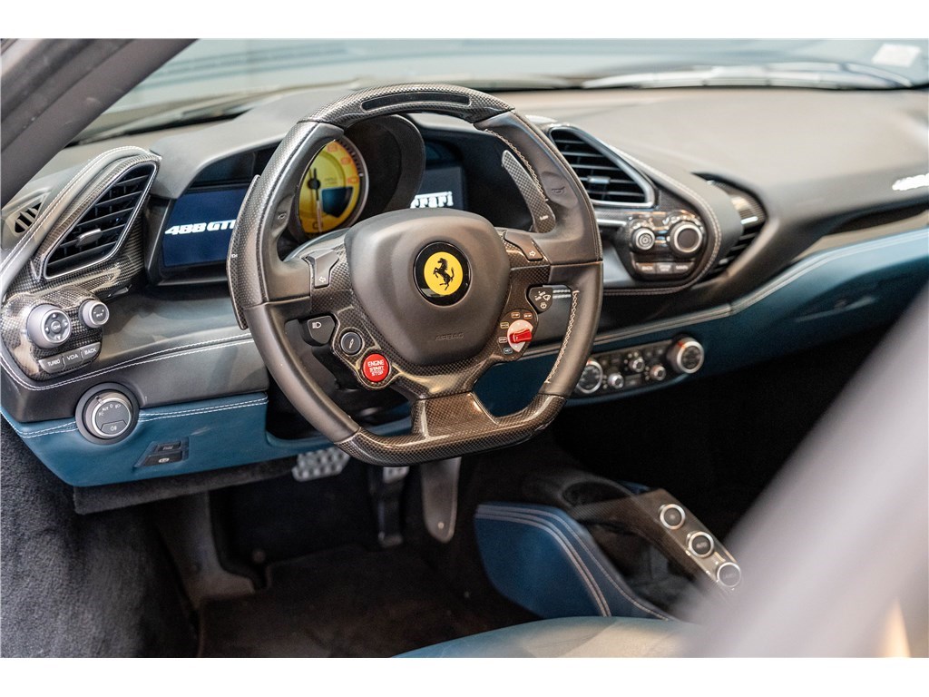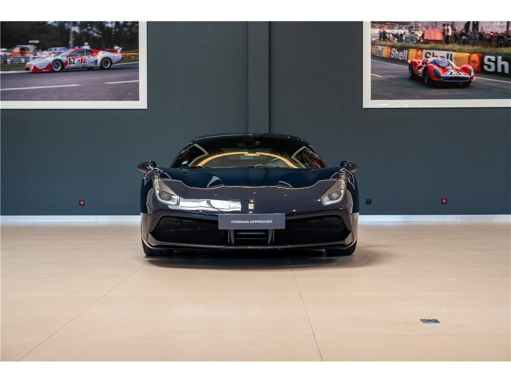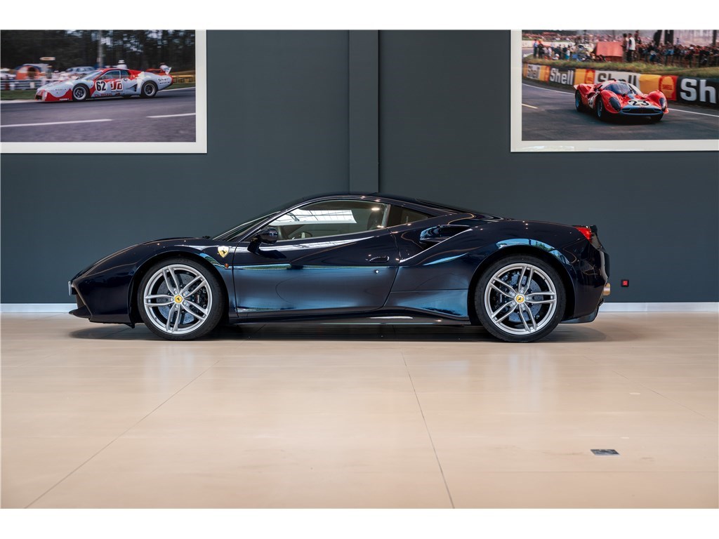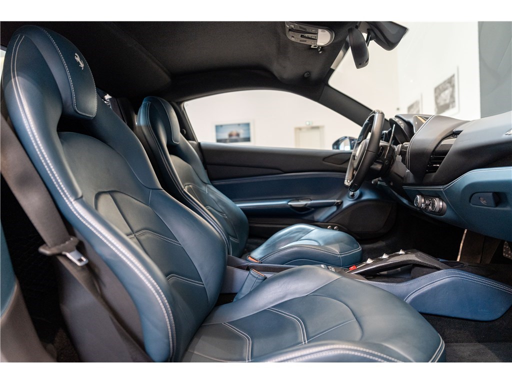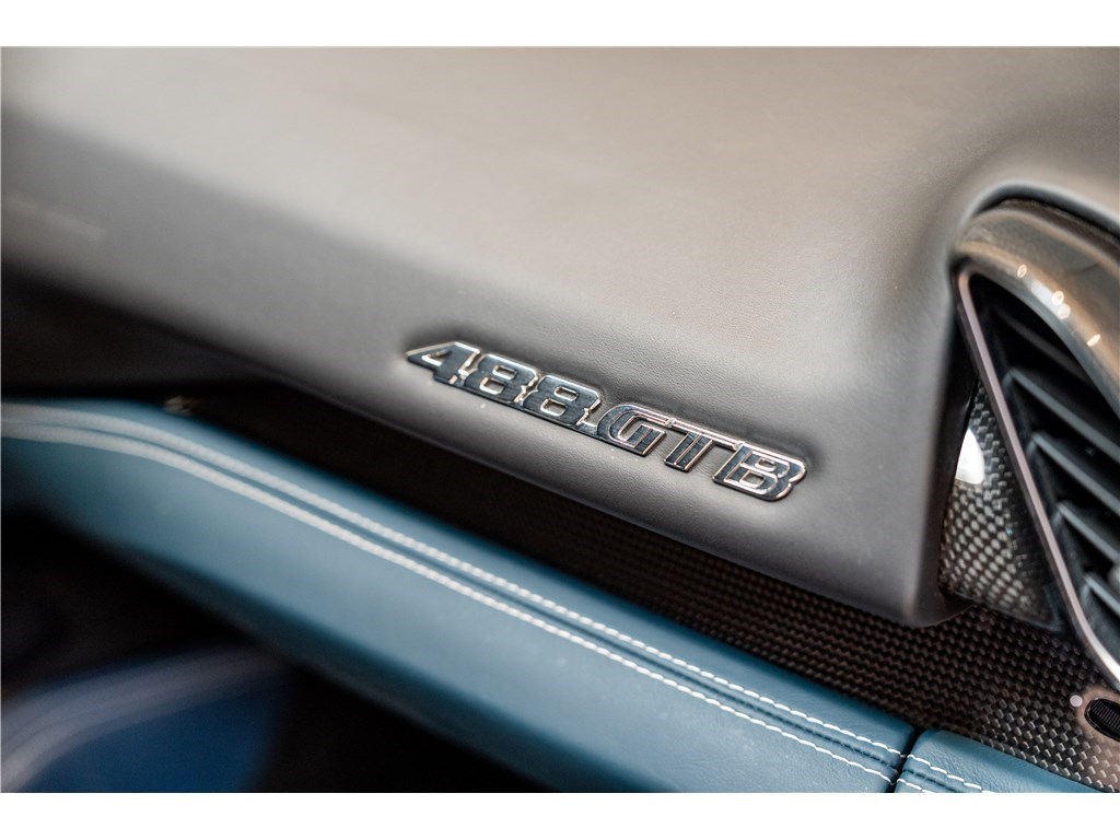 La Ferrari 488 GTB est propulsée par un moteur V8 bi-turbo de 3,9 litres développant une puissance de 670 chevaux. Ce modèle présente son extérieur dans l’élégante teinte Bleu Pozzi, et propose deux places assises dans un habitacle sportif dont l’intérieur est de couleur Bleu Medio. La 488 GTB est un modèle emblématique car elle fut la première Ferrari V8 à moteur central à adopter la technologie turbo, succédant à la 458 Italia et établissant de nouveaux standards de performance grâce à un couple accru et une réponse moteur sans précédent pour un moteur turbocompressé.