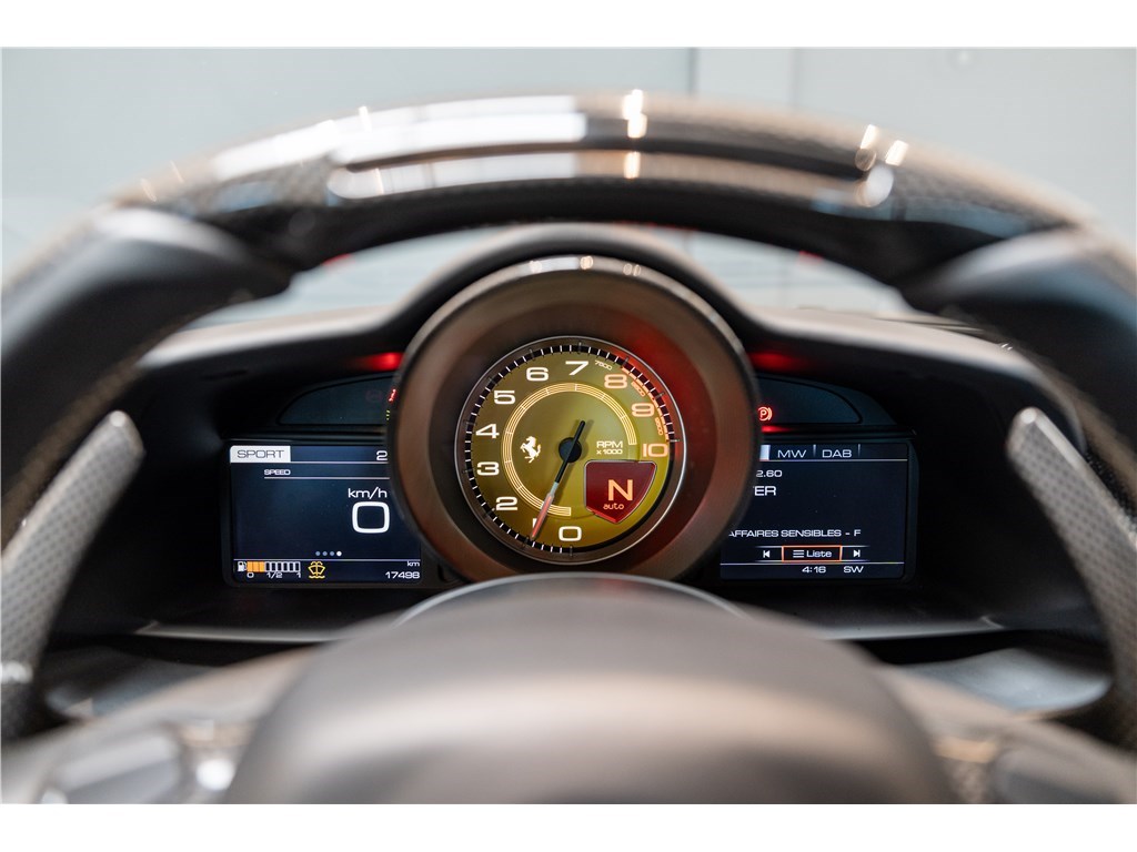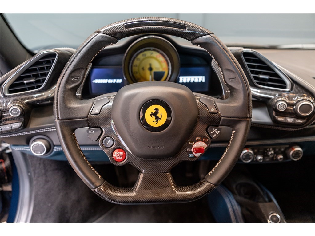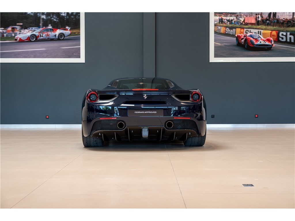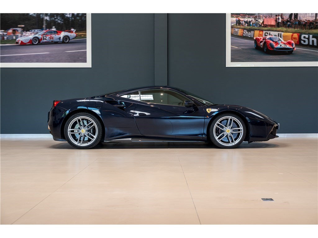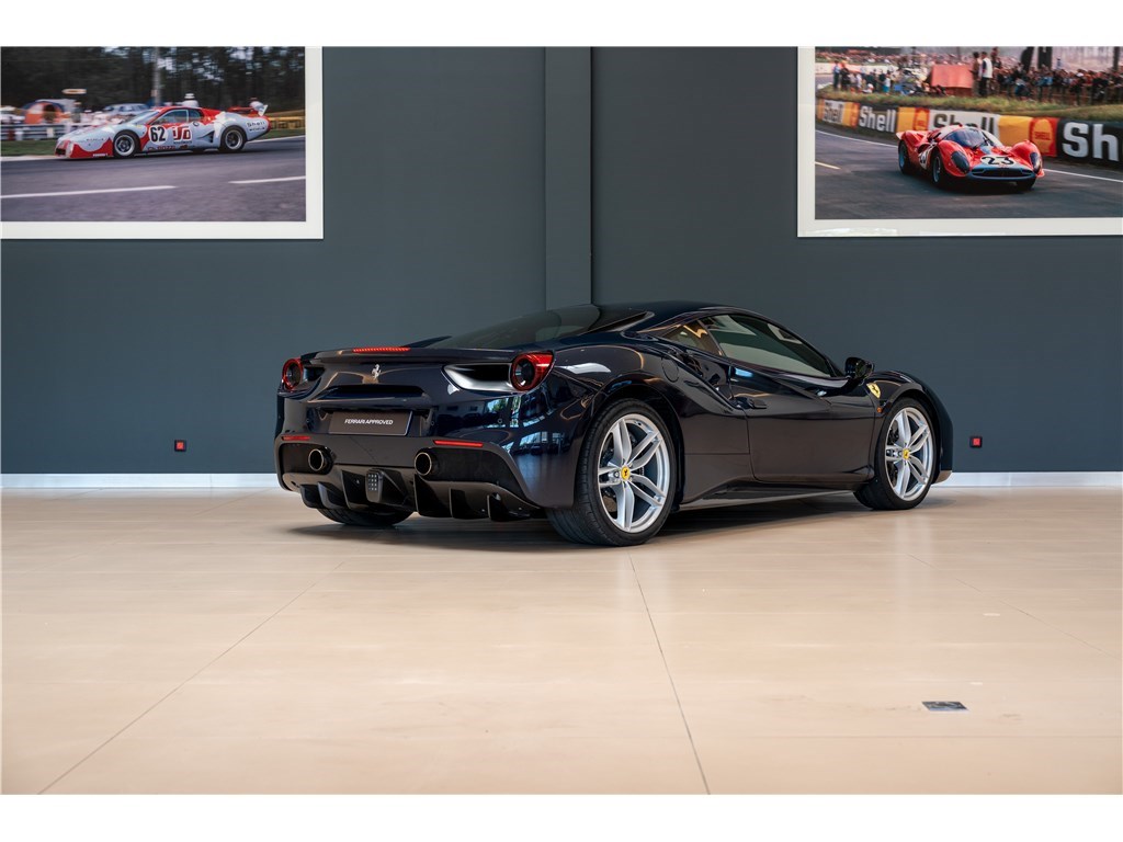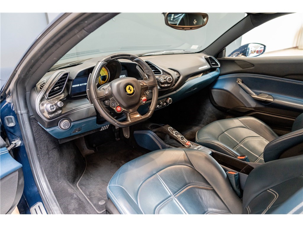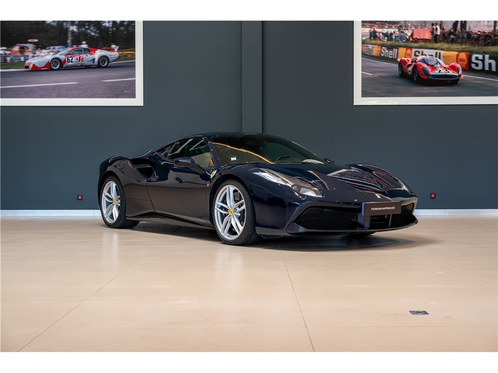 La Ferrari 488 GTB est propulsée par un moteur V8 bi-turbo de 3,9 litres développant une puissance de 670 chevaux. Ce modèle présente son extérieur dans l’élégante teinte Bleu Pozzi, et propose deux places assises dans un habitacle sportif dont l’intérieur est de couleur Bleu Medio. La 488 GTB est un modèle emblématique car elle fut la première Ferrari V8 à moteur central à adopter la technologie turbo, succédant à la 458 Italia et établissant de nouveaux standards de performance grâce à un couple accru et une réponse moteur sans précédent pour un moteur turbocompressé.