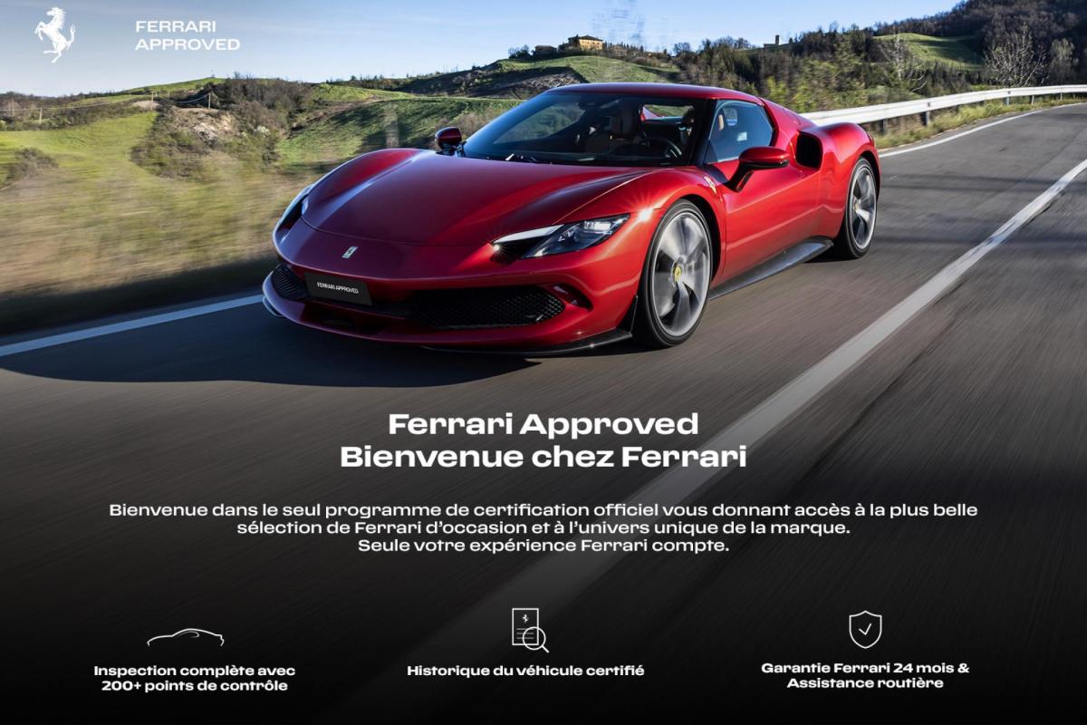Ferrari Approved est le programme de certification des voitures d'occasion, né pour garantir le maximum de sécurité à tous ceux qui achètent une Ferrari immatriculée pour la première fois depuis 14 ans maximum.