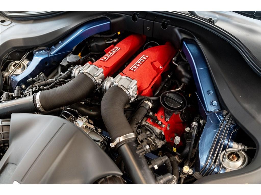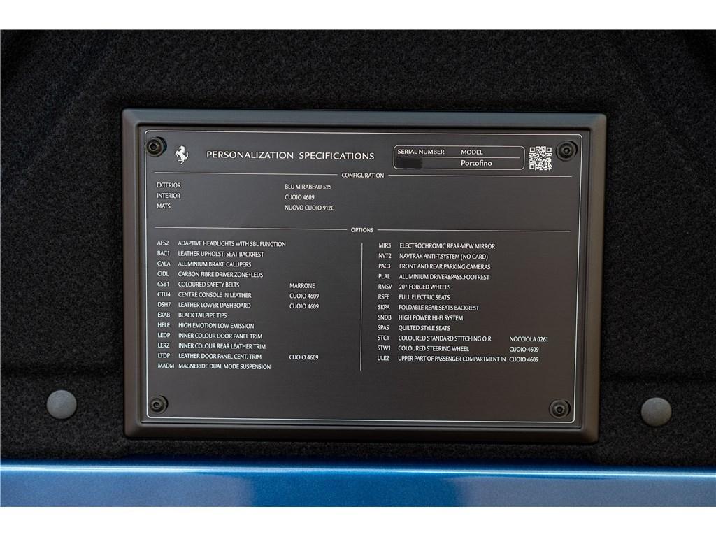 Voici une Ferrari Portofino dans une rare combinaison de Blu Mirabeau avec un intérieur Cuoio. Il est possible de peindre les écussons sur les ailes pour marquer son appartenance à l’univers Ferrari.
