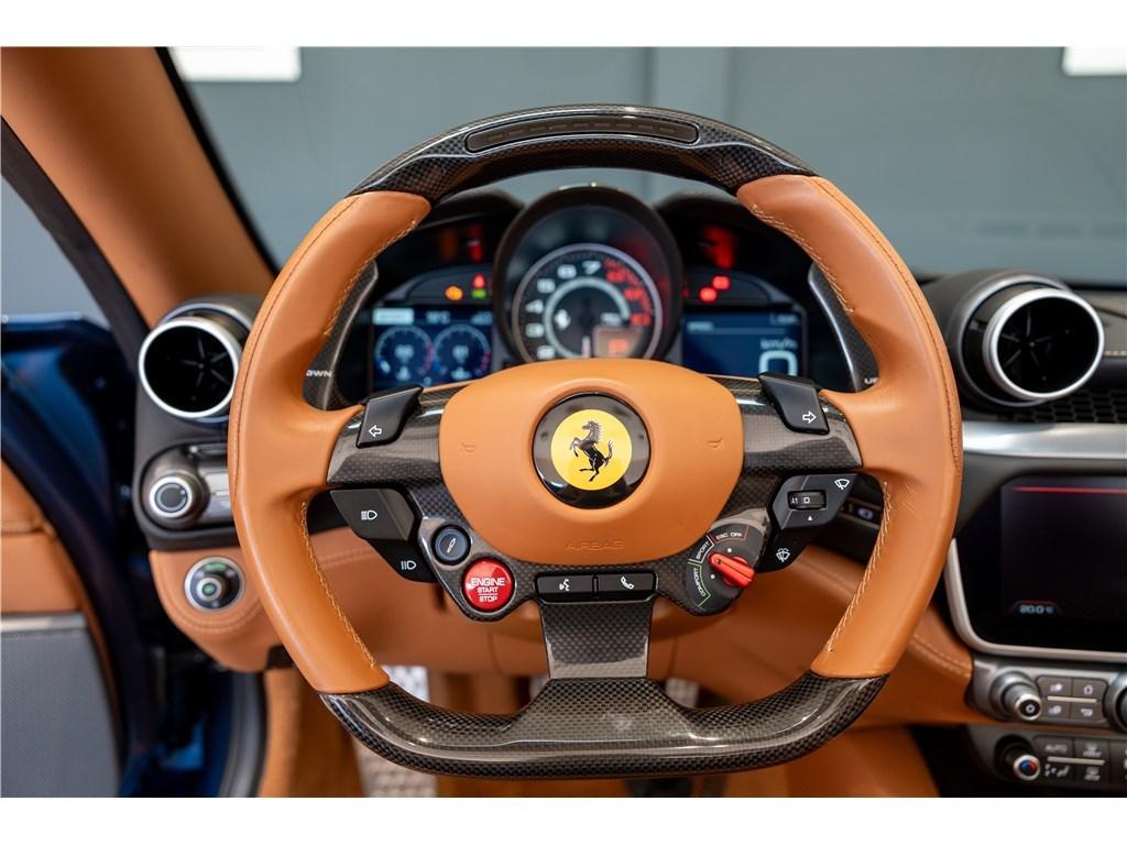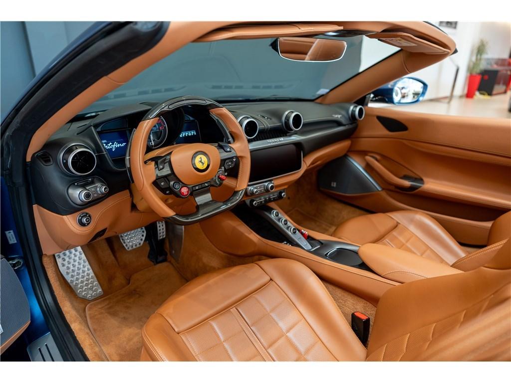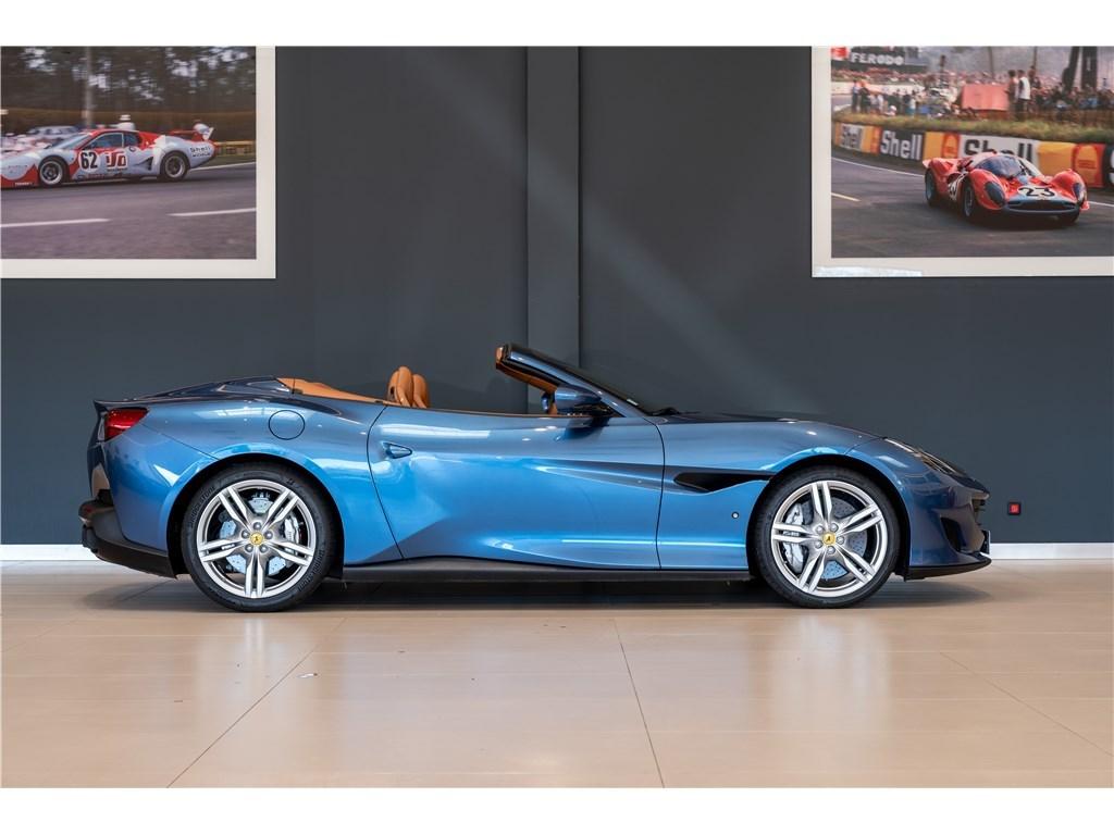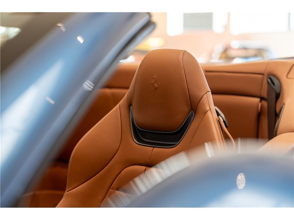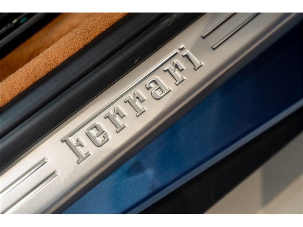 Voici une Ferrari Portofino dans une rare combinaison de Blu Mirabeau avec un intérieur Cuoio. Il est possible de peindre les écussons sur les ailes pour marquer son appartenance à l’univers Ferrari.