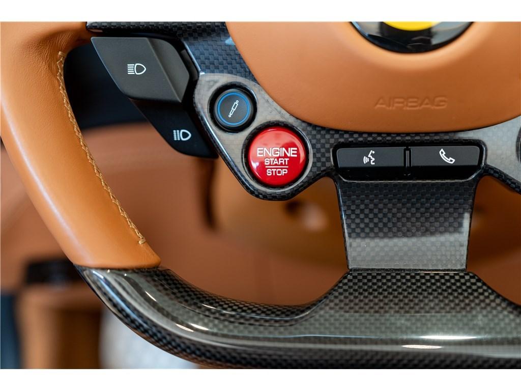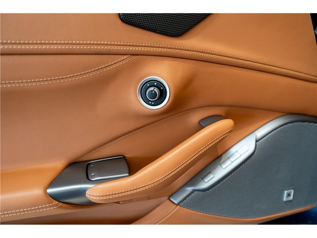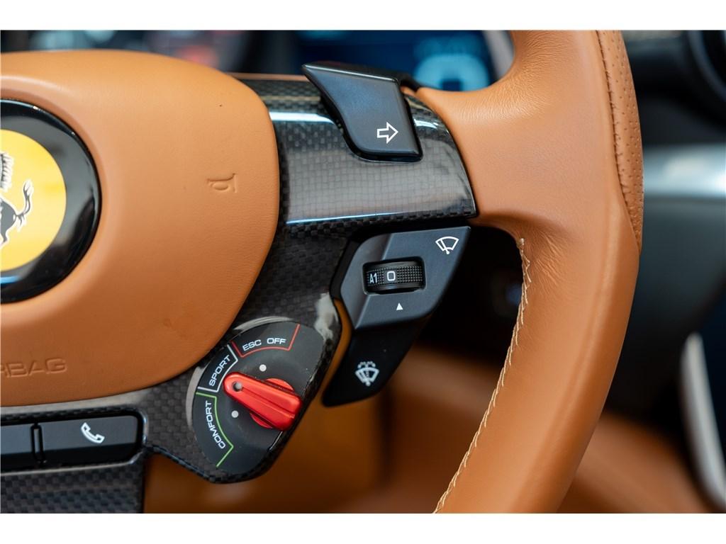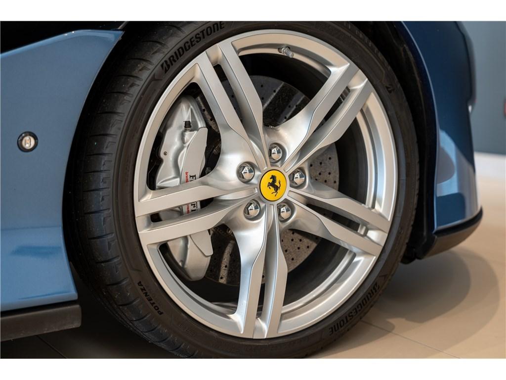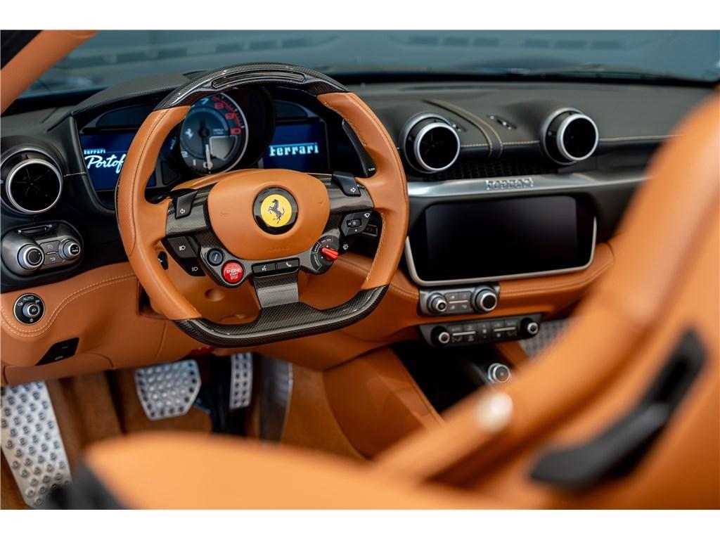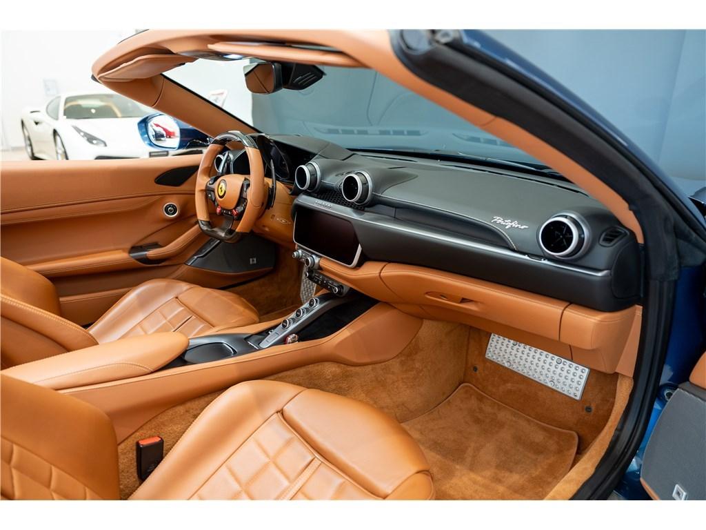 Voici une Ferrari Portofino dans une rare combinaison de Blu Mirabeau avec un intérieur Cuoio. Il est possible de peindre les écussons sur les ailes pour marquer son appartenance à l’univers Ferrari.
