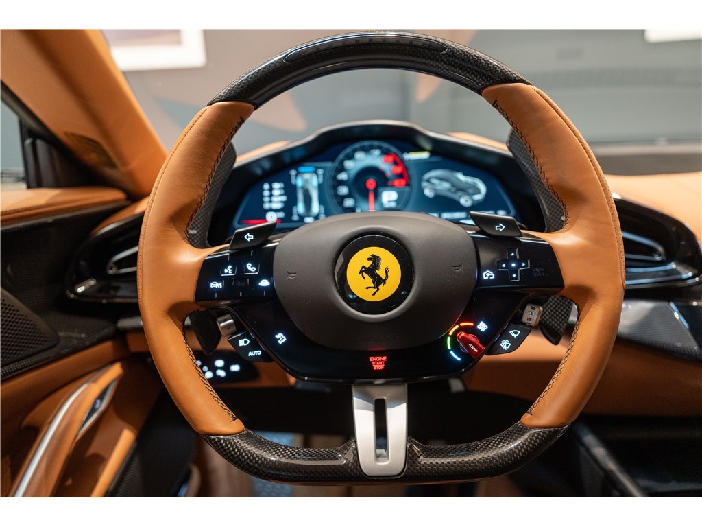 Le Ferrari Purosangue est animé par un moteur V12 atmosphérique de 6,5 litres développant une puissance remarquable de 725 chevaux. Ce modèle présente son extérieur dans l’élégante teinte de Noir nommée NERO PUROSANGUE, et propose quatre places assises individuelles dans un habitacle luxueux dont l’intérieur est en Cuir de couleur CUOIO (Marron). Le Purosangue est un modèle historique car il est le seul véhicule de la marque à adopter une configuration « High-Riding » (haute sur pattes), établissant ainsi le premier véritable « SUV » de l’histoire de Ferrari tout en étant équipé du V12 atmosphérique emblématique.