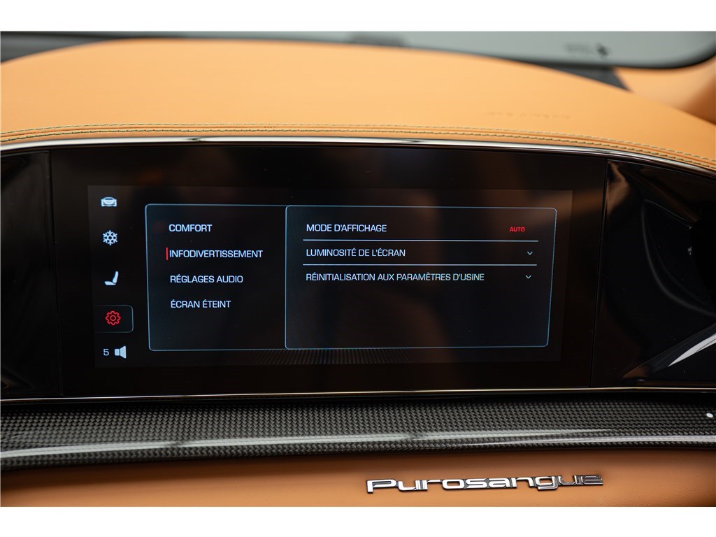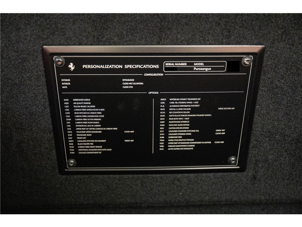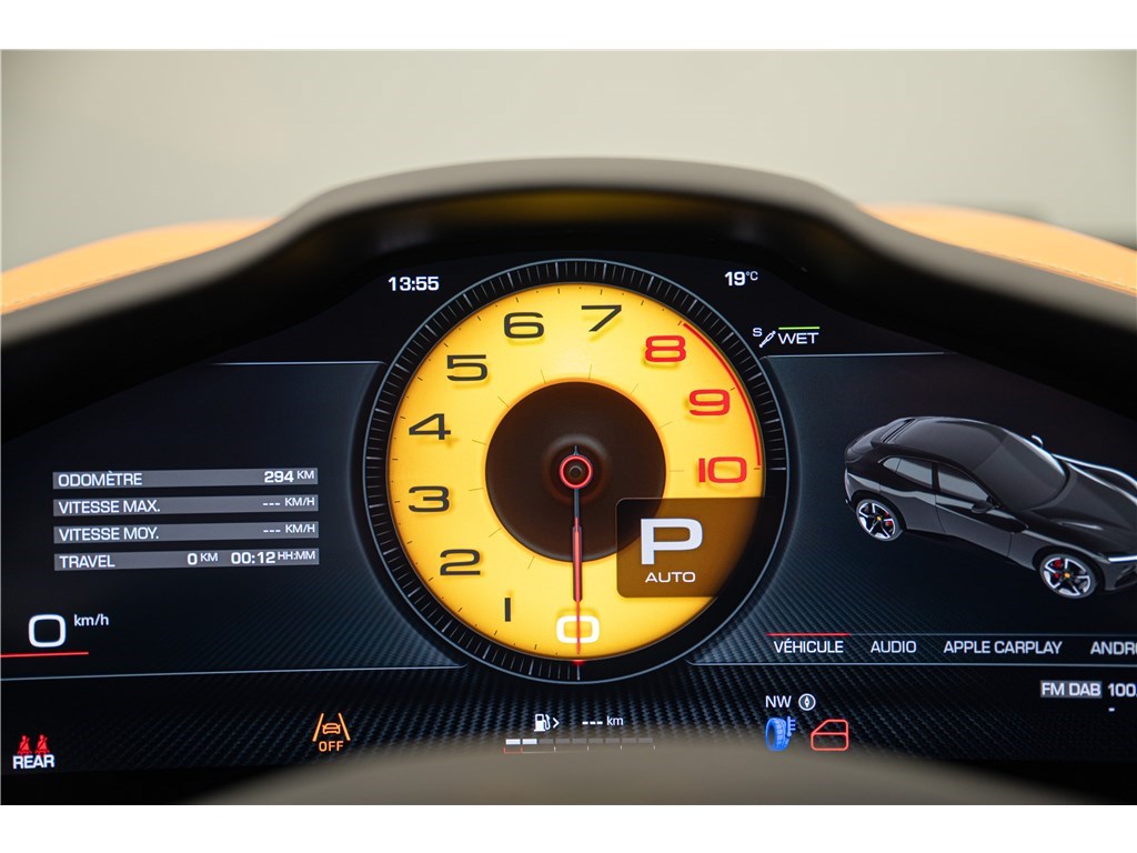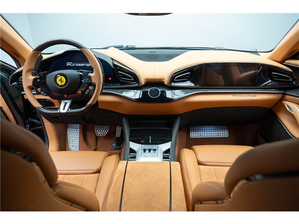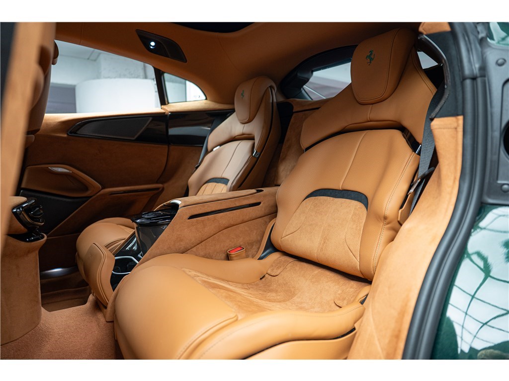 Le Ferrari Purosangue est animé par un moteur V12 atmosphérique de 6,5 litres développant une puissance remarquable de 725 chevaux. Ce modèle présente son extérieur dans l’élégante teinte Verde Zeltweg, et propose quatre places assises individuelles dans un habitacle luxueux dont l’intérieur est en Cuir de couleur Cuoio. Le Purosangue est un modèle historique car il est le seul véhicule de la marque à adopter une configuration « High-Riding », établissant ainsi le premier véritable « SUV » de l’histoire de Ferrari tout en étant équipé du V12 atmosphérique emblématique.