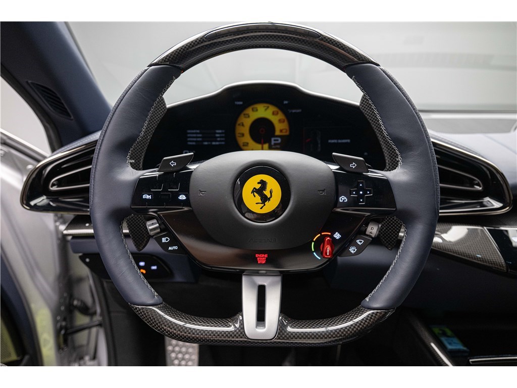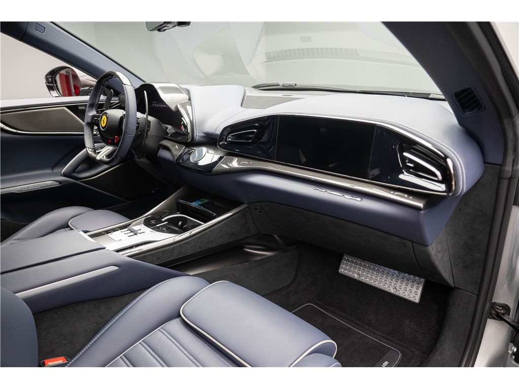 Le Ferrari Purosangue est animé par un moteur V12 atmosphérique de 6,5 litres développant une puissance remarquable de 725 chevaux. Ce modèle présente son extérieur dans l’élégante teinte Argento Nurburgring, et propose quatre places assises individuelles dans un habitacle luxueux dont l’intérieur est de couleur Blu Sterling. Le Purosangue est un modèle historique car il est le seul véhicule de la marque à adopter une configuration « High-Riding », établissant ainsi le premier véritable « SUV » de l’histoire de Ferrari tout en étant équipé du V12 atmosphérique emblématique.