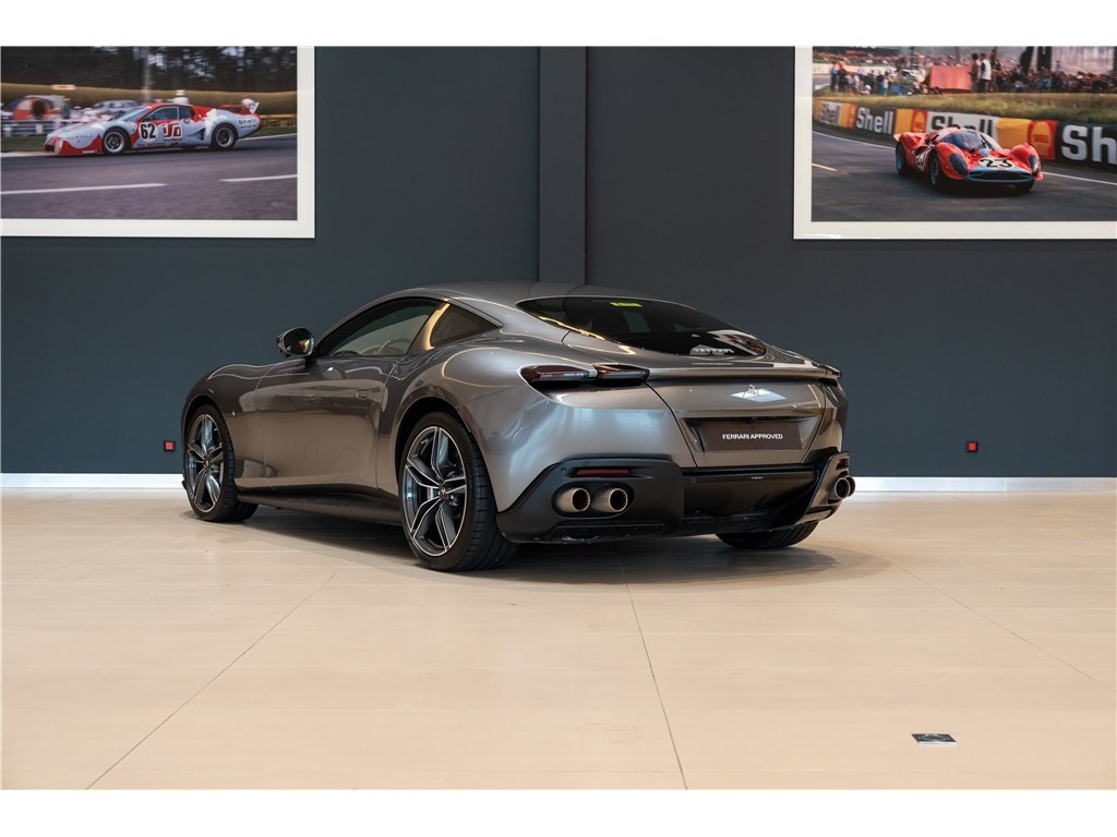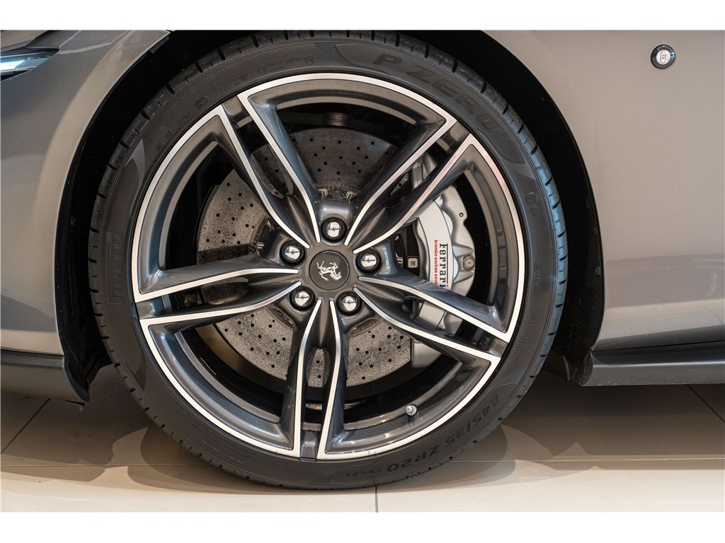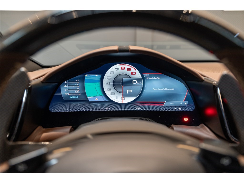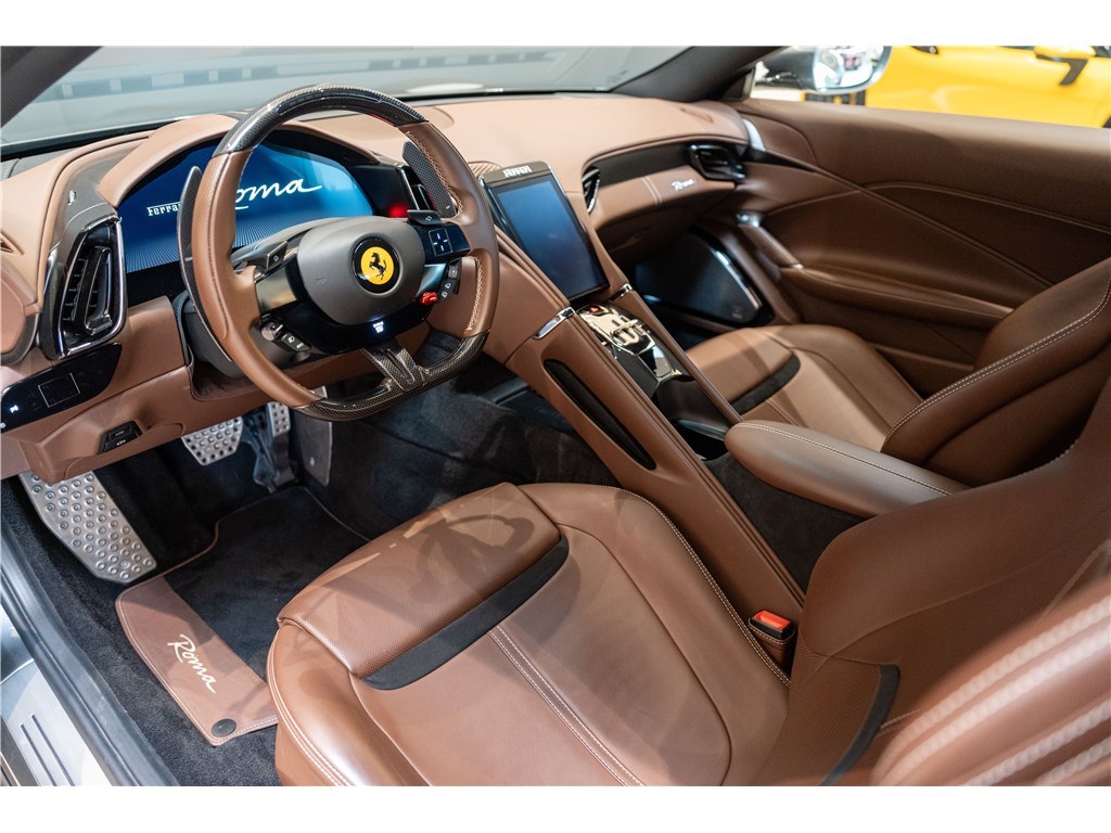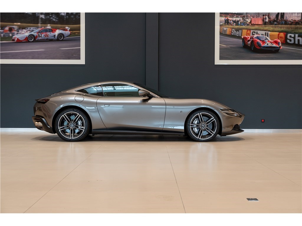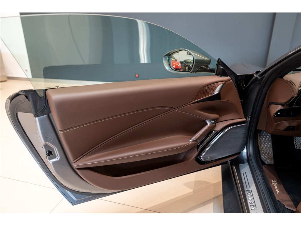 La Ferrari Roma est propulsée par un moteur V8 bi-turbo de 4,0 litres développant une puissance de 620 chevaux. Ce modèle présente son extérieur dans l’élégante teinte Grigio Ferro, et propose 2+2 places assises dans un habitacle luxueux dont l’intérieur est en cuir de couleur Cioccolato. La Roma est un modèle clé car elle incarne un retour à la « Dolce Vita », combinant le style élégant et minimaliste des GT classiques des années 50 et 60 à des performances de pointe, notamment l’introduction d’une nouvelle transmission à double embrayage à huit rapports.