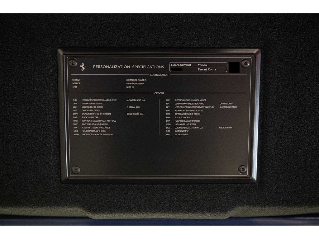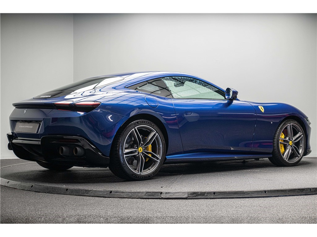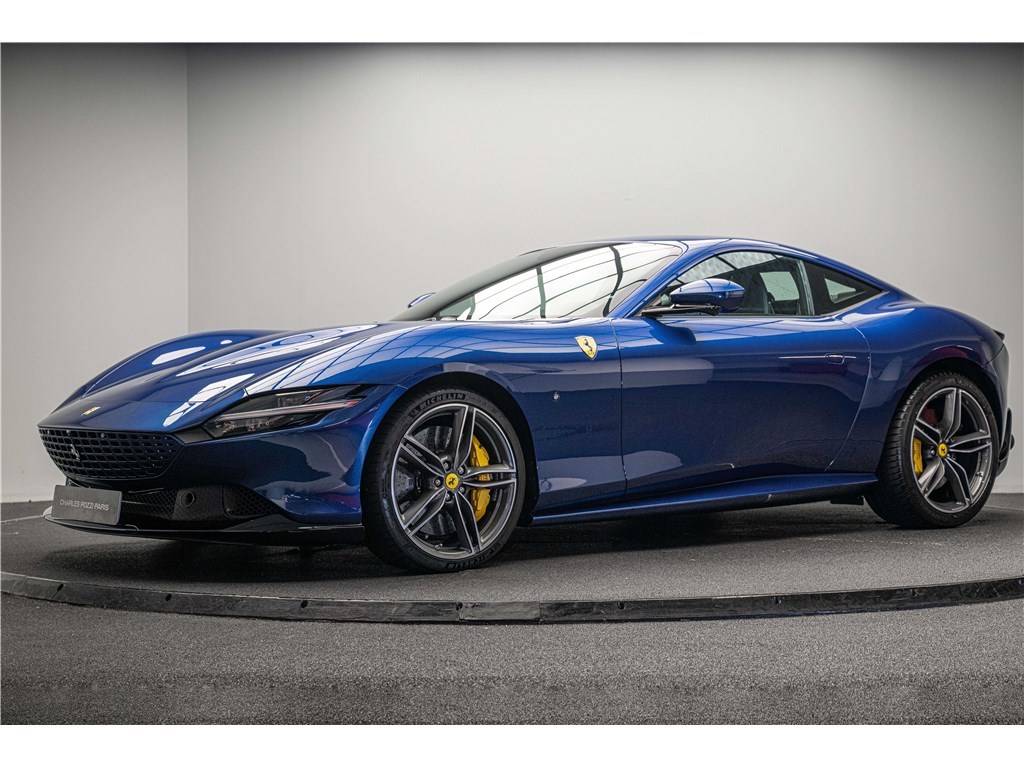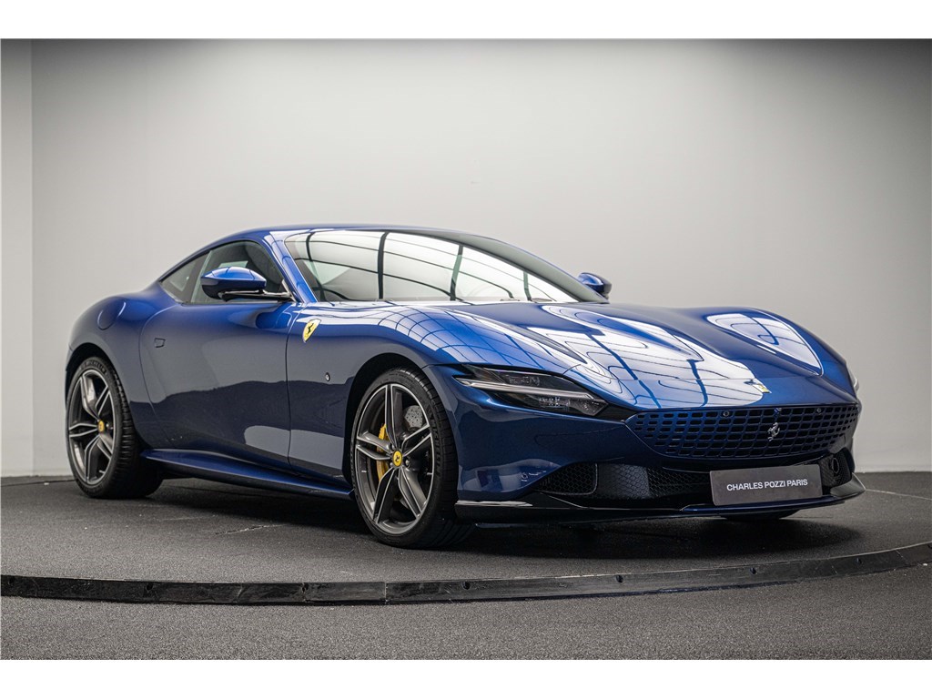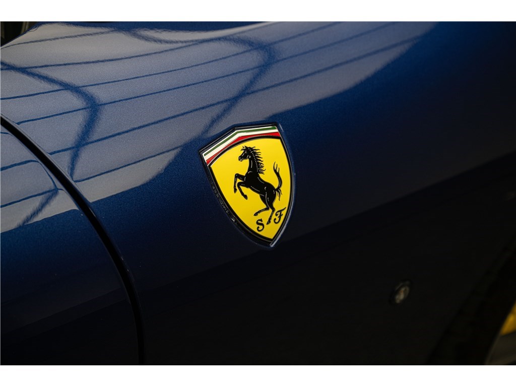 La Ferrari Roma est propulsée par un moteur V8 bi-turbo de 4,0 litres développant une puissance de 620 chevaux. Ce modèle présente son extérieur dans l’élégante teinte Bleu Tour de France, et propose deux plus deux places assises dans un habitacle luxueux dont l’intérieur est en cuir de couleur Bleu Sterling. La Roma est un modèle clé car elle incarne un retour à la « Dolce Vita », combinant le style élégant et minimaliste des GT classiques des années 50 et 60 à des performances de pointe, notamment l’introduction d’une nouvelle transmission à double embrayage à huit rapports.