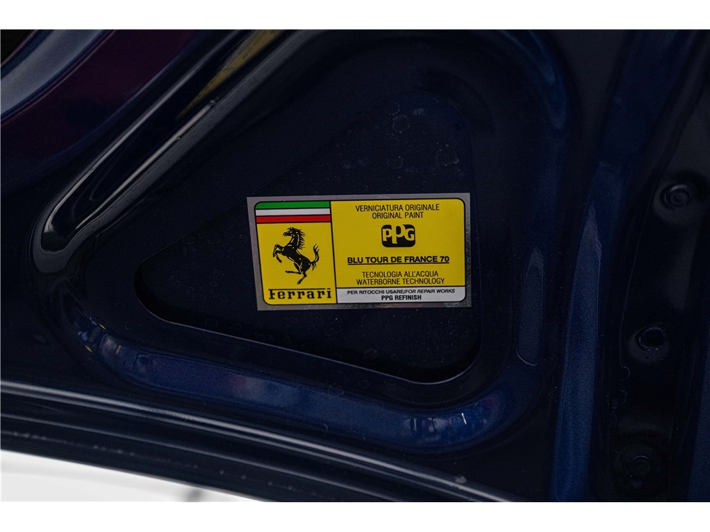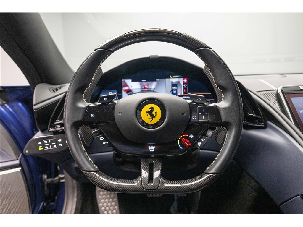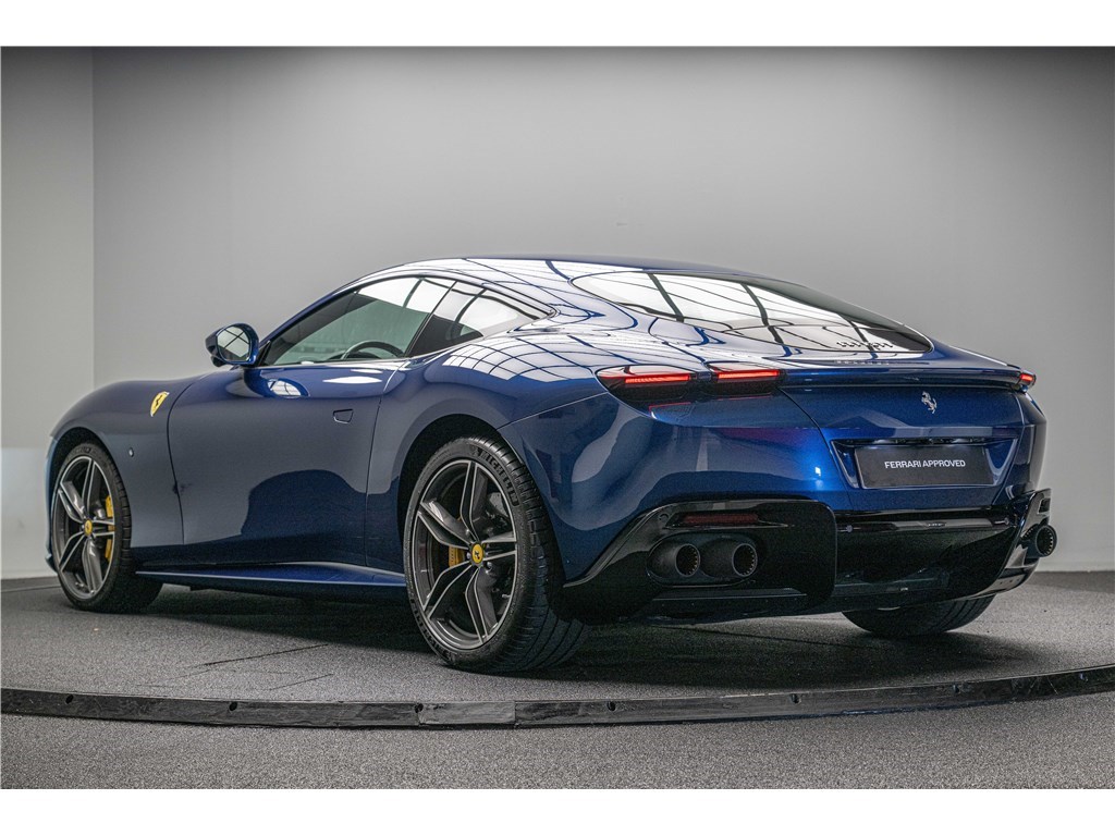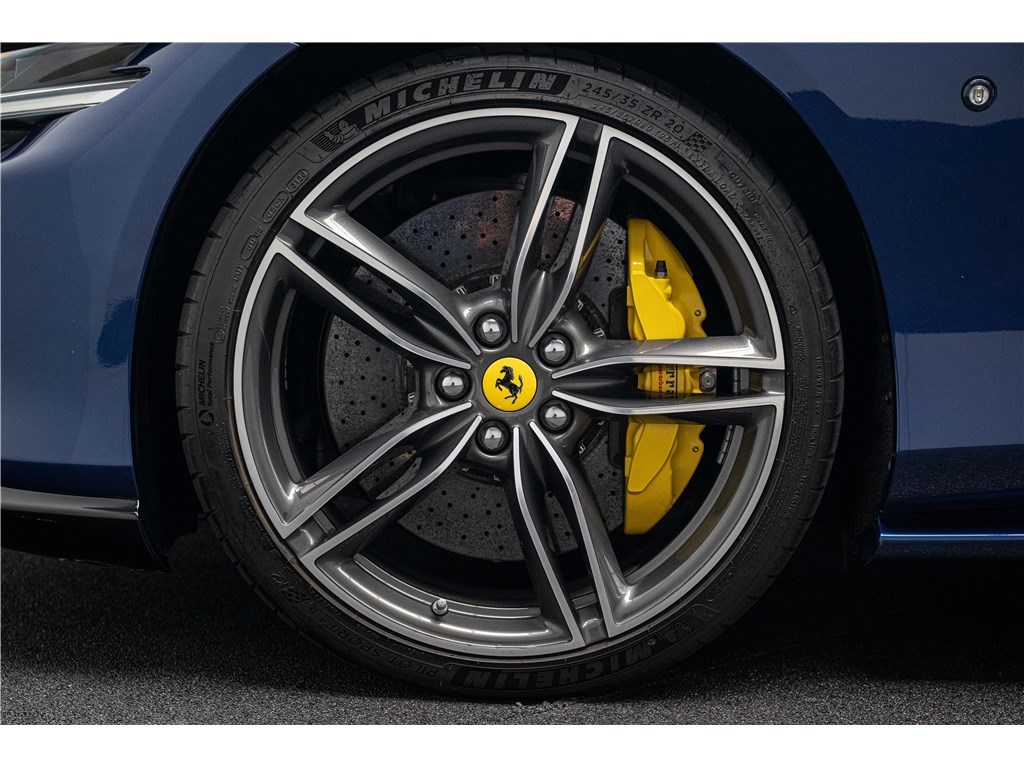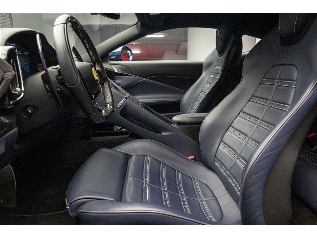 La Ferrari Roma est propulsée par un moteur V8 bi-turbo de 4,0 litres développant une puissance de 620 chevaux. Ce modèle présente son extérieur dans l’élégante teinte Bleu Tour de France, et propose deux plus deux places assises dans un habitacle luxueux dont l’intérieur est en cuir de couleur Bleu Sterling. La Roma est un modèle clé car elle incarne un retour à la « Dolce Vita », combinant le style élégant et minimaliste des GT classiques des années 50 et 60 à des performances de pointe, notamment l’introduction d’une nouvelle transmission à double embrayage à huit rapports.