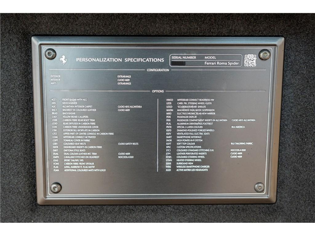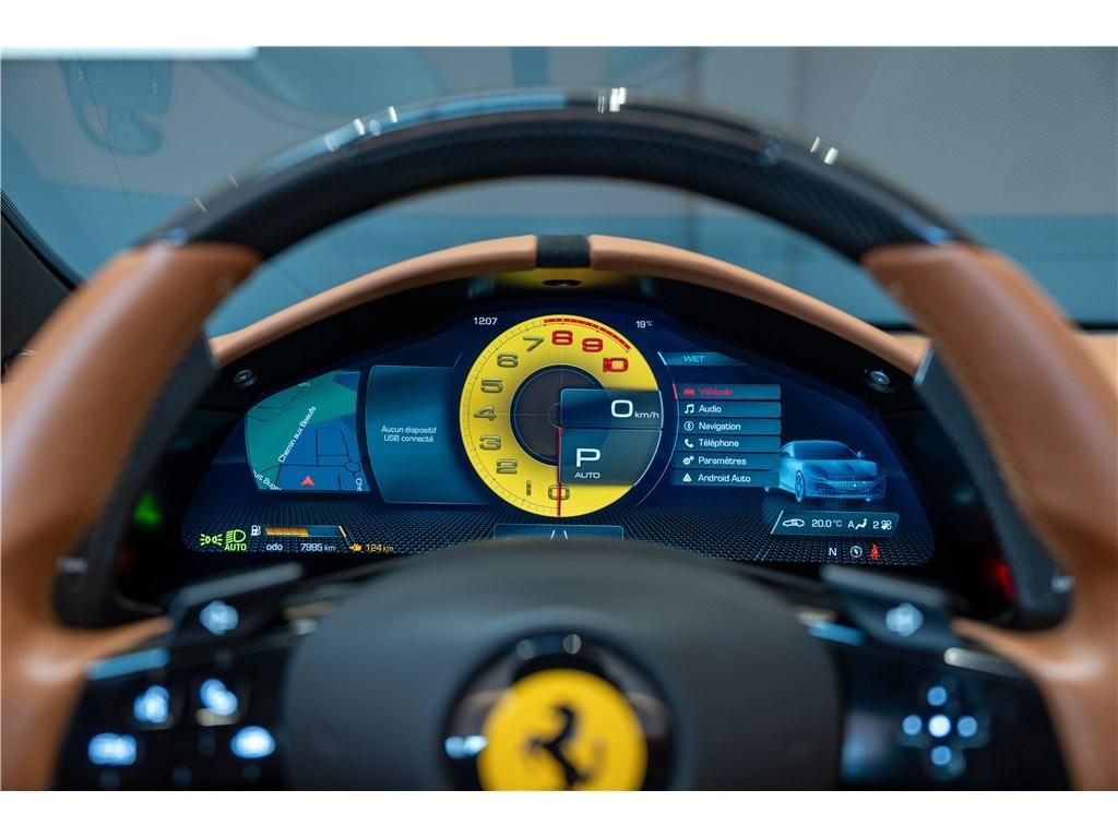 Certainement l’une des Roma Spider les plus désirables du marché avec une liste d’options très impressionnante. On peut noter la peinture spéciale Blu America contrastée par un intérieur Cuoio du plus bel effet ainsi que les nombreux habillages en carbone. Il s’agit d’une première main immatriculée en France, avec le malus écologique réglé intégralement protégée par un film de protection.