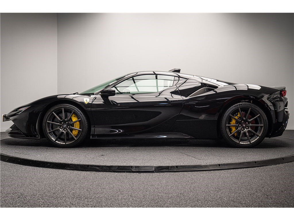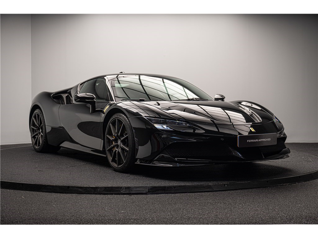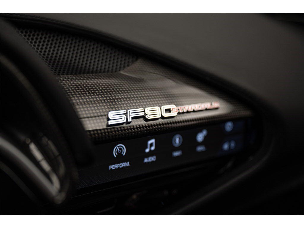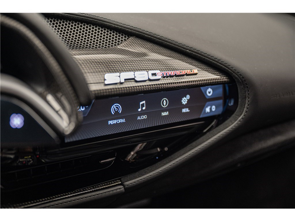 La Ferrari SF90 Stradale est animée par un système hybride rechargeable (PHEV) combinant un moteur V8 bi-turbo de 4,0 litres développant 780 chevaux avec trois moteurs électriques pour une puissance cumulée de 1000 ch. Ce modèle présente son extérieur dans l’élégante teinte de Noir opaque Nero DS, et propose deux places assises dans un habitacle sportif dont l’intérieur est également de couleur Nero. La SF90 Stradale est un modèle historique car elle est la première Ferrari de série de son histoire à être équipée d’une architecture hybride rechargeable et d’une transmission intégrale, tout en étant, à son lancement, la Ferrari de route la plus puissante jamais produite. De plus, Ferrari est le seul constructeur à proposer un programme de garantie hybride étendu couvrant le remplacement de la batterie haute tension, offrant une tranquillité d’esprit prolongée à ses propriétaires.