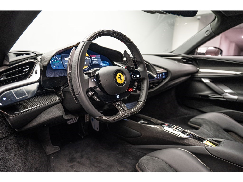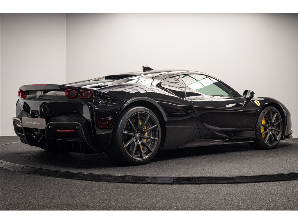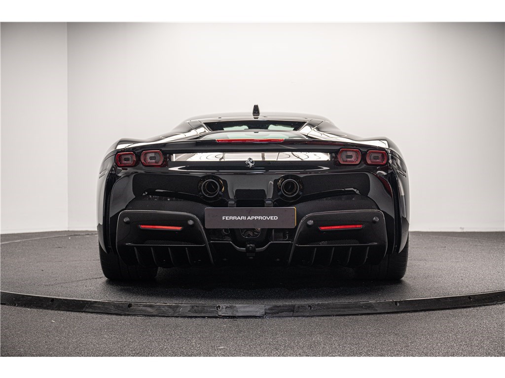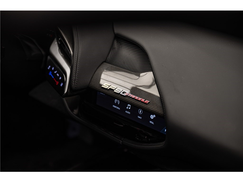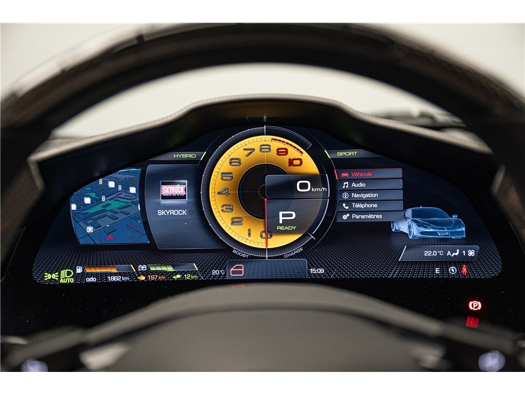 La Ferrari SF90 Stradale est animée par un système hybride rechargeable (PHEV) combinant un moteur V8 bi-turbo de 4,0 litres développant 780 chevaux avec trois moteurs électriques pour une puissance cumulée de 1000 ch. Ce modèle présente son extérieur dans l’élégante teinte de Noir opaque Nero DS, et propose deux places assises dans un habitacle sportif dont l’intérieur est également de couleur Nero. La SF90 Stradale est un modèle historique car elle est la première Ferrari de série de son histoire à être équipée d’une architecture hybride rechargeable et d’une transmission intégrale, tout en étant, à son lancement, la Ferrari de route la plus puissante jamais produite. De plus, Ferrari est le seul constructeur à proposer un programme de garantie hybride étendu couvrant le remplacement de la batterie haute tension, offrant une tranquillité d’esprit prolongée à ses propriétaires.