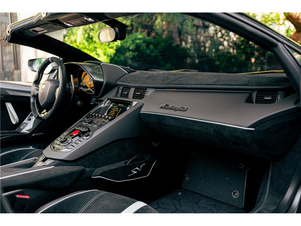 Le sigle exclusif SV de Lamborghini, pour Super Veloce, est apparu sur la légendaire Miura. L’Aventador SV Roadster, limitée à 500 exemplaires seulement, gagne 50 chevaux par rapport à une Aventador classique, et un look encore plus radical. Notre exemplaire Bianco Isis ne totalise que 8 900 km.