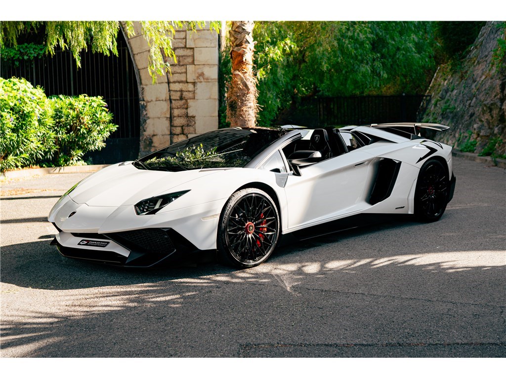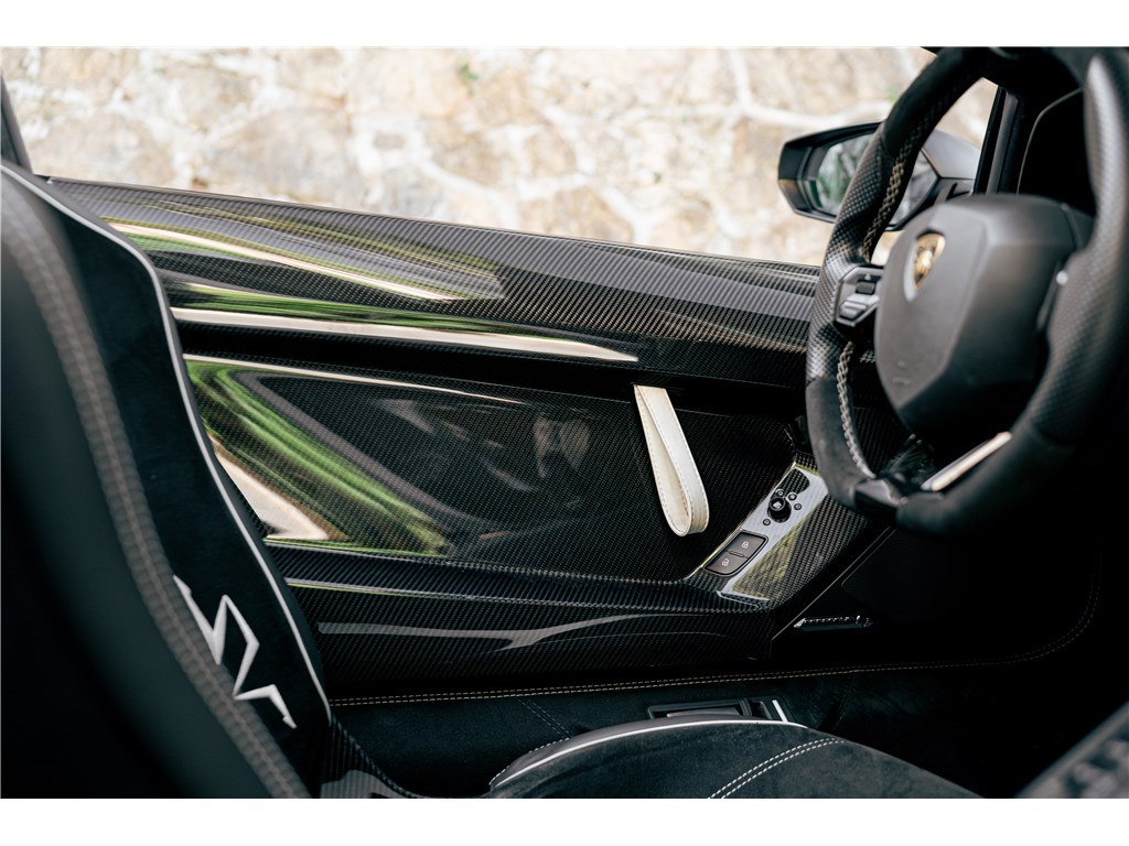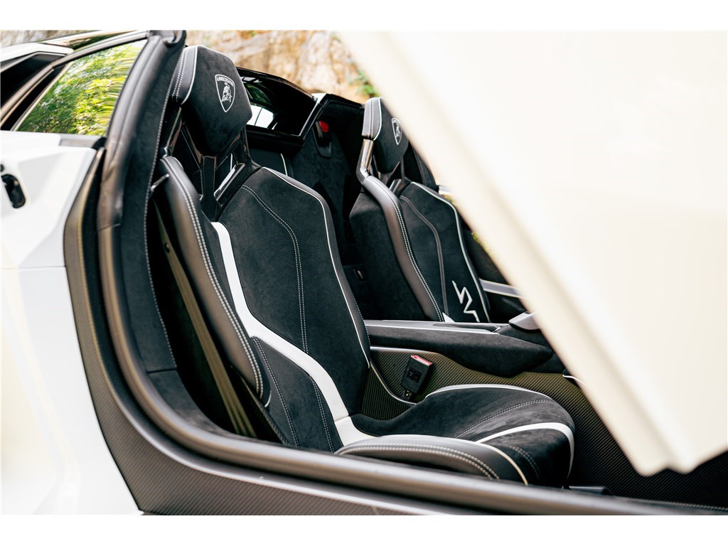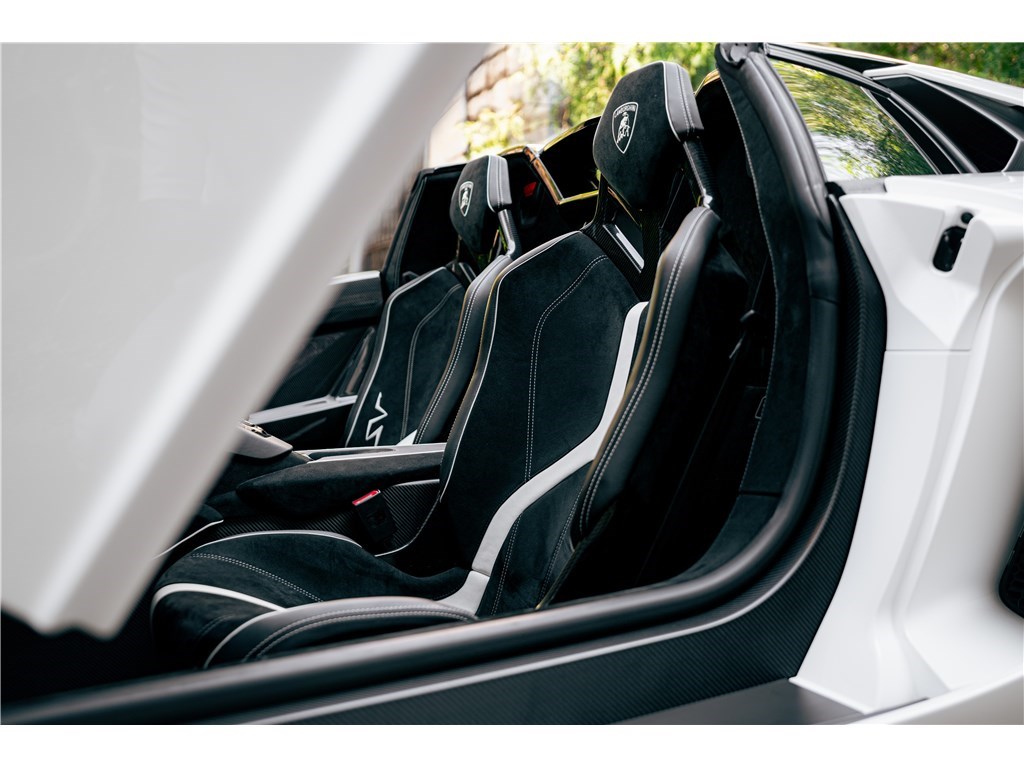 Le sigle exclusif SV de Lamborghini, pour Super Veloce, est apparu sur la légendaire Miura. L’Aventador SV Roadster, limitée à 500 exemplaires seulement, gagne 50 chevaux par rapport à une Aventador classique, et un look encore plus radical. Notre exemplaire Bianco Isis ne totalise que 8 900 km.