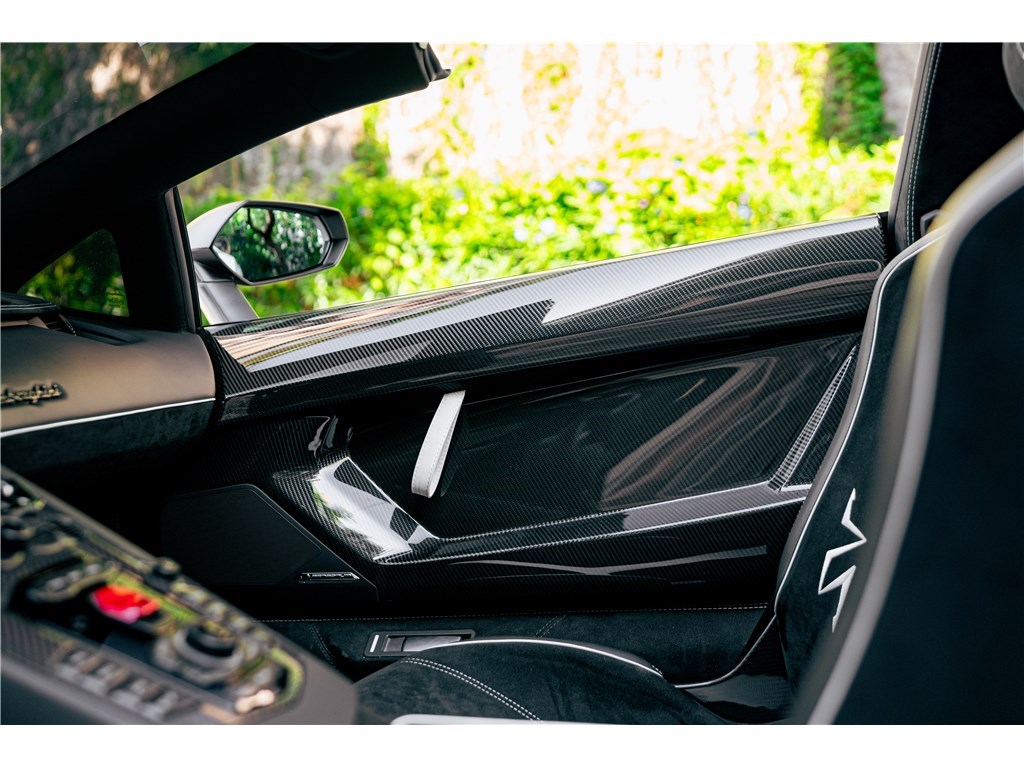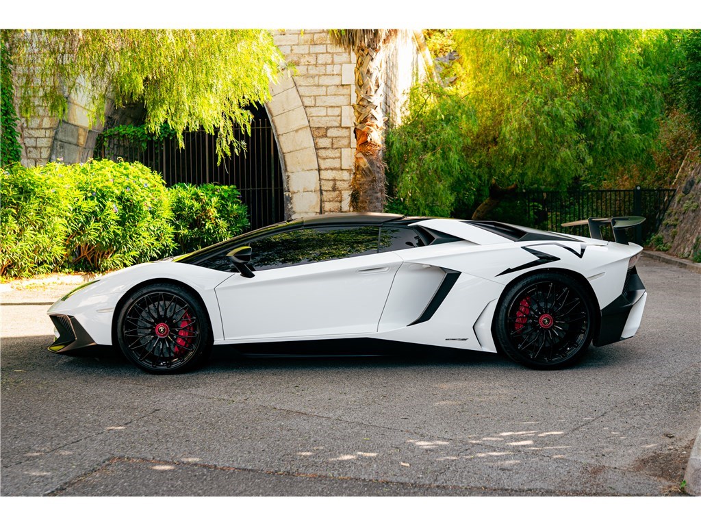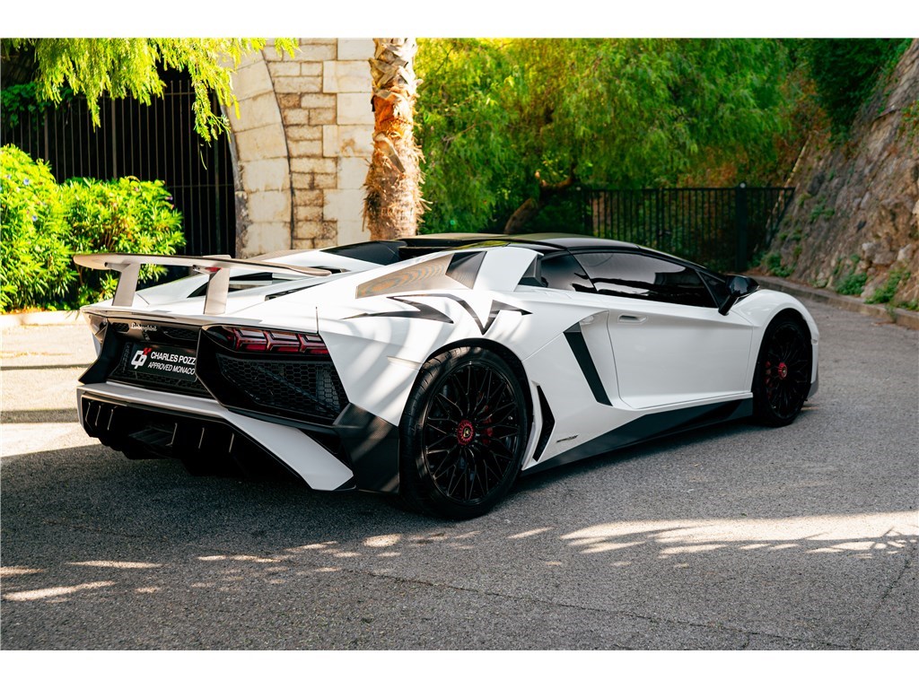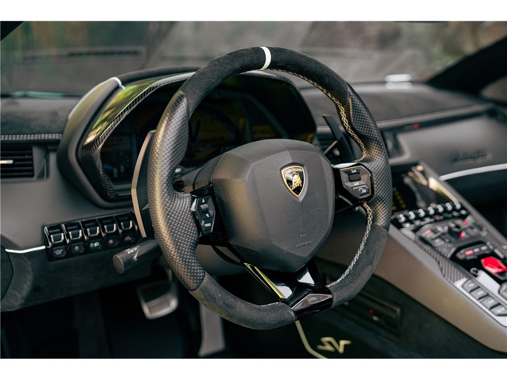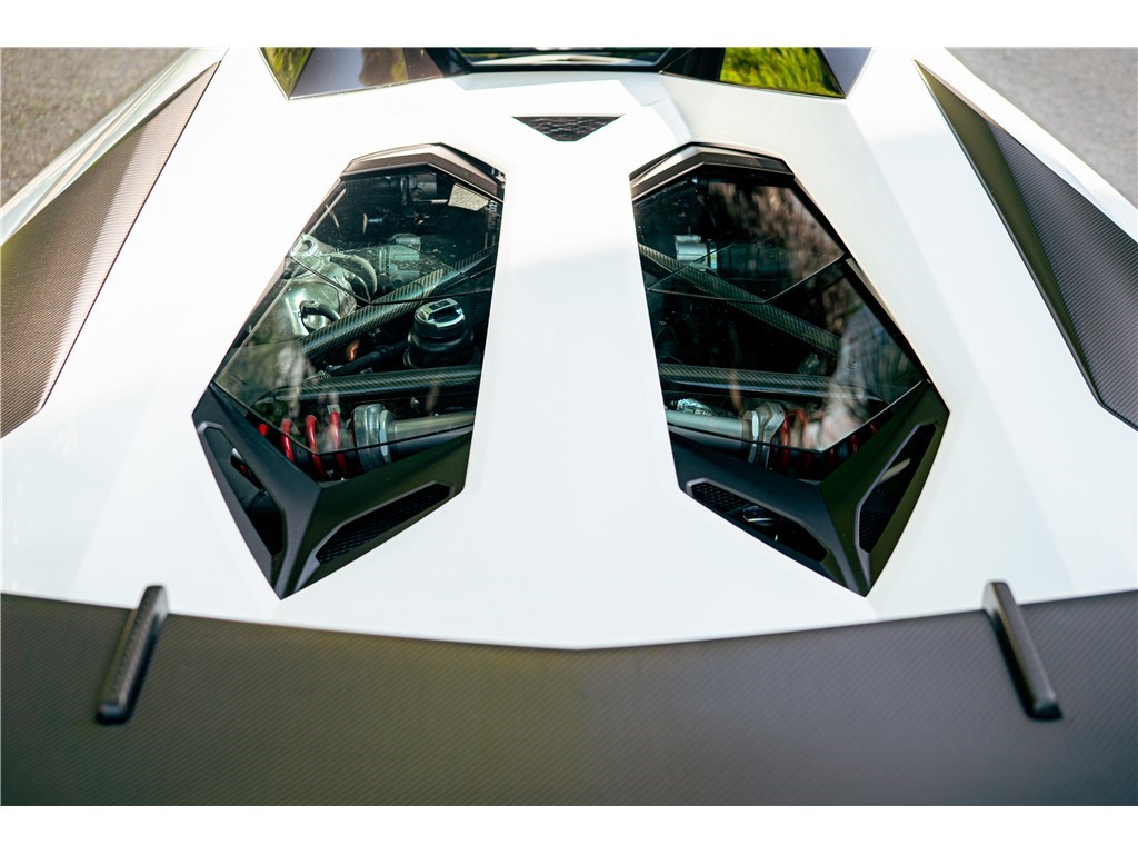 Le sigle exclusif SV de Lamborghini, pour Super Veloce, est apparu sur la légendaire Miura. L’Aventador SV Roadster, limitée à 500 exemplaires seulement, gagne 50 chevaux par rapport à une Aventador classique, et un look encore plus radical. Notre exemplaire Bianco Isis ne totalise que 8 900 km.