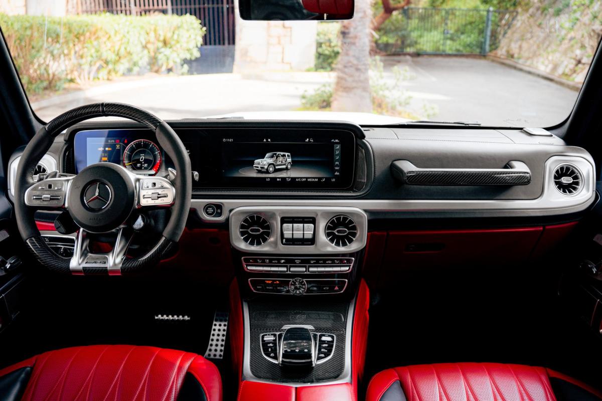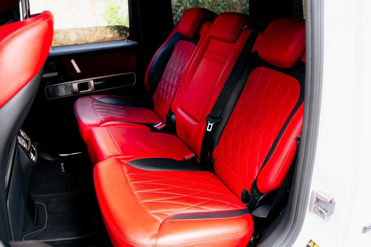 Ce Mercedes-AMG G63 de 2019 est présenté dans une élégante configuration blanc avec intérieur rouge, cet exemplaire totalise 53 000 km et se trouve dans un excellent état général.