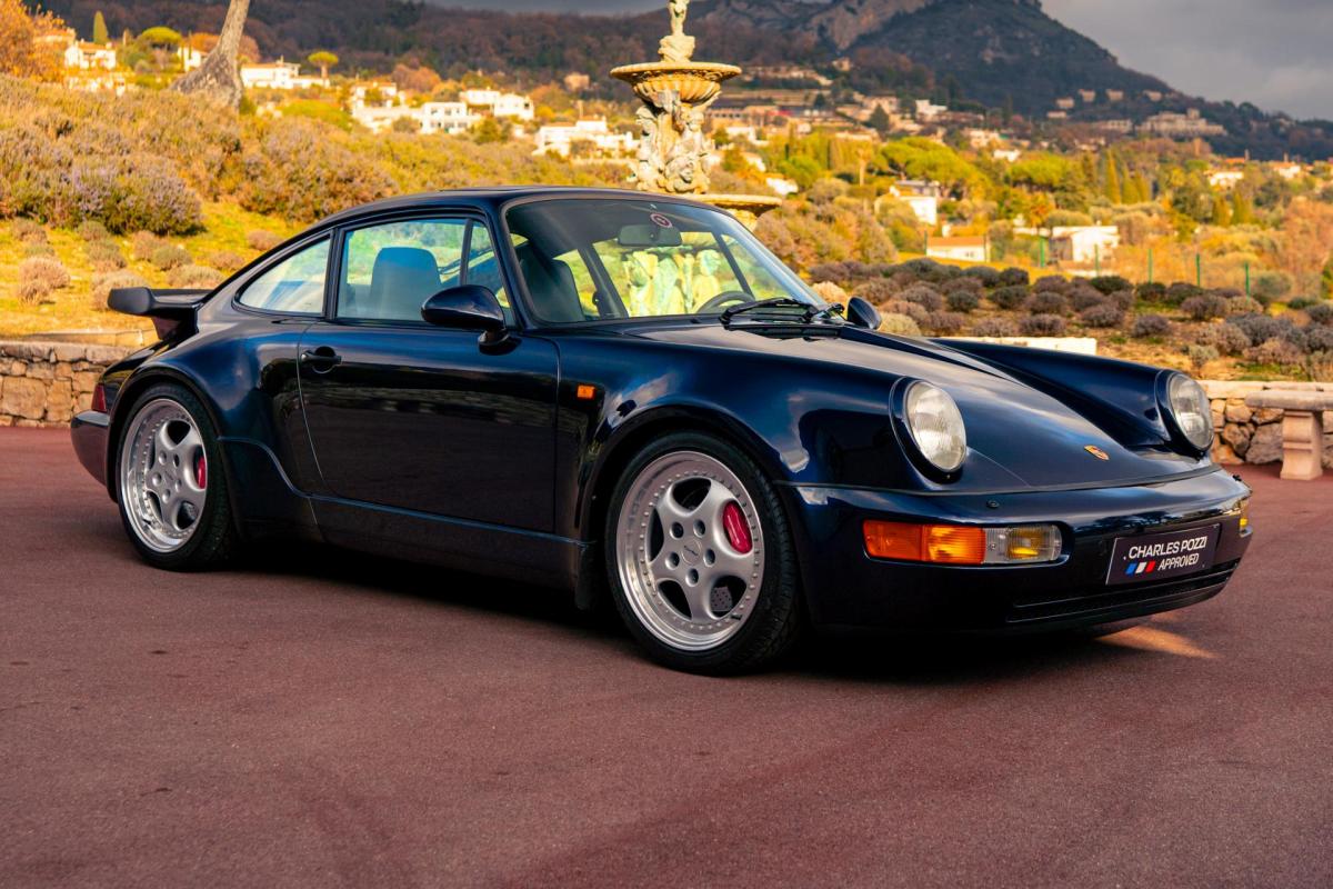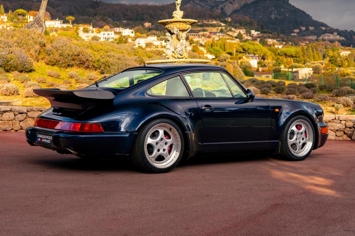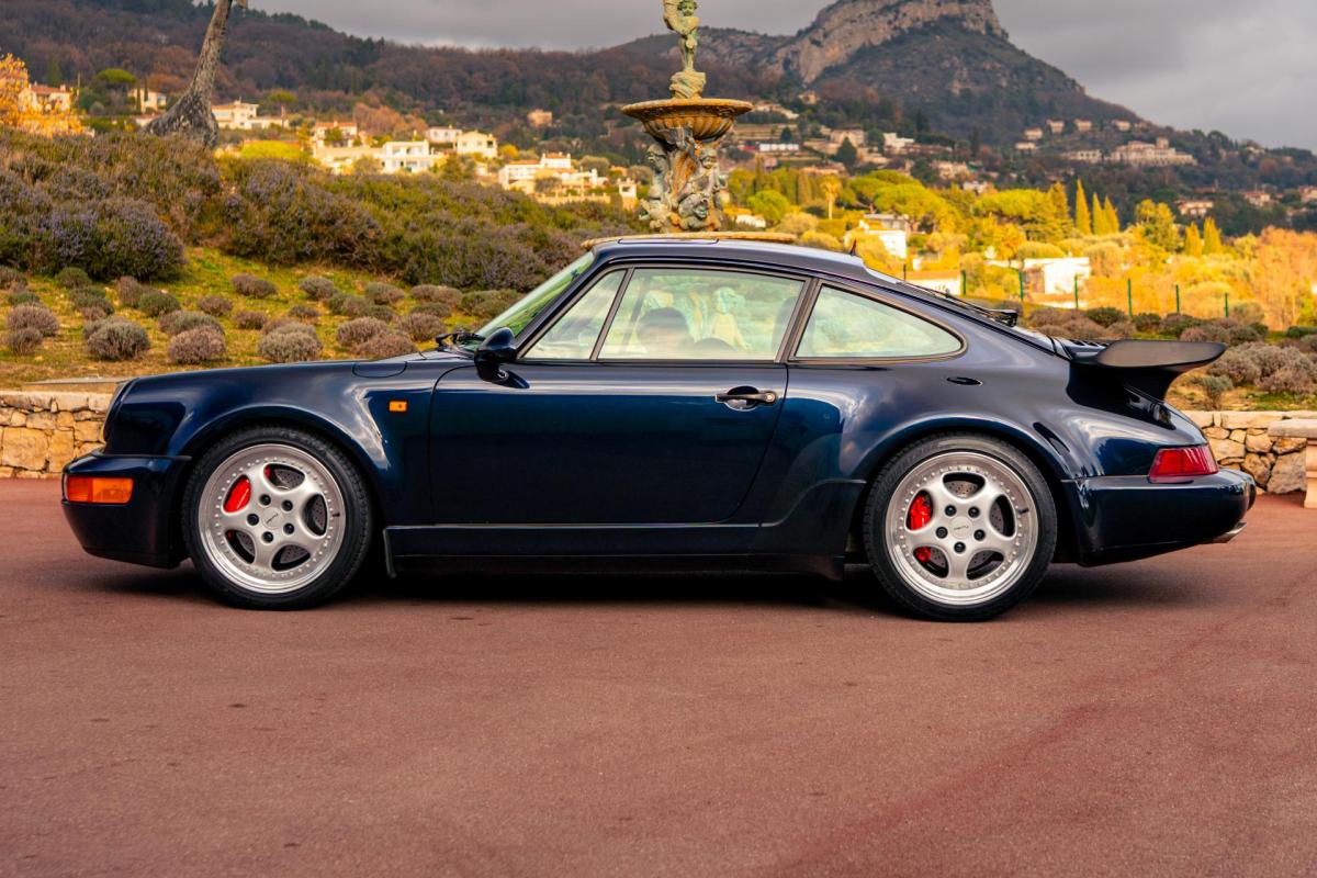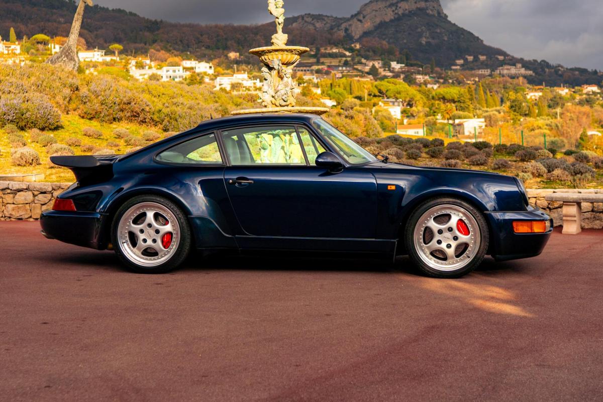 La Porsche 911 Type 965 Turbo 3.6 (1993) représente l’une des générations les plus iconiques de la 911 Turbo, très recherchée par les collectionneurs. Cet exemplaire arbore un extérieur bleu clair associé à un intérieur gris, avec un kilométrage de 45 000 km qui témoigne d’un usage limité pour un véhicule de cet âge. Le moteur flat-6 turbo de 3.6 litres développe des performances marquantes tout en conservant le caractère mécanique brut qui a fait la réputation des premières 911 Turbo des années 90.
