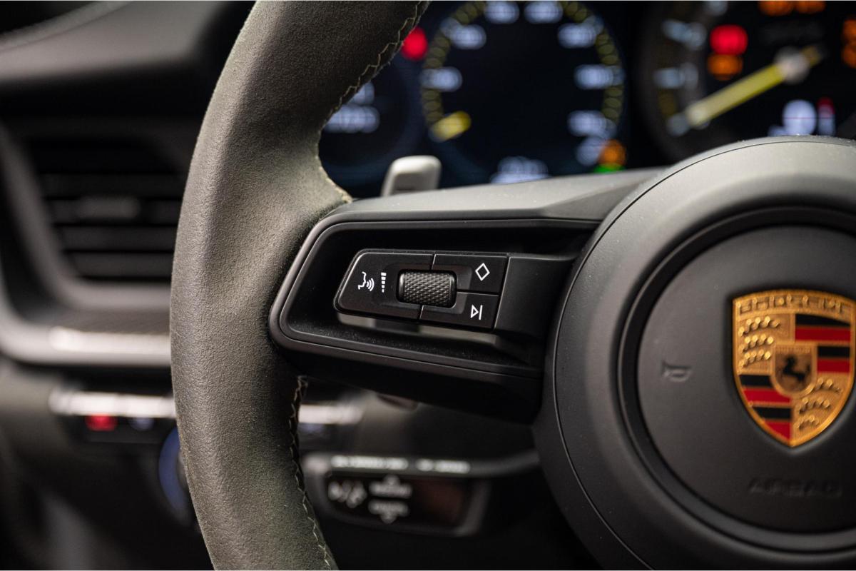 La Porsche 911 GT3 Type 992 4.0 510 ch PDK (2021) est une sportive radicale pensée pour la performance pure. Avec un extérieur gris et un intérieur noir sportif, cet exemplaire affiche 20 250 km et reste en très bon état. Son moteur 6 cylindres à plat atmosphérique de 4.0 litres développe 510 chevaux avec des montées en régime spectaculaires. La boîte PDK assure des passages de rapports très rapides, tandis que le châssis GT3, l’échappement sport et l’aérodynamique optimisée renforcent les sensations de pilotage. Cette configuration inclut l’assistance parking avec caméra 360°, le système audio BOSE, le pack Club Sport, les sièges baquets carbone et le pack Sport Chrono.