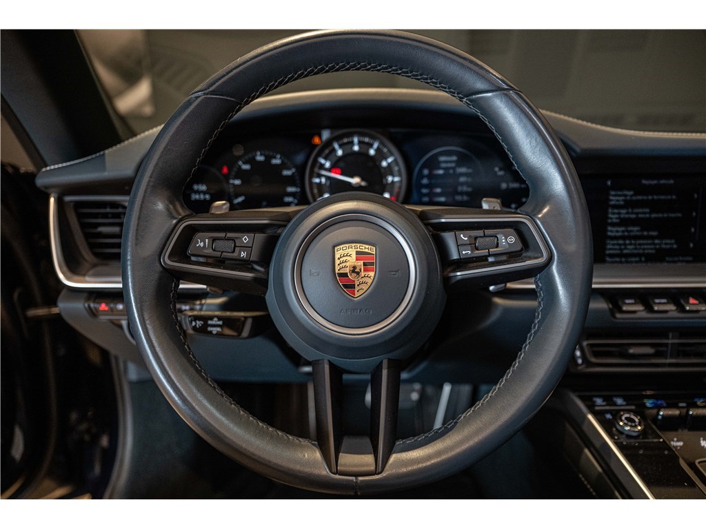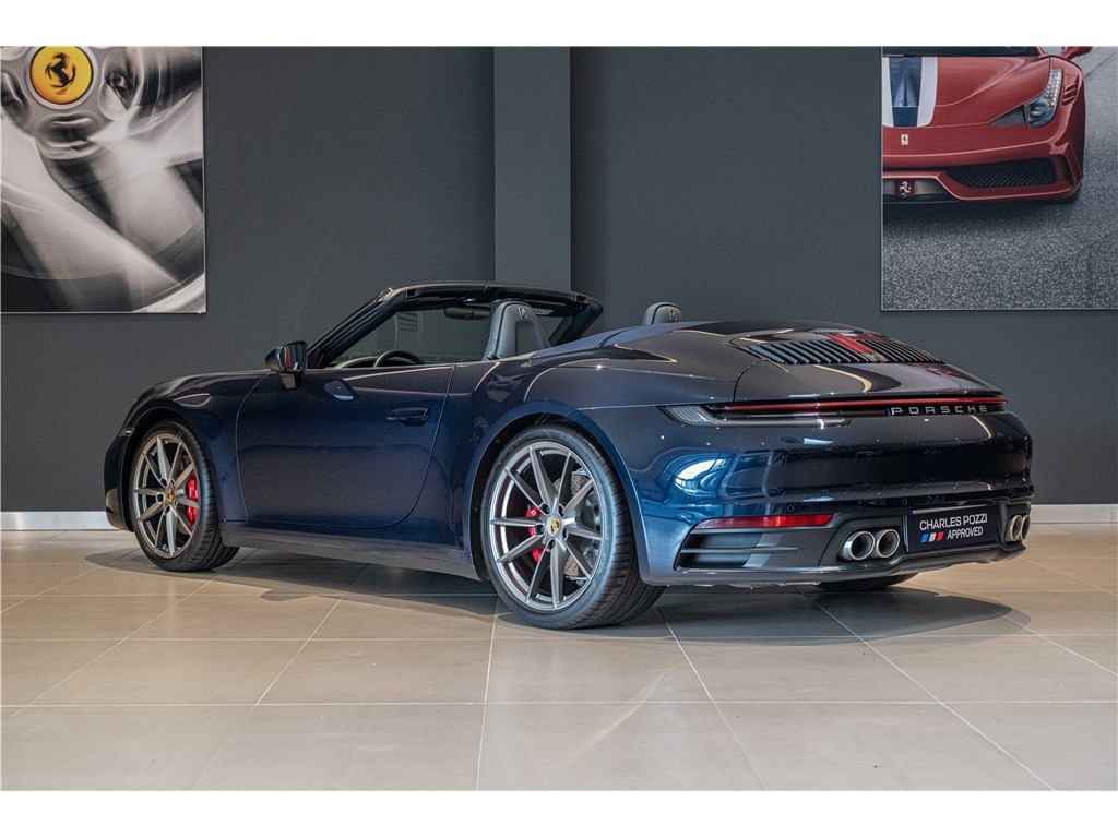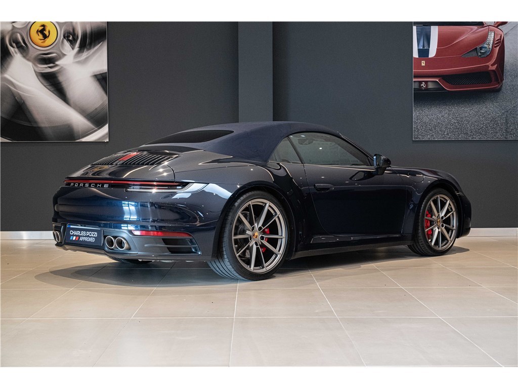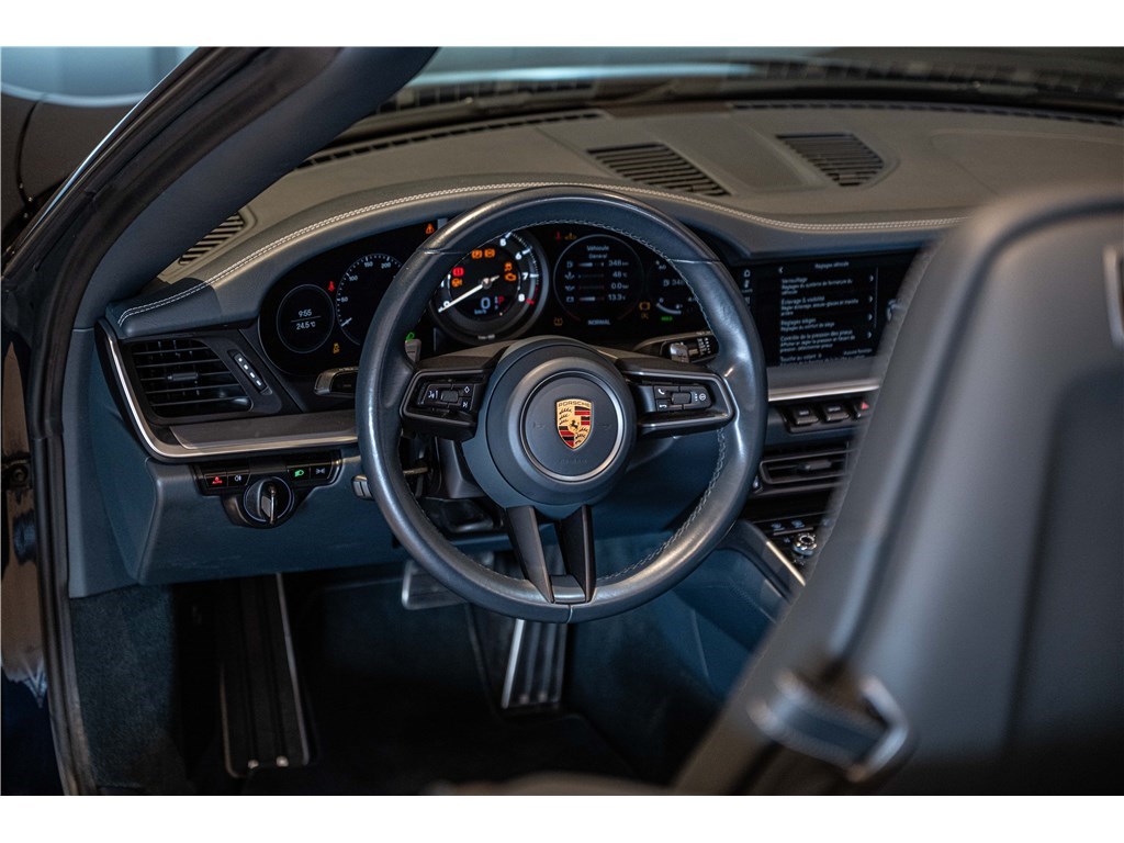 La Porsche 911 Carrera Cabriolet 992 (2019) offre une expérience de conduite sportive avec son moteur 3.0L de 450 ch et sa boîte PDK. Affichant 60 000 km, elle séduit par sa livrée Bleu Nuit métallisé et son intérieur cuir bleu graphite. Ce cabriolet 2 portes est équipé d’options premium comme l’assistance au changement de voie, le système audio BOSE et les sièges avant chauffants. Disponible chez Charles Pozzi Lille, livraison possible partout en France.