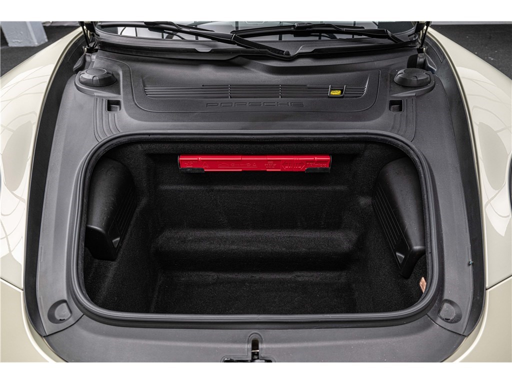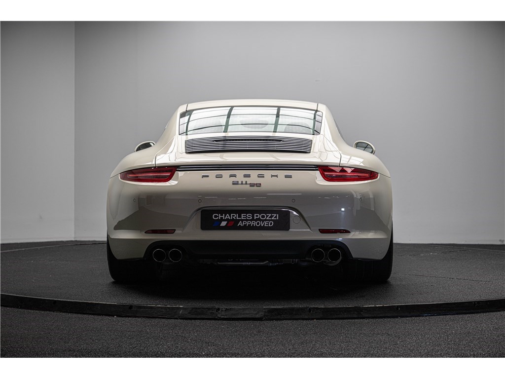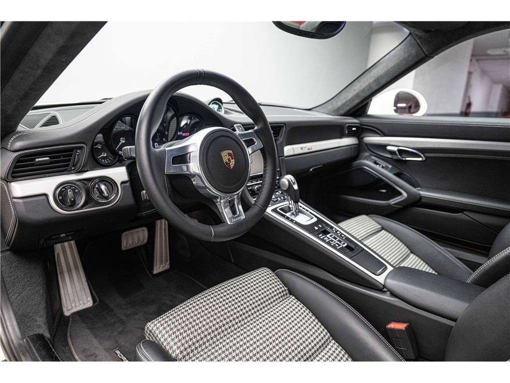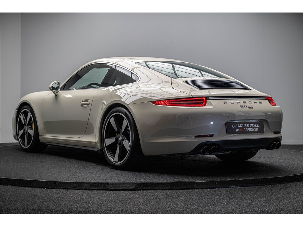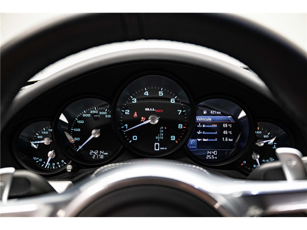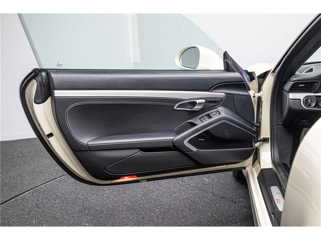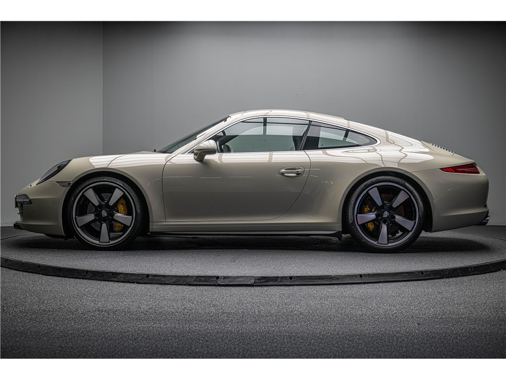 Coloris spécifique, jantes Fuchs 20’’, intérieur en cuir noir et tissu « Pepita », badges chromés « 911 50 », Pack Sport Chrono, échappement sport, PASM abaissé, et flat-6 de 400 ch couplé à la boîte PDK.