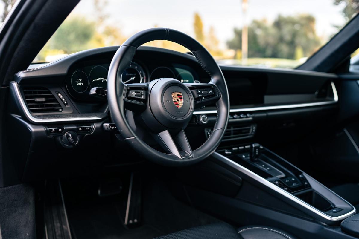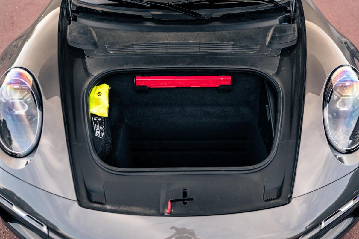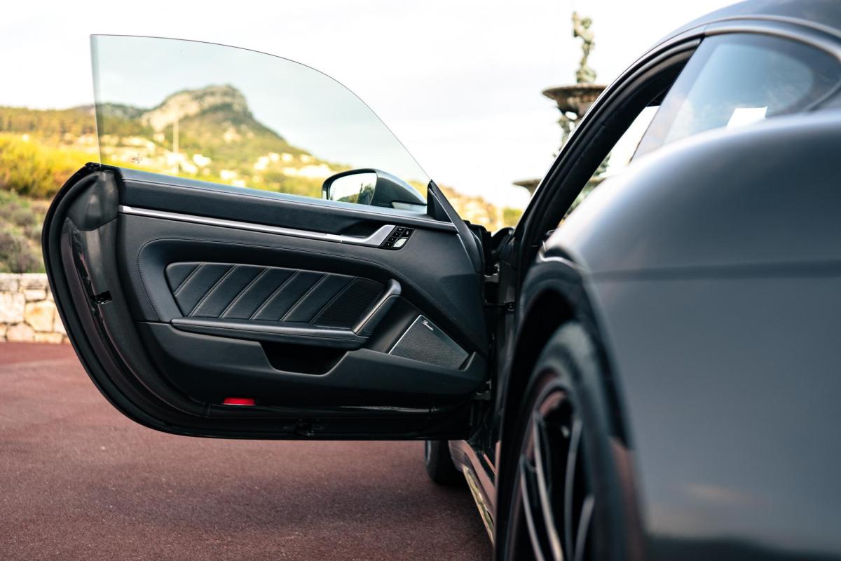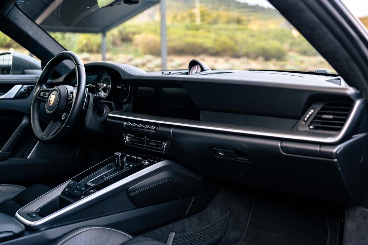Cette configuration est très complète avec l’assistance parking 360°, le système audio Burmester High-End, le pack luminosité, les sièges avant chauffants et le châssis PASM abaissé de 10 mm. On retrouve aussi le régulateur adaptatif, les phares matriciels PDLS+ et l’échappement sport pour renforcer le caractère de cette Turbo S.