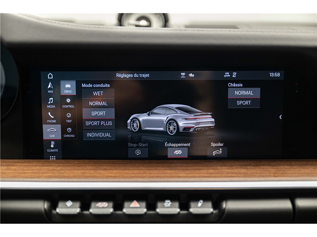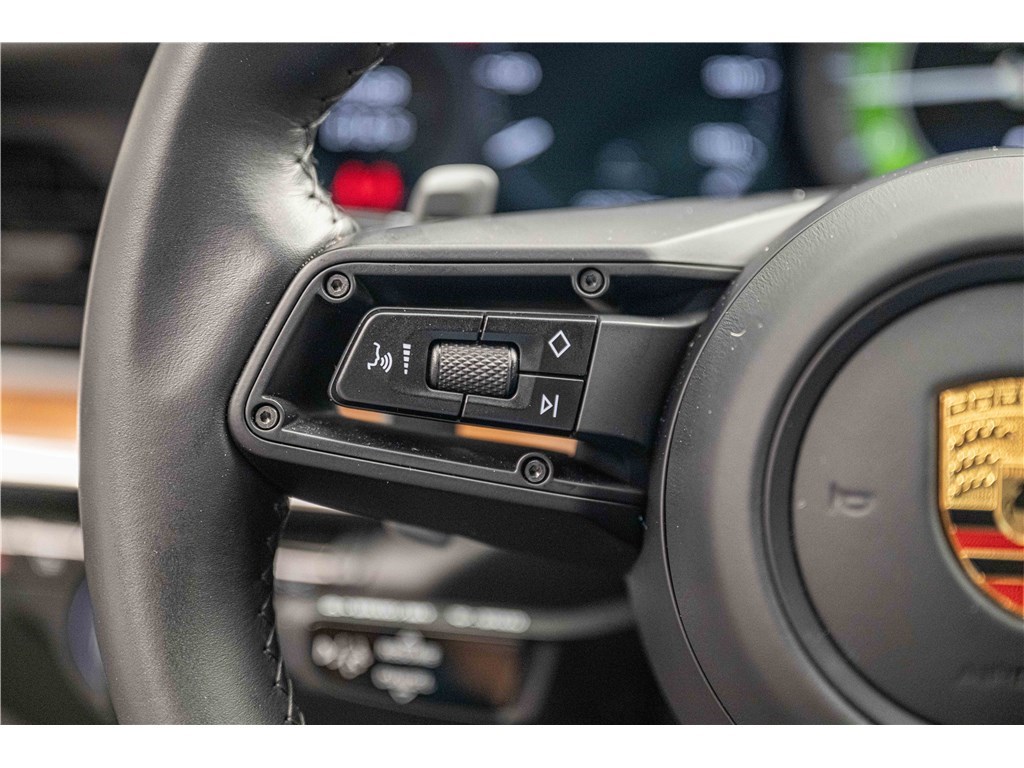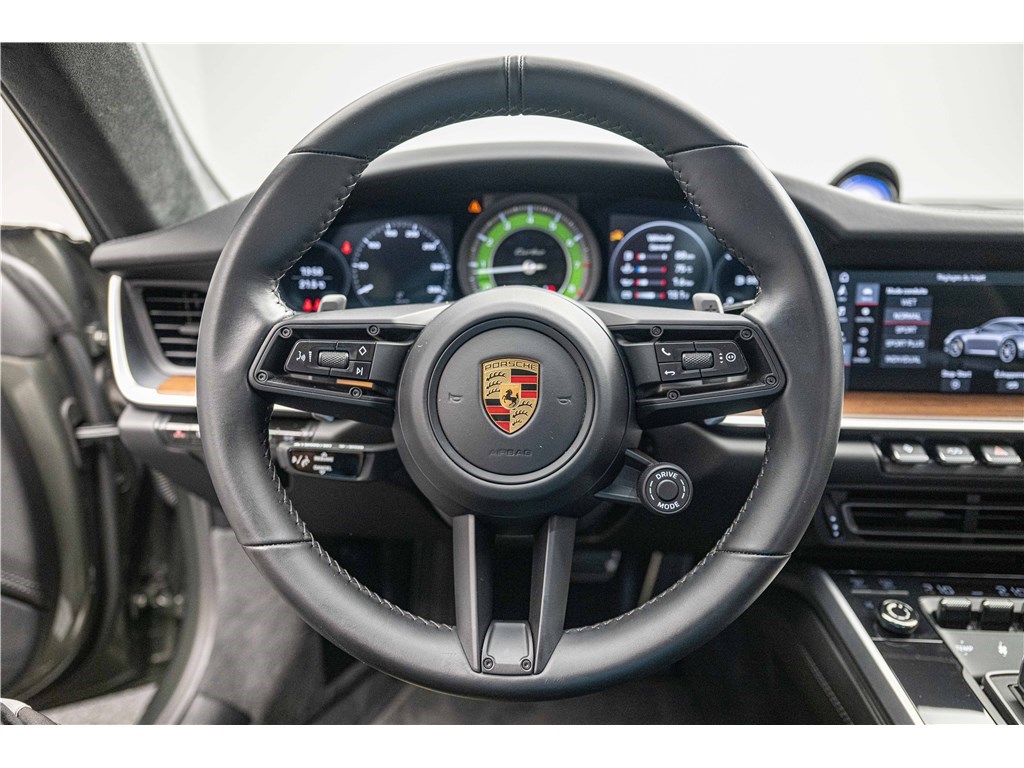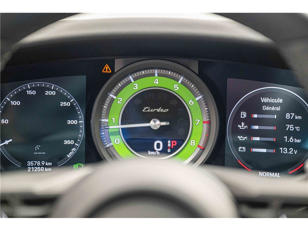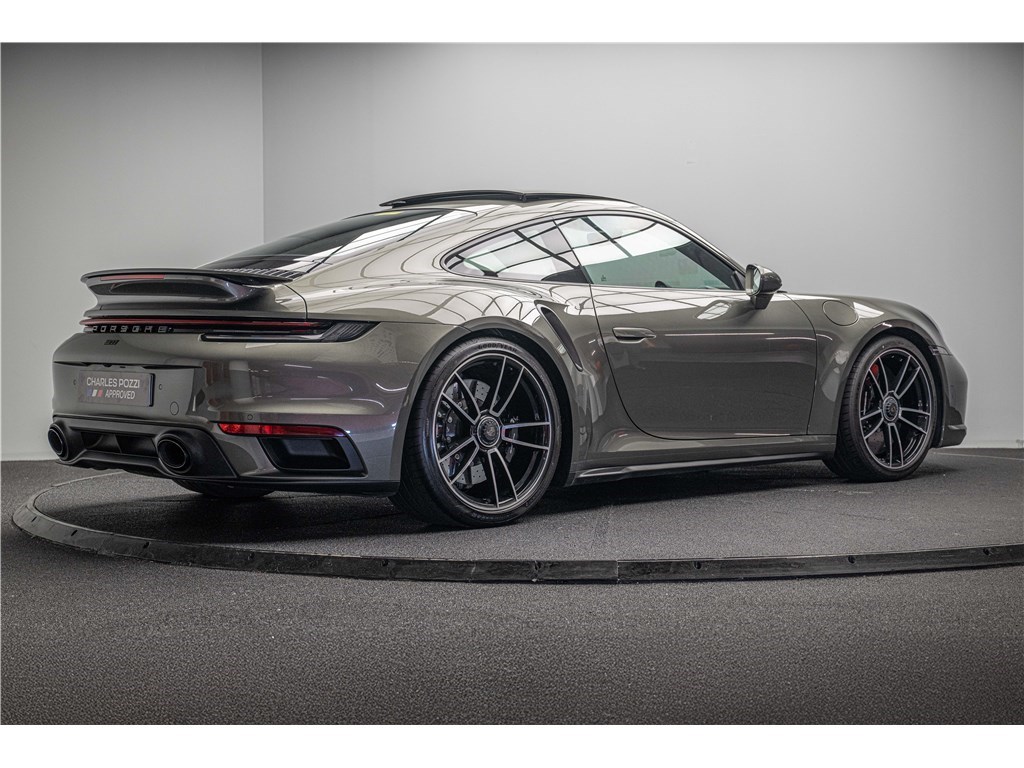 Porsche 911 Type 992 Coupé 3.8i 580 ch PDK (2021) avec 21 500 km. Ce modèle à la teinte Vert Aventurine métallisé et intérieur cuir/tissus Sport Tex noir offre un confort haut de gamme avec sièges sport adaptatifs électriques, chauffage, toit coulissant électrique et systèmes avancés comme PDLS+, PASM, PCCB et échappement sport noir. Garantie WTW 12 mois incluse. Disponible chez Charles Pozzi Paris, livraison partout en France.
