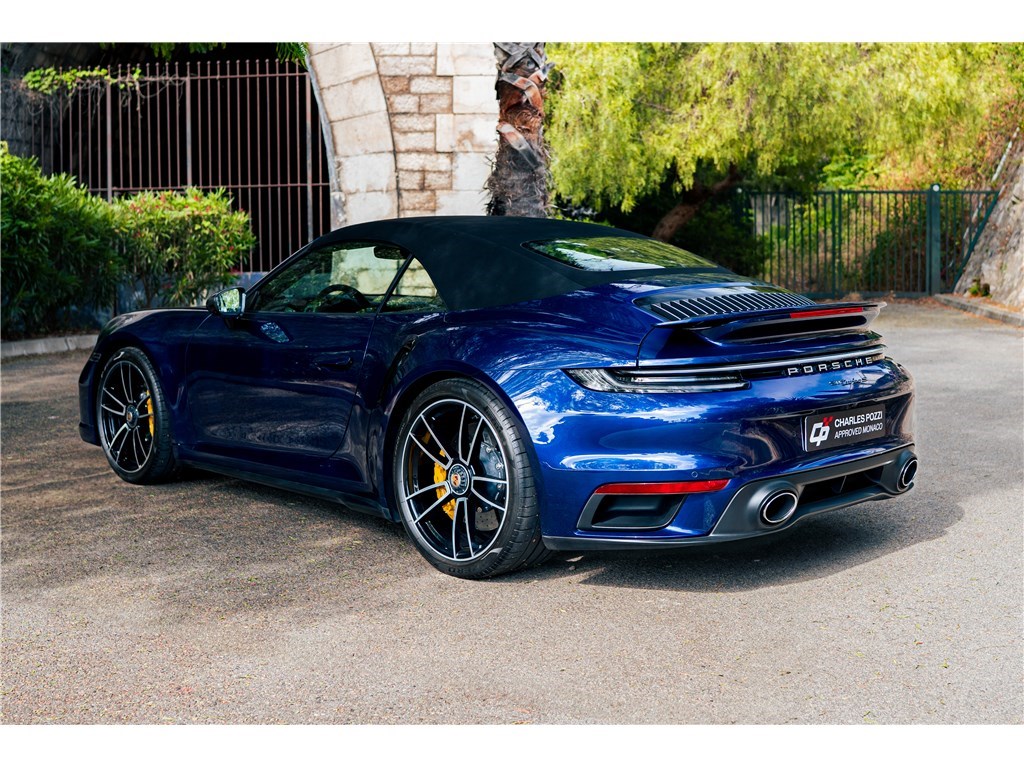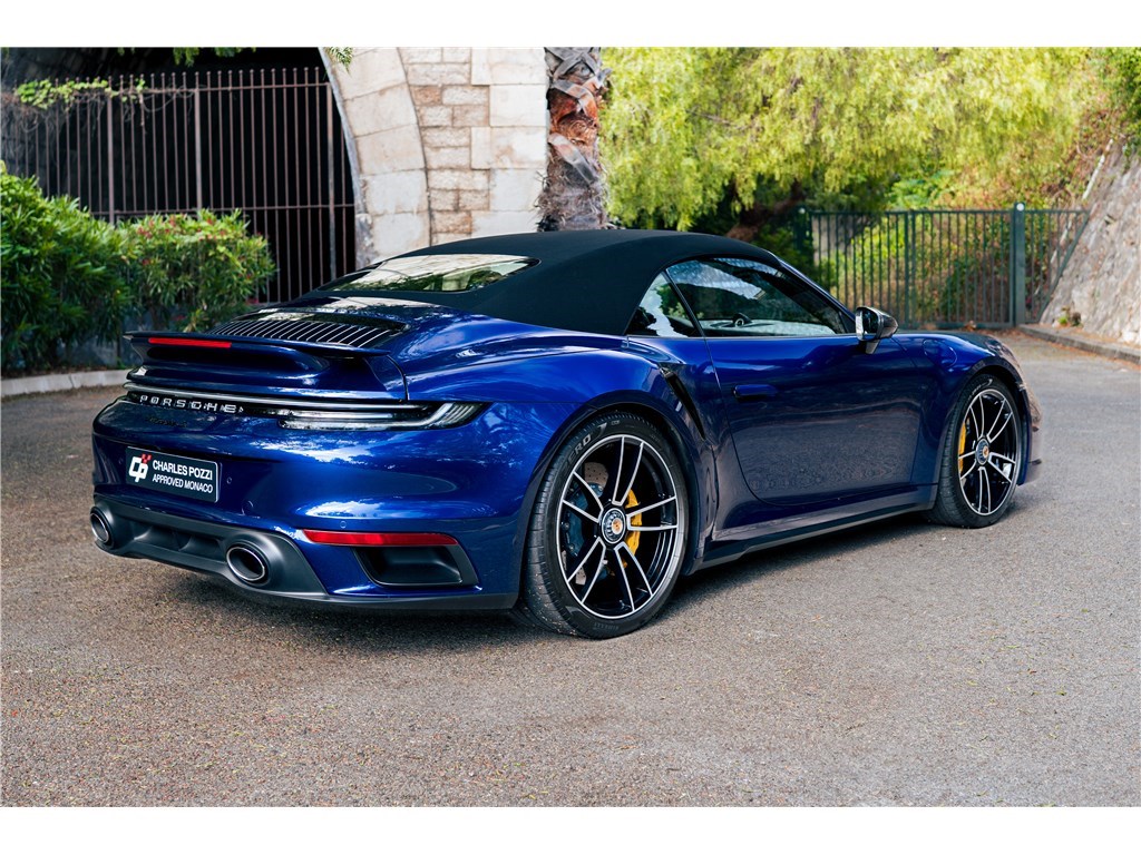 La Porsche 911 Turbo S Cabriolet 992 (2020) offre une puissance exceptionnelle avec son moteur 3.8L de 650 ch et sa transmission PDK. Affichant 21 050 km, ce cabriolet 2 portes se distingue par sa couleur Bleu Gentiane métallisé et son intérieur cuir noir intégral. Dotée d’équipements haut de gamme, elle allie performance et élégance. Disponible chez Charles Pozzi Monaco. Le Malus écologique de 12 500 euros n’est pas inclus.