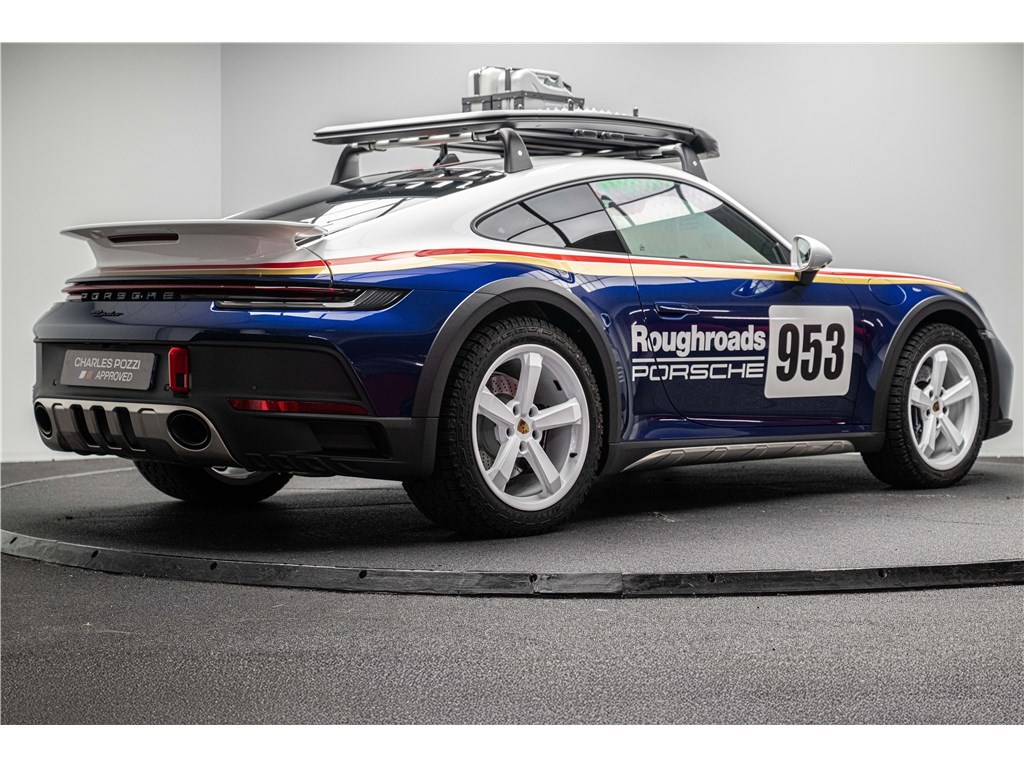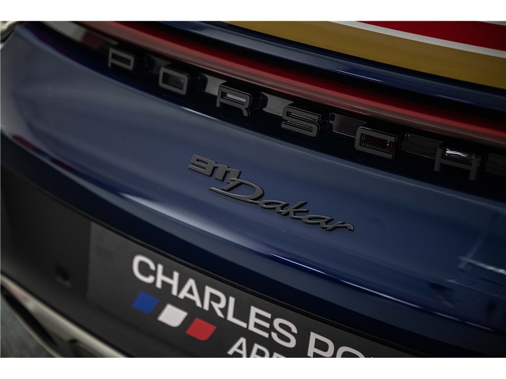 La Porsche 911 Dakar 992 a été conçue pour incarner l’esprit d’aventure tout en restant fidèle à l’ADN de Porsche. Inspirée des courses rallye et de la tradition tout-terrain de la marque, elle allie performance et polyvalence. Lancée en 2022, elle reprend la base de la 992 Carrera S avec des réglages spécifiques, une garde au sol relevée et des pneus capables de passer des routes sinueuses comme des chemins plus exigeants. Chaque détail, du Pack Rallye Design au vitrage léger insonorisé, reflète l’exigence et le soin apportés à ce modèle. Rare et audacieuse, cette 911 Dakar offre une expérience de conduite unique, à la fois sportive et pleine de caractère. Notre exemplaire 2023, avec seulement 3 500 km, sa teinte Bleu Gentiane métallisé et son intérieur noir, permet de profiter pleinement de ce mélange de puissance et de style.
