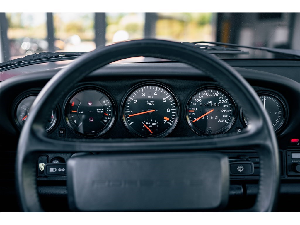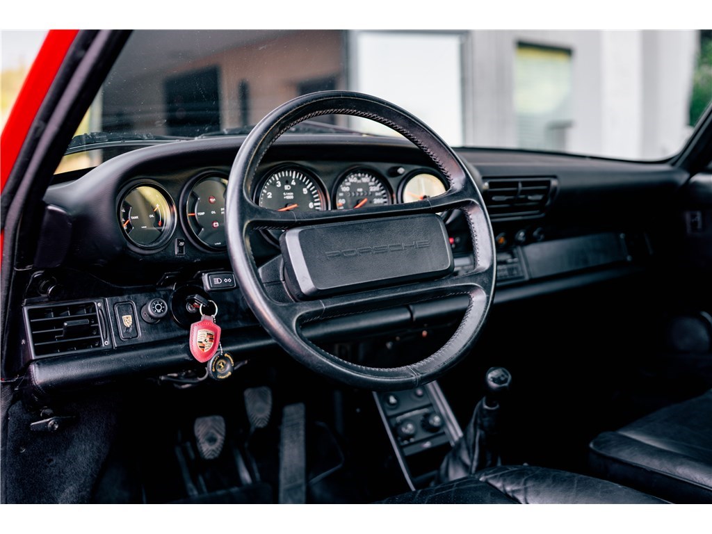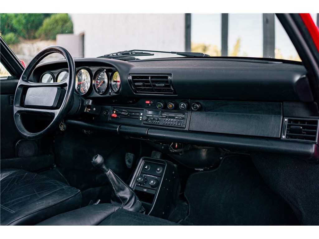 Notre Porsche 930 Turbo de 1987 représente toute une époque : les années 80. Son légendaire flat-six turbo de 330 chevaux associée à sa boîte manuelle 4 rapports, promet des sensations uniques. Avec un peu moins de 56 000 km à son compteur, elle est aujourd’hui dans un état remarquable. Un classique de caractère, alliant authenticité, sportivité et élégance intemporelle, dans une configuration des plus désirables avec ce rouge vif, couplé à cet intérieur en cuir noir.