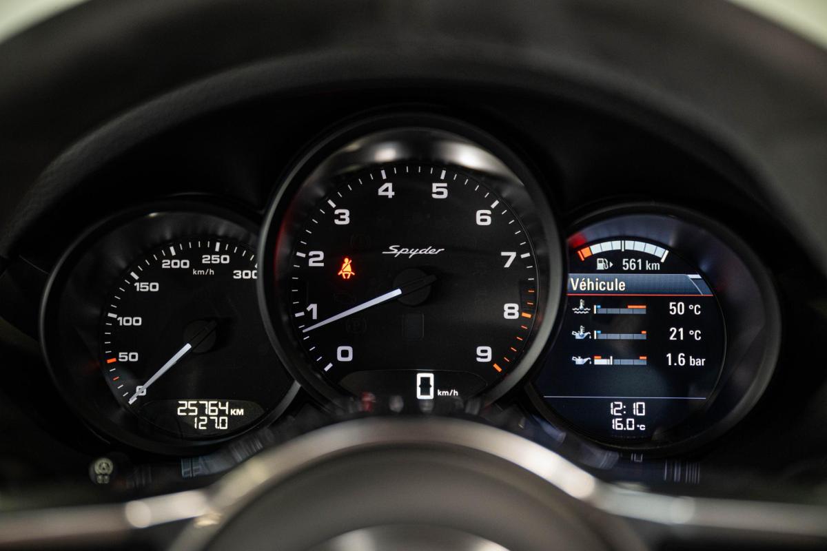 La Porsche Boxster Spyder Type 981 3.8 375 ch est l’une des versions les plus radicales et recherchées de la génération 981. Animée par le flat-six atmosphérique 3.8L de 375 ch, associé exclusivement à une boîte manuelle, elle offre une expérience de conduite pure, centrée sur le plaisir et la précision.