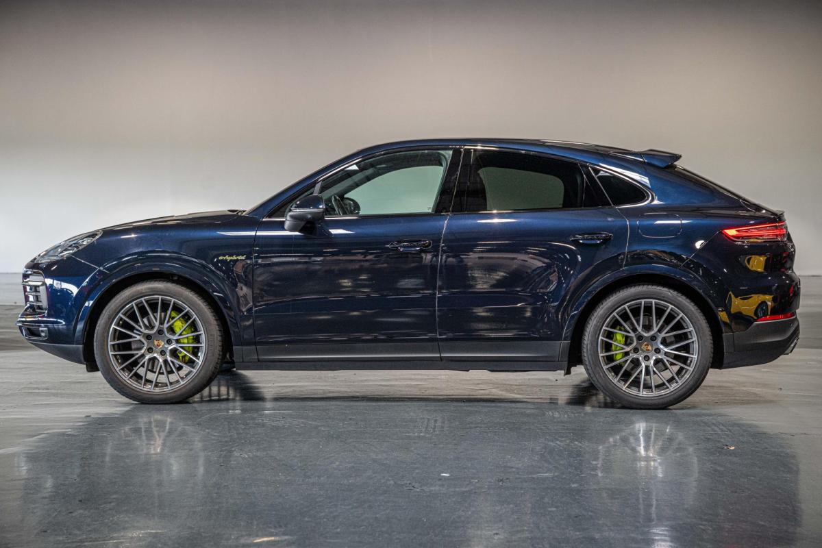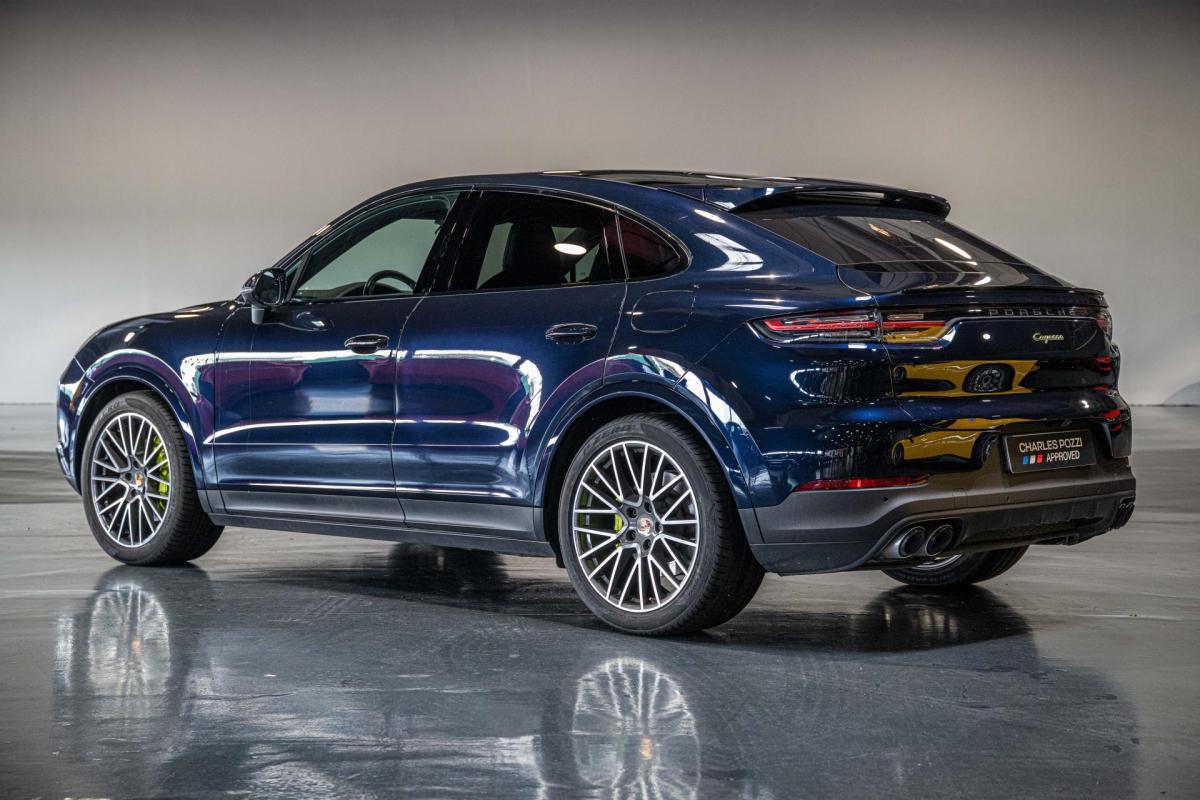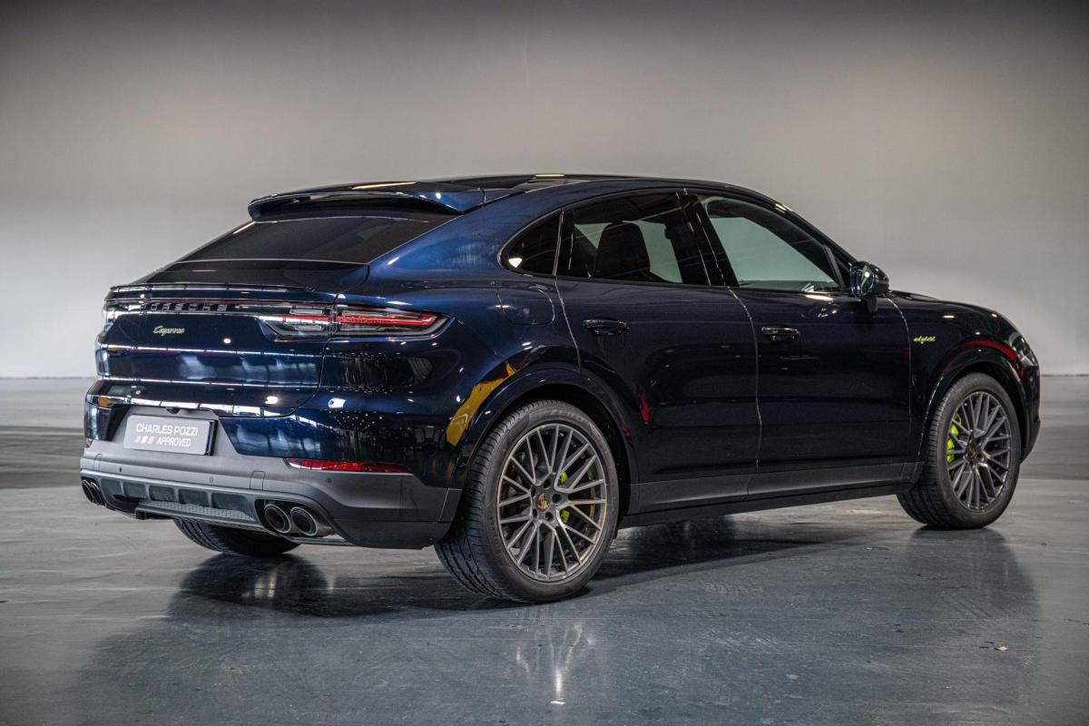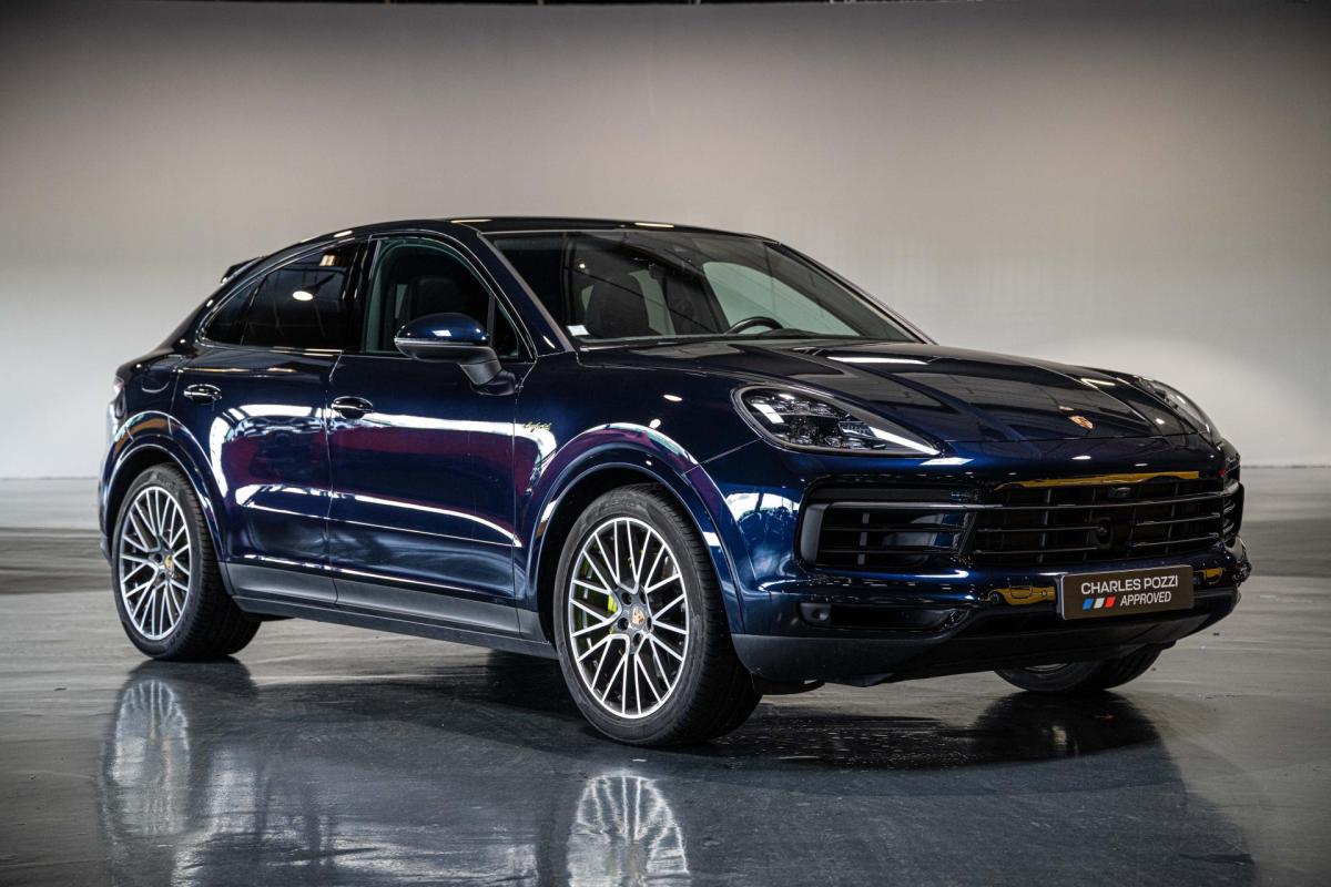 La Porsche Cayenne Coupé 3.0 V6 E-Hybrid 304 ch (2021) associe élégance sportive et technologie hybride rechargeable dans un SUV coupé polyvalent. Cet exemplaire arbore un extérieur bleu avec un intérieur noir, affichant un kilométrage de 47 100 km. La motorisation V6 hybride développe 304 chevaux, permettant un bon équilibre entre performances dynamiques et conduite quotidienne plus efficiente grâce au mode électrique.